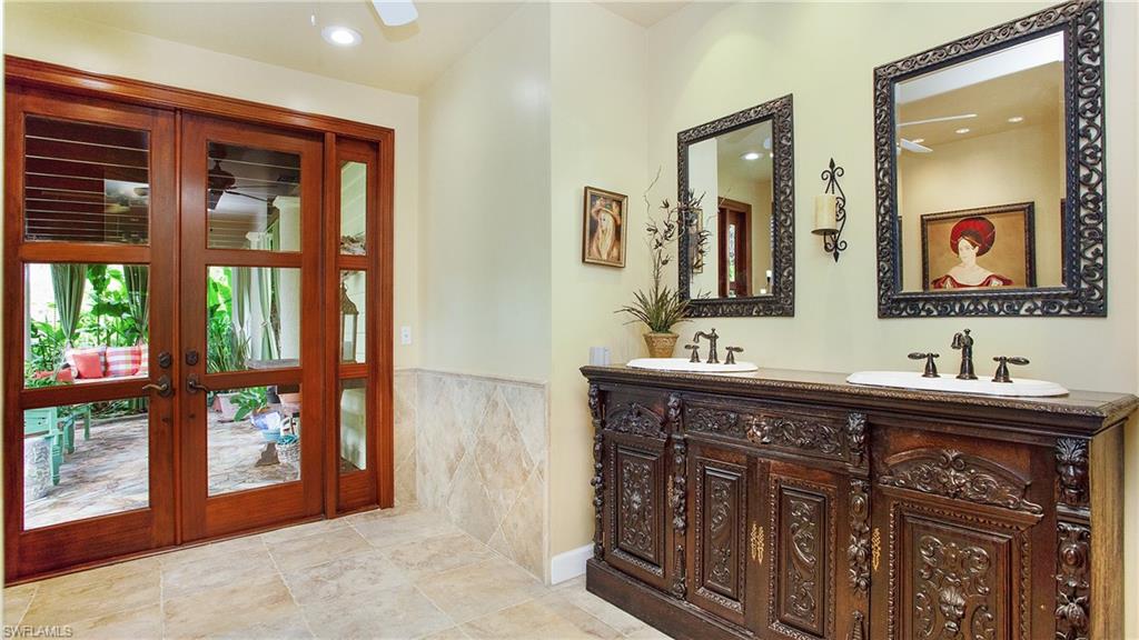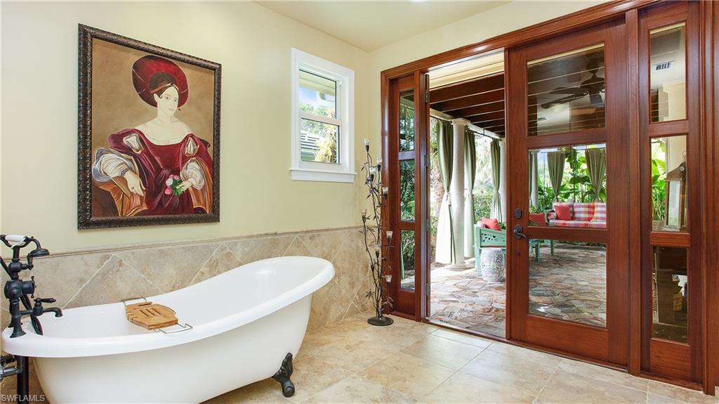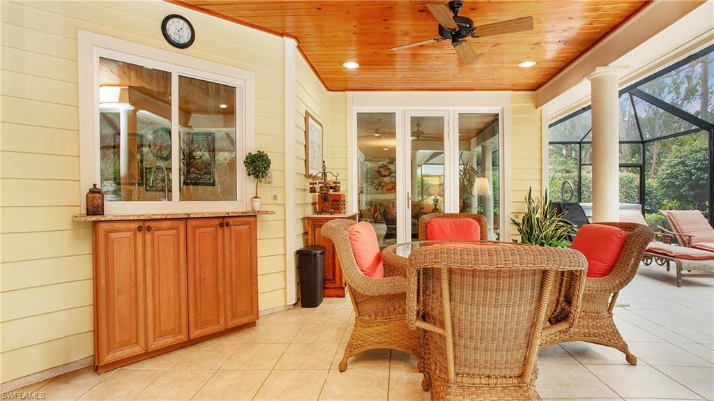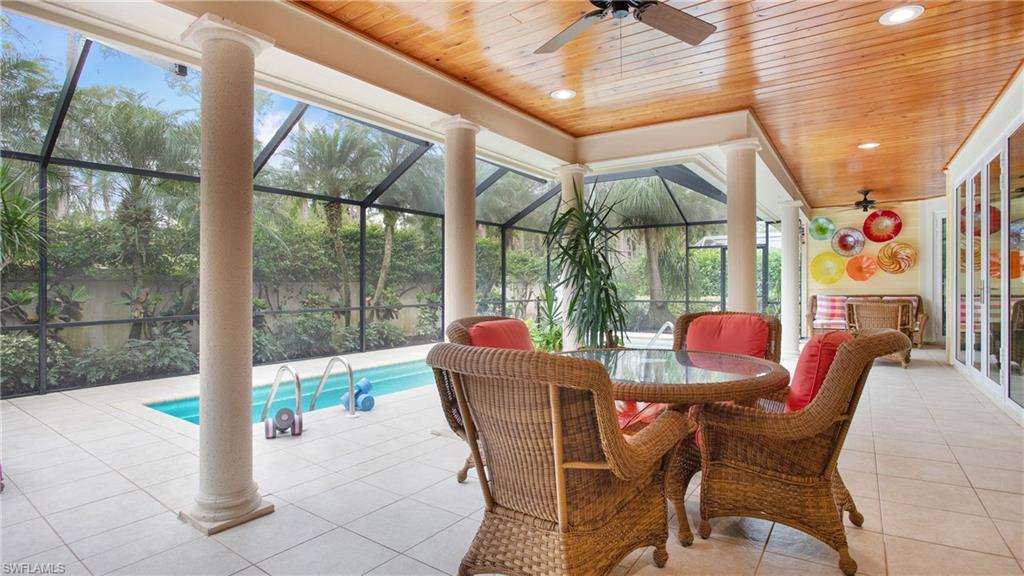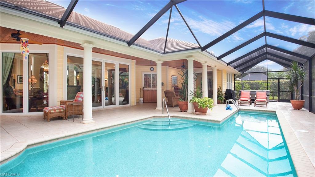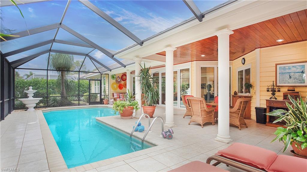 Welcome to 189 Edgemere Way South...an exquisitely fully furnished residence nestled in the heart of Naples, FL within the prestigious confines of Wyndemere CC. This stunning home, lovingly remodeled over the years, offers an unparalleled blend of elegance and comfort. Spanning 3,070 square feet, this four-bedroom, three-bathroom sanctuary is a testament to refined living. The home is graced with high ceilings and an abundance of natural light. The heart of the home is its gourmet kitchen with island, seamlessly flowing into the living areas and patio... perfect for both entertaining and everyday living. The private patio is adorned with yellow pine tongue and groove ceilings, solid concrete columns, tiled floors, inset fountain and outdoor shower. The private pool has a heat pump to keep things warm all year round. Also included is a therapeutic Bullfrog above ground hot tub with all the bells and whistles. The primary suite and bath is luxury personified with clawfoot tub, steam shower and private mahogany French door entrance to the charming outdoor pergola off the primary bath. It is reminiscent of an Italian countryside retreat and includes stone flooring, Roman columns and cypress accented ceilings. This serene space invites relaxation and enjoyment of the Florida sunshine and coastal breezes. The entire home is fully reinforced with security grade hurricane windows/doors and a new roof in 2022. The newly installed rod iron accented front door is a true piece of art shipped down from a custom vendor in Atlanta, GA. The duct work has all recently been replaced along with the tankless hot water heater. Also, the tender love and care put into the landscape design is phenomenal and give the home a stunning curb appeal along with the tasteful cedar shiplap façade. Fully furnished with minor exclusions. Wyndemere Country Club is renowned for its world-class golf facilities and rare Platinum Club of America designation. The club boasts a meticulously maintained 27-hole championship golf course designed by the legendary Arthur Hills. The course offers a challenging yet enjoyable experience for golfers of all skill levels, with lush fairways, strategically placed bunkers, and beautiful water features. Wyndemere's clubhouse, is a hub of social and recreational activity. The clubhouse features elegant dining options, from casual to fine dining, offering a variety of culinary delights prepared by top chefs. Members can enjoy meals with stunning views of the golf course and surrounding landscape. The clubhouse also hosts numerous social events, gatherings, and themed parties throughout the year, fostering a strong sense of community among residents. Wyndemere Country Club is more than just a place to live; it's a community where residents enjoy a luxurious lifestyle in a friendly and welcoming environment. The club's commitment to excellence in service and amenities ensures that members have a truly exceptional living experience.