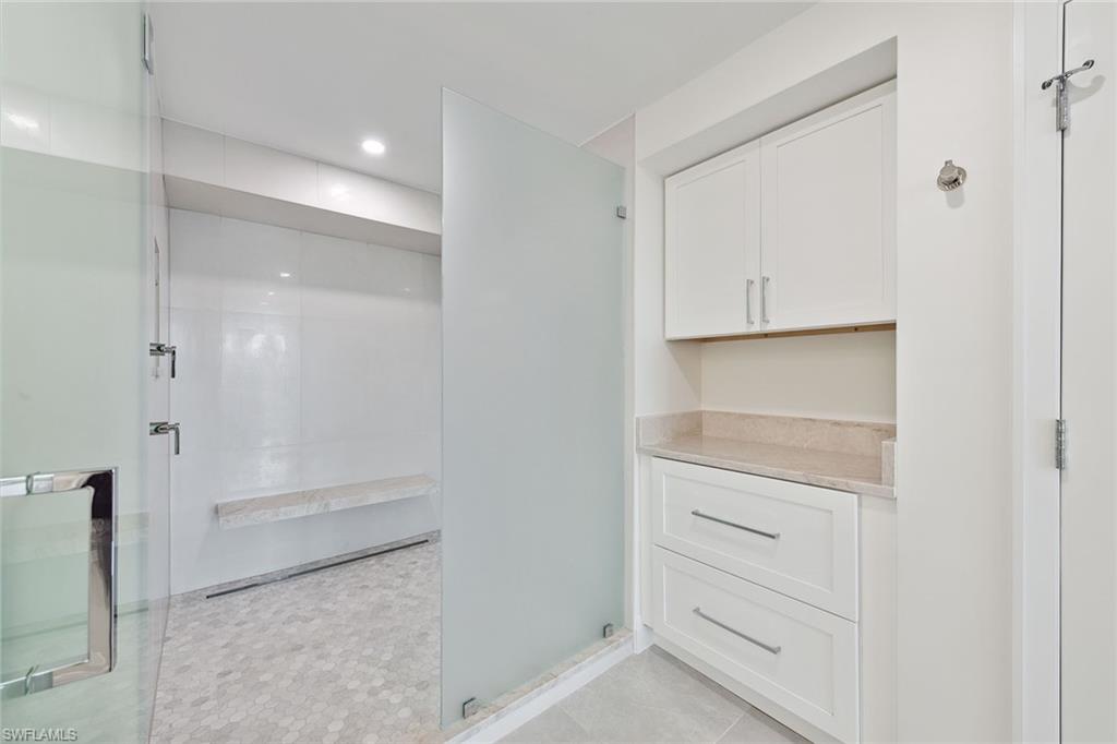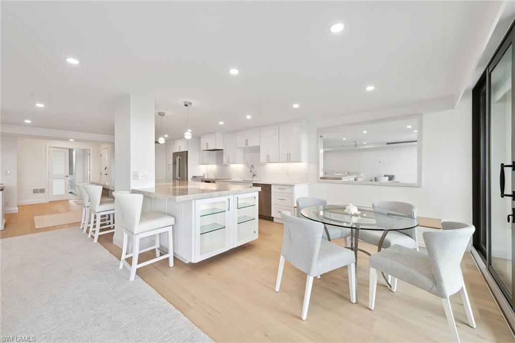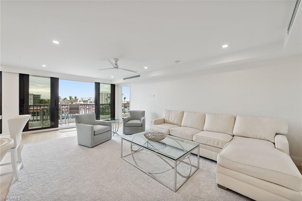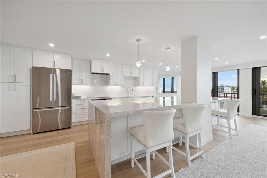 Breathtaking southwestern views of the Gulf and Doctors Pass await you at this fully remodeled fifth-floor home in the west building of Admiralty Point. The redesigned floor plan is highlighted by an open kitchen, complete with stainless steel Bosch appliances, quartz countertops and backsplash, and an oversized Taj Mahal quartzite island complete with seating and ample storage space. Additional features include recessed lighting, all-new ductwork, HVAC system, a tankless instant water heater, a smart home control panel, impact sliders and windows, and more. Enjoy direct beach access and direct gulf access with on-site boat docks and a kayak launch. Added security is provided with under-building parking, a secured lobby, 24-hour patrolled grounds and a gate guard. Admiralty Point has it all on 10 acres of prime beach and bayfront property with two social rooms, fitness facility, Har-Tru tennis courts, shuffleboard, gas grills, a vehicle wash area and even a kiddie pool. Additionally, residents can take advantage of sunrise and sunset pools, unique to Admiralty Point. After a day on the water, indulge in world-renowned shopping and dining at Venetian Village, 5th Ave South or 3rd Street South, all just a short drive away.
