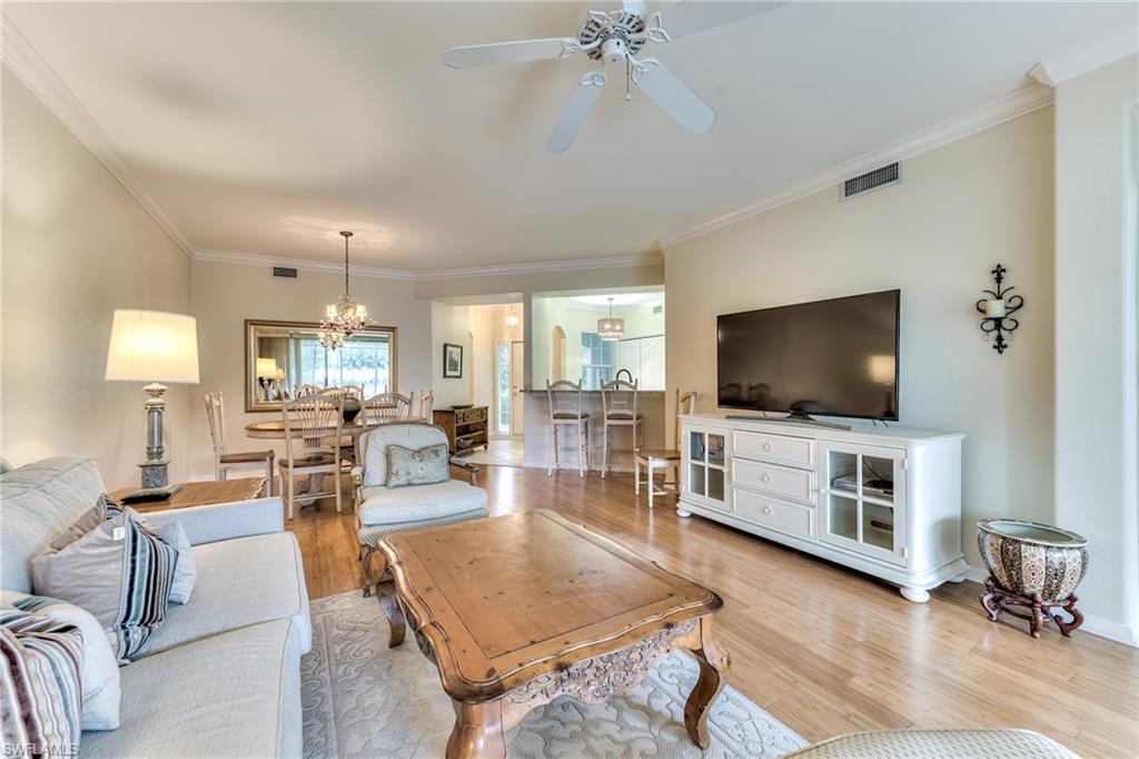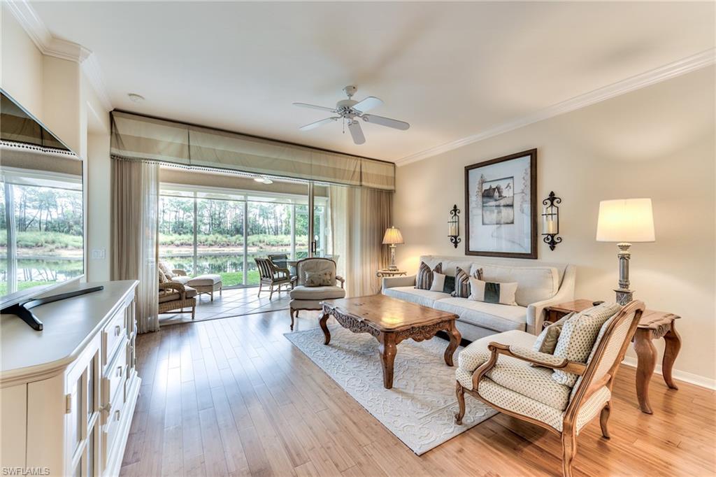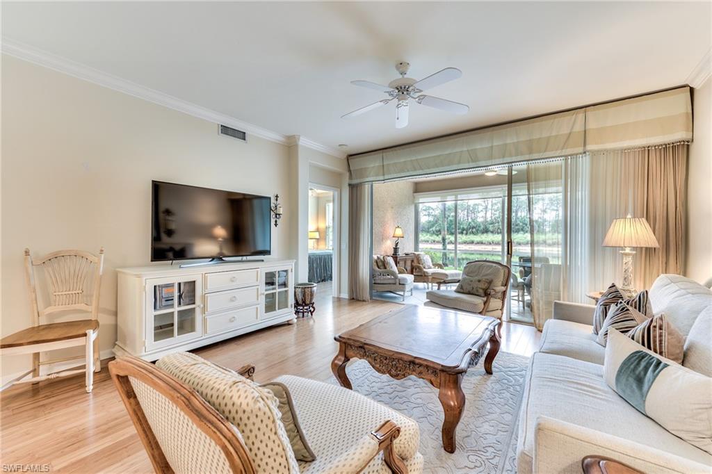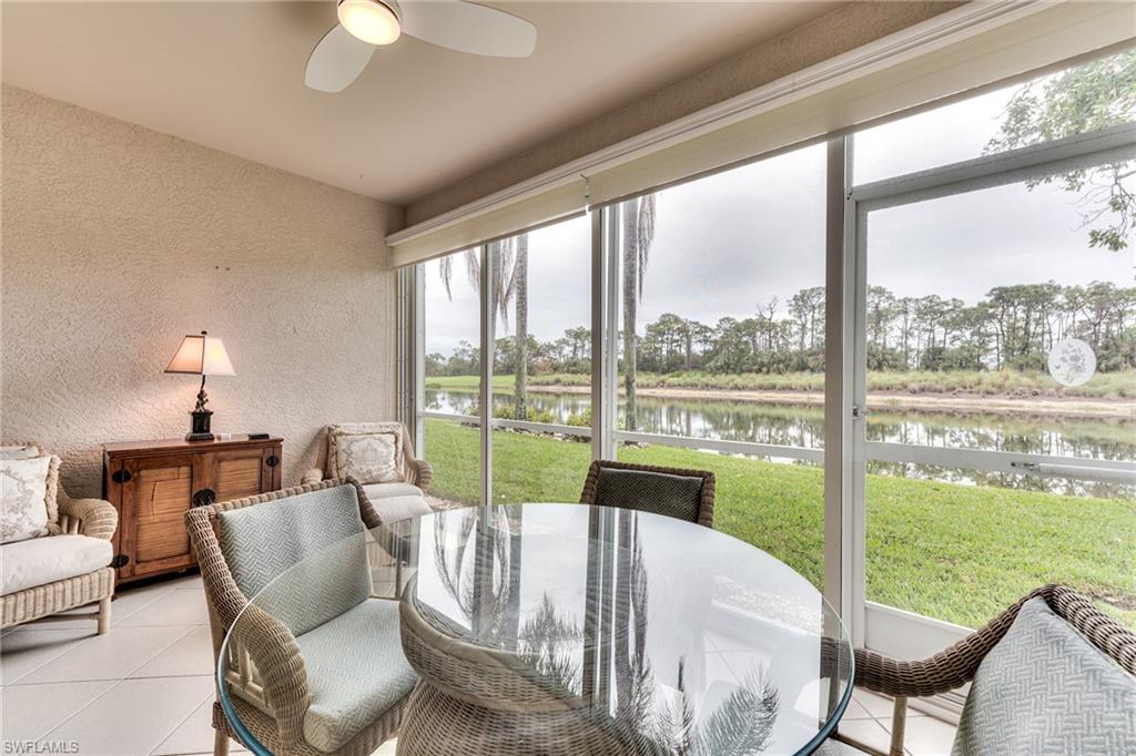 PRICE REDUCTION!!! THE ENCLOSED LANAI PROVIDES MUCH MORE SPACE TO ENJOY YEAR AROUND, RAIN OR SHINE!!! FIRST FLOOR 2 BEDROOM, 2 BATH TURNKEY FURNISHED CONDO WITH PANORAMIC WATER & GOLF COURSE VIEWS! BEAUTIFU WATER VIEW, PRIVATE & QUIET LOCATION, NO CART PATH, AND JUST 1 BUILDING FROM THE COMMUNITY POOL & SPA. ENJOY THE BEAUTIFUL SUNRISE OVER THE LAKE FROM YOUR BEDROOM, & LIVING ROOM, AND WATCH THE BEAUTIFULWATER BIRDS AND TURTLES FROM YOUR TILED & ENCLOSED LANAI. UPGRADES INCLUDE NEWER ROOF & HURRICANE IMPACT WINDOWS, GORGEOUS BAMBOO FLOORING, CROWN MOLDING THROUGHOUT THE CONDO, GRANITE KITCHEN COUNTERTOPS. KING BED IN MASTER BEDROOM, TWIN BEDS IN GUEST ROOM. THIS WELL MAINTAINED AND TURNKEY FURNISHED HOME IS READY FOR YOU TO MOVE IN. SPRING RUN IS A BUNDLED GOLF COMMUNITY, 2 MEMBERSIPS INCLUDED IN THE PURCHASE OF PROPERTY. NEWLY EXPANDED & REMODELED CLUBHOUSE OFFERS FINE DINING, INDOOR & OUTDOOR DINING & BARS, RESORT STYLE POOL & SPA, LIGHTED TENNIS & BOCCE COURTS, PRO SHOP, FITNESS ROOM & LIBRARY. MEMBERSHIPS ARE AVAILABLE TO OUR PRIVATE BEACH LUB, FITNESS & SPA CENTER & THE ROOKERY RESTAURANT. SPRING RUN IS AN ACTIVE, FINANCIALLY STABLE COMMUNITY OFFERING A WIDE VARIETY OF AMENITIES & SOCIAL ACTIVITIES. JUST 20 MINUTES TO THE SWFL INTERNATIONAL AIRPORT & BEACHES! A SHORT WALK OR BIKE RIDE TO COCONUT POINTE MALL FOR SHOPPING, ENTERTAINMENT & RESTAURANTS. THE MINUTE YOU WALK IN THIS CONDO YOU WILL FEEL "AT HOME" & FALL IN LOVE WITH THE AMAZING WATER & GOLF COURSE VIEWS!