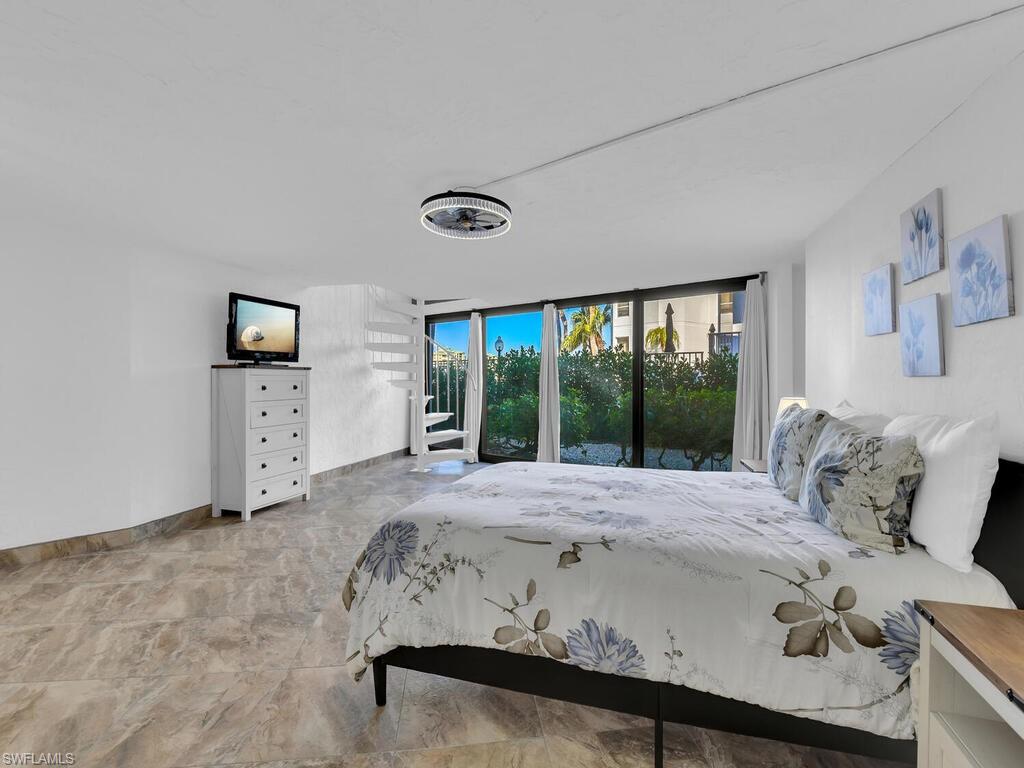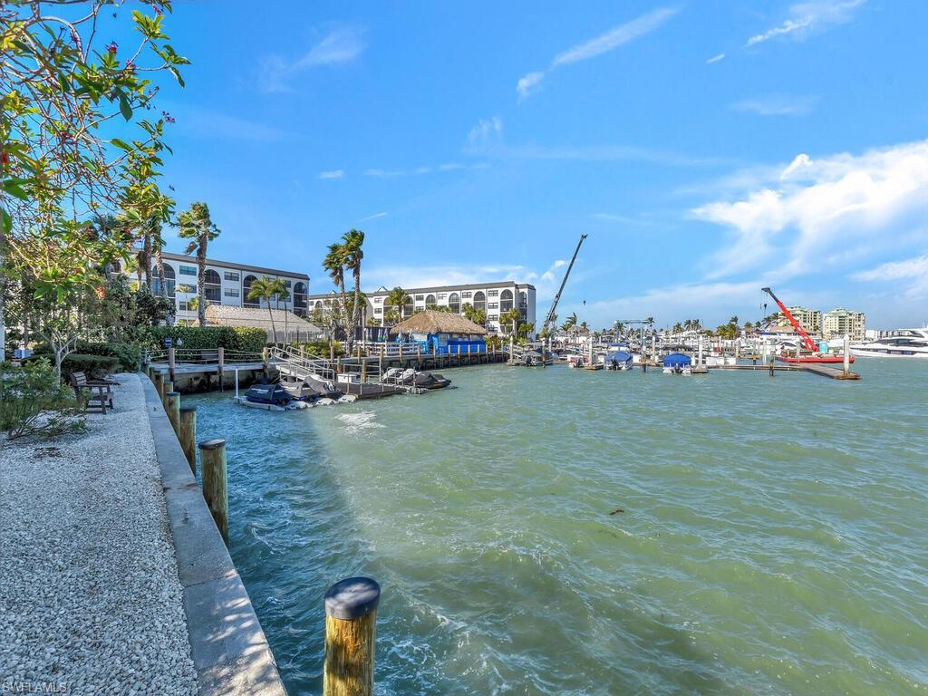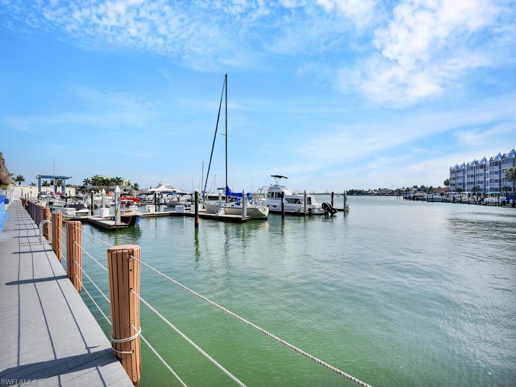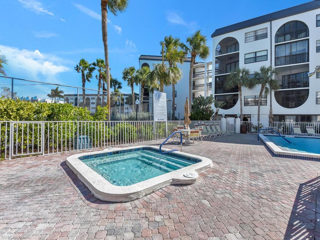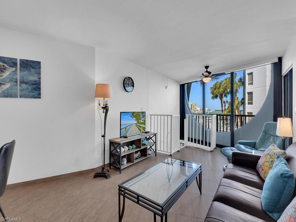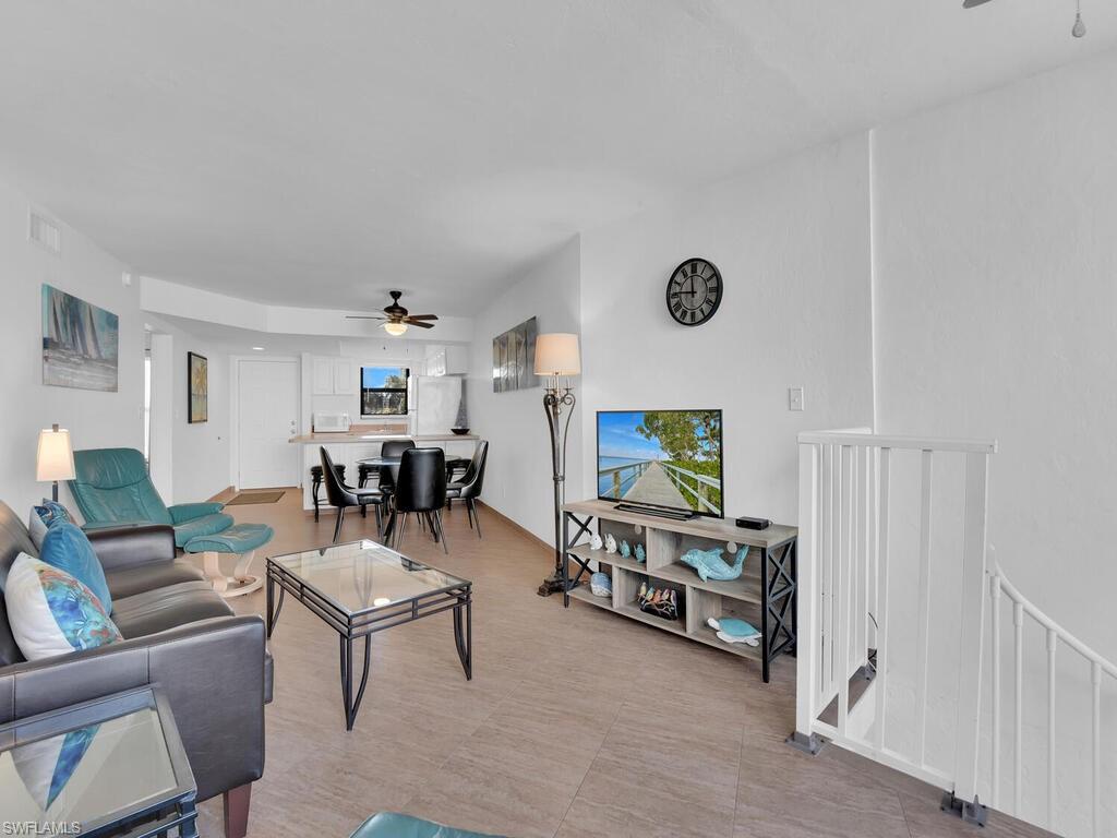 Motivated seller! Impact windows and doors already installed (required to be done by 6/2026). Rarely available all tiled cabana unit with partial views of both the bay and pool. The main entrance on the second floor leads you into a 2 bedroom, 1 bath condo. There is also a separate entrance to the third bedroom and an additional full bath from your private under-building parking. A charming spiral staircase connects the two floors, enhancing the flow of this remarkable space. Strong Rental Potential with weekly rentals allowed. Take advantage of the two pools, jacuzzi, two tennis courts, kayak storage, and direct access docks available for lease. Tiki Bar/restaurant on premises. Low Condo Fees include electric, water, internet, and TV. Don't miss your chance to own this exceptional property.