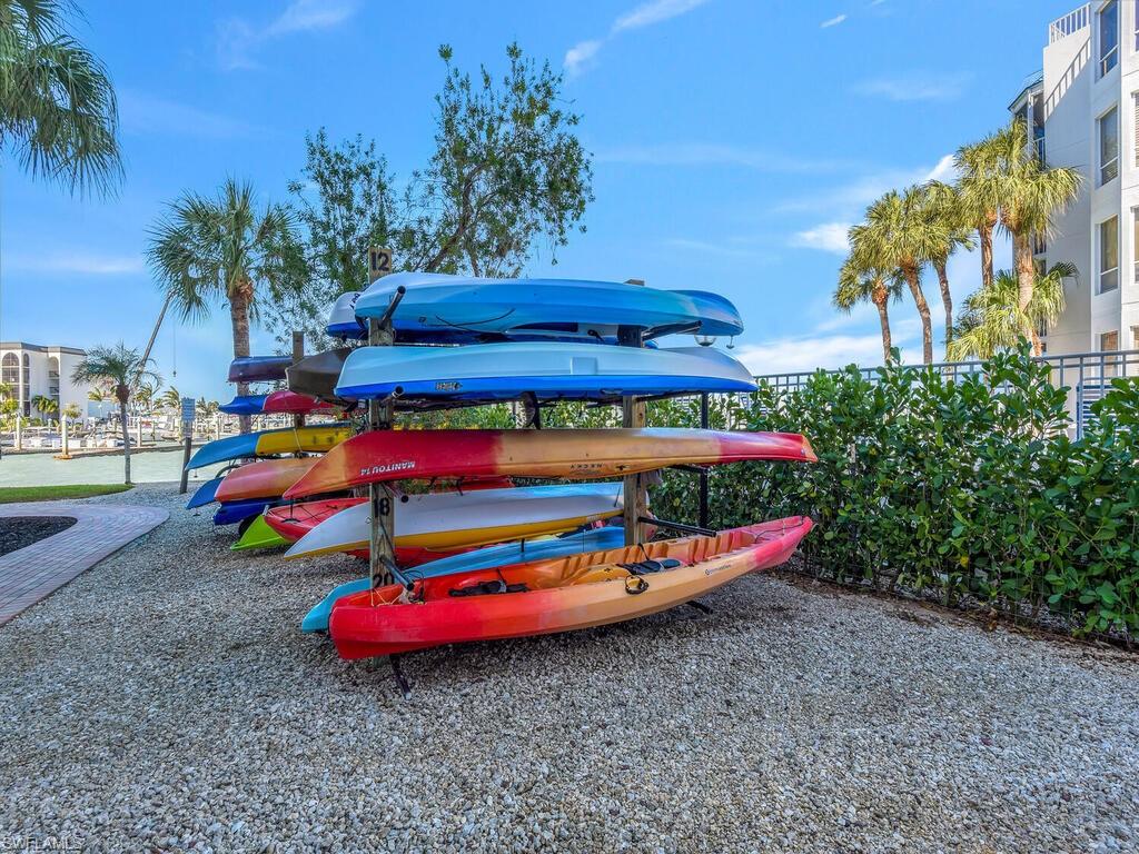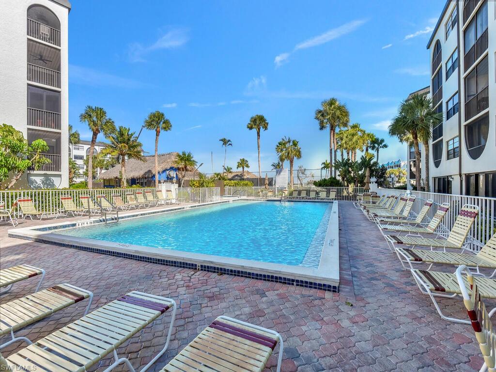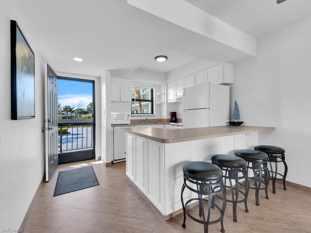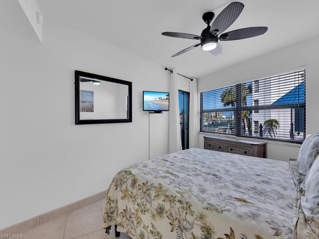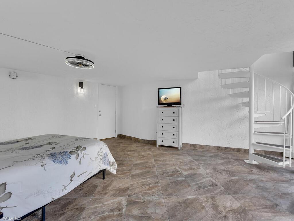 Motivated seller! Impact windows and doors already installed (required to be done by 6/2026). Rarely available all tiled cabana unit with partial views of both the bay and pool. The main entrance on the second floor leads you into a 2 bedroom, 1 bath condo. There is also a separate entrance to the third bedroom and an additional full bath from your private under-building parking. A charming spiral staircase connects the two floors, enhancing the flow of this remarkable space. Strong Rental Potential with weekly rentals allowed. Take advantage of the two pools, jacuzzi, two tennis courts, kayak storage, and direct access docks available for lease. Tiki Bar/restaurant on premises. Low Condo Fees include electric, water, internet, and TV. Don't miss your chance to own this exceptional property.