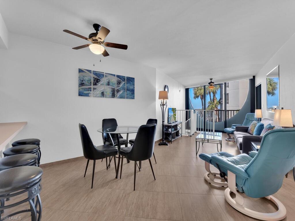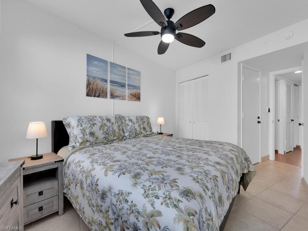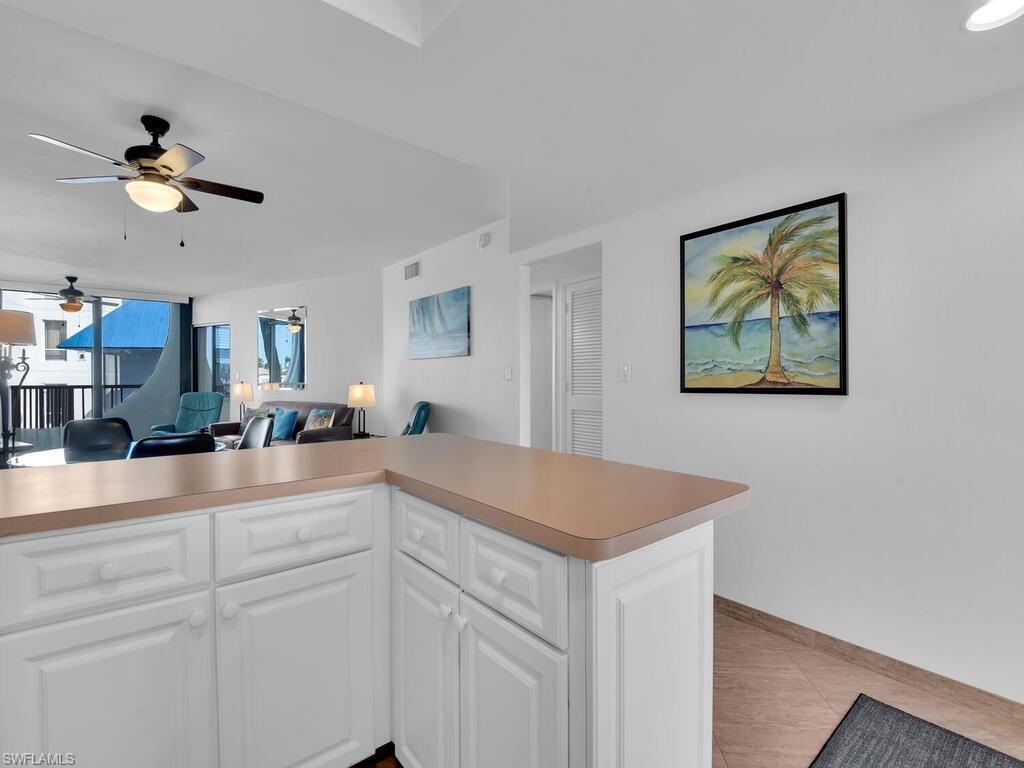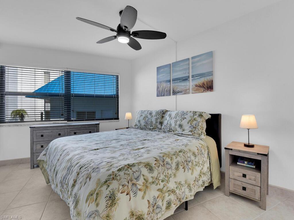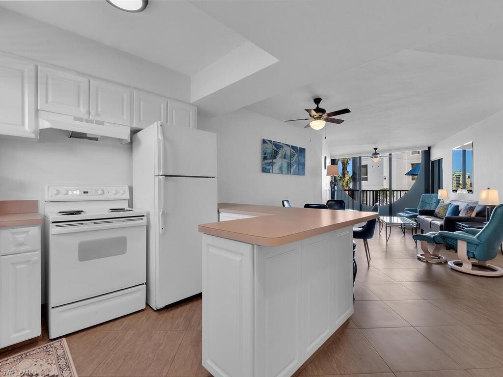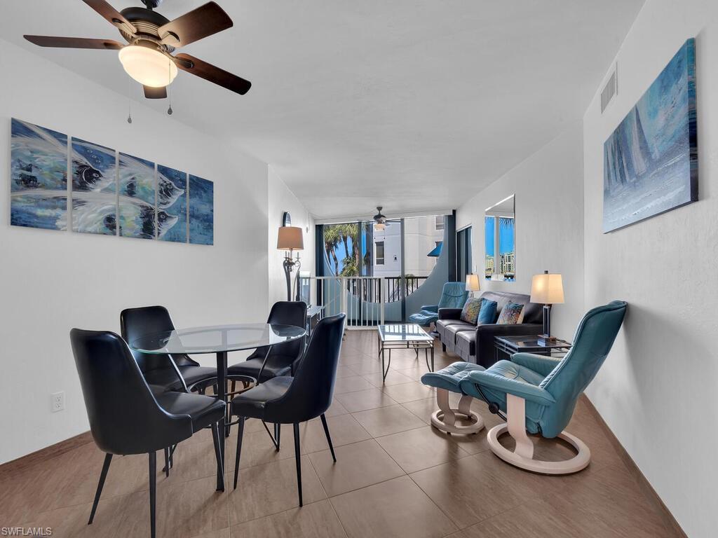 Motivated seller! Impact windows and doors already installed (required to be done by 6/2026). Rarely available all tiled cabana unit with partial views of both the bay and pool. The main entrance on the second floor leads you into a 2 bedroom, 1 bath condo. There is also a separate entrance to the third bedroom and an additional full bath from your private under-building parking. A charming spiral staircase connects the two floors, enhancing the flow of this remarkable space. Strong Rental Potential with weekly rentals allowed. Take advantage of the two pools, jacuzzi, two tennis courts, kayak storage, and direct access docks available for lease. Tiki Bar/restaurant on premises. Low Condo Fees include electric, water, internet, and TV. Don't miss your chance to own this exceptional property.