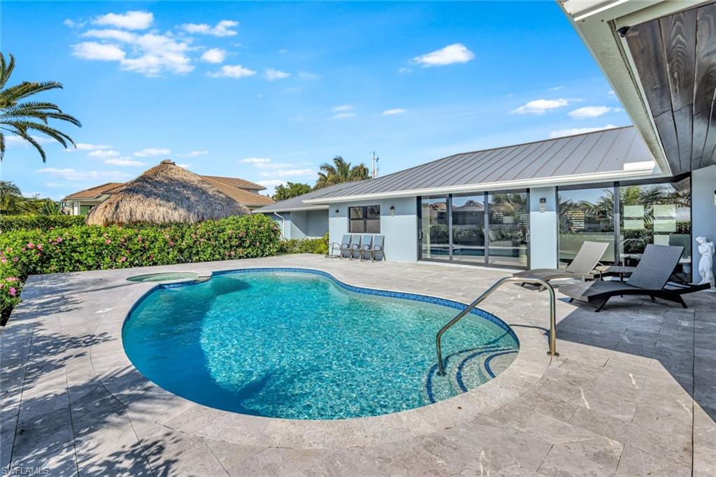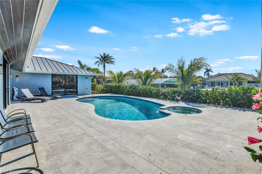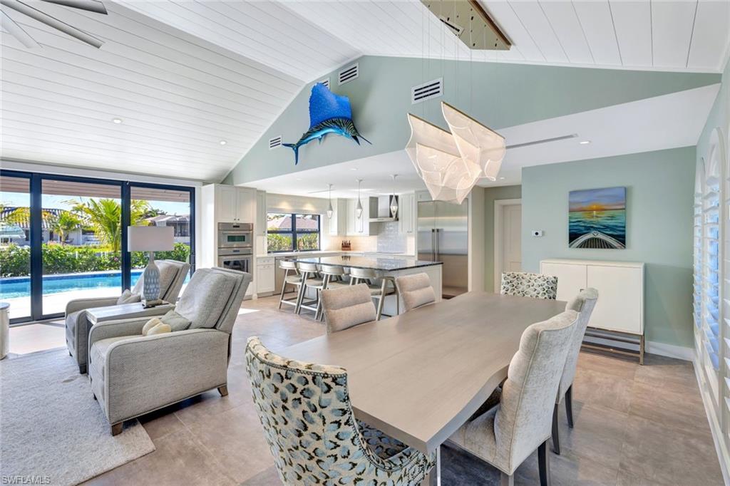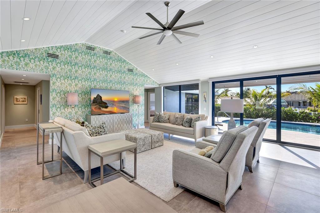 CAPTIVATING COASTAL HOME near Olde Marco! SELLERS ARE MOVING AND MOTIVATED TO SELL! Discover this original Deltona Home and property that has been completely reconstructed and transformed in early 2023. This custom creation houses 4 bedrooms and 3 baths, a well-executed three-car air-conditioned garage and an unusual 120 foot lot. This house speaks to luxury living in Marco Island’s favorite neighborhood. Italian porcelain tile throughout, designer impact windows and doors, custom cabinetry in kitchen and bathrooms. Marble tile, high-end fixtures and refined finishes round out this beautiful home. All systems to include electrical, plumbing, and HVAC are brand new and reflect the latest and best options in the industry. From the brand new pool and spa, to the newly constructed tiki hut, the landscaping was designed to create a private oasis in the midst of a central location to shopping, restaurants, and the Gulf. This home boasts a 1500 square foot low-profile dock and a 7 minute boat ride straight out to the Marco River and Gulf of Mexico. The furnishings, wallpaper, and light fixtures contribute to an elevated island feel that only a discerning buyer will appreciate. Inspired living from Driftwood Build makes this home truly one of a kind. Schedule your showing today: This house is an experience!