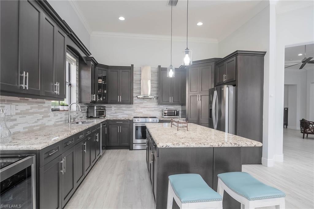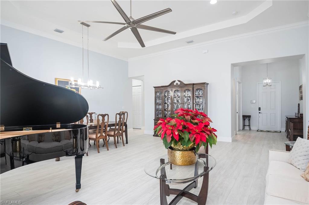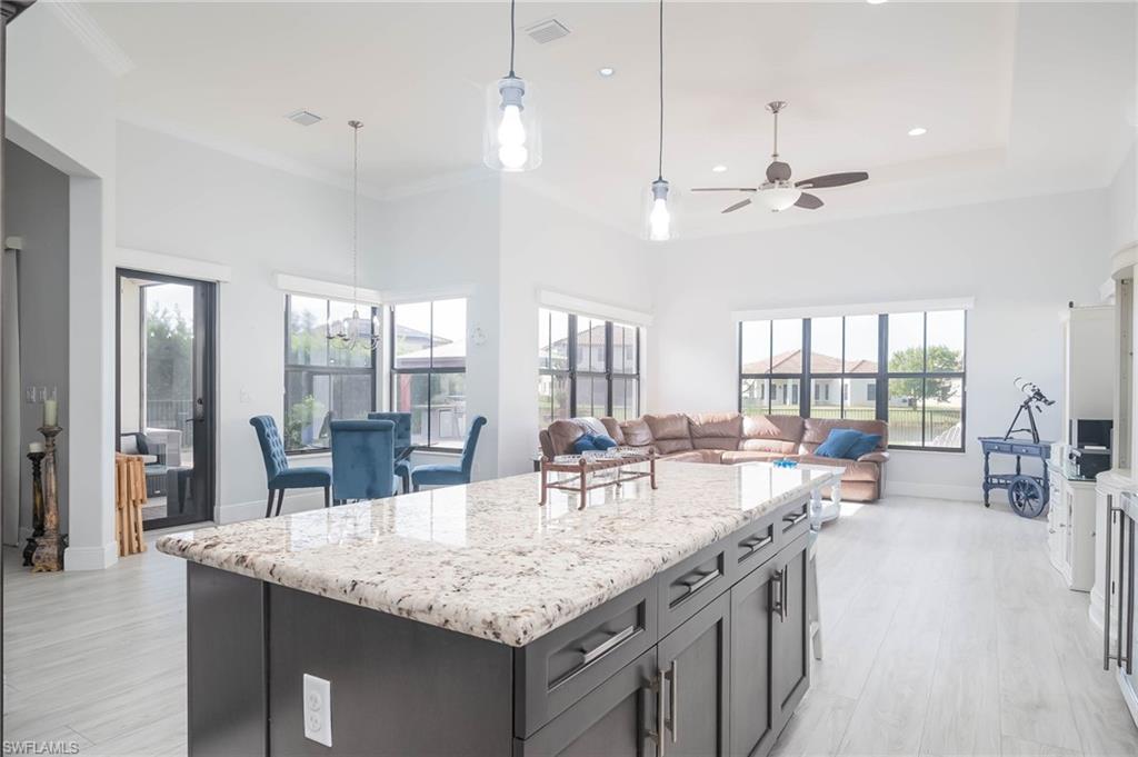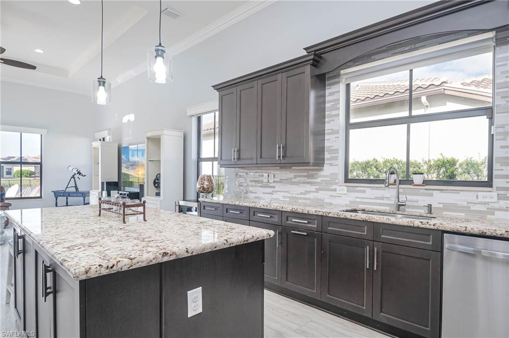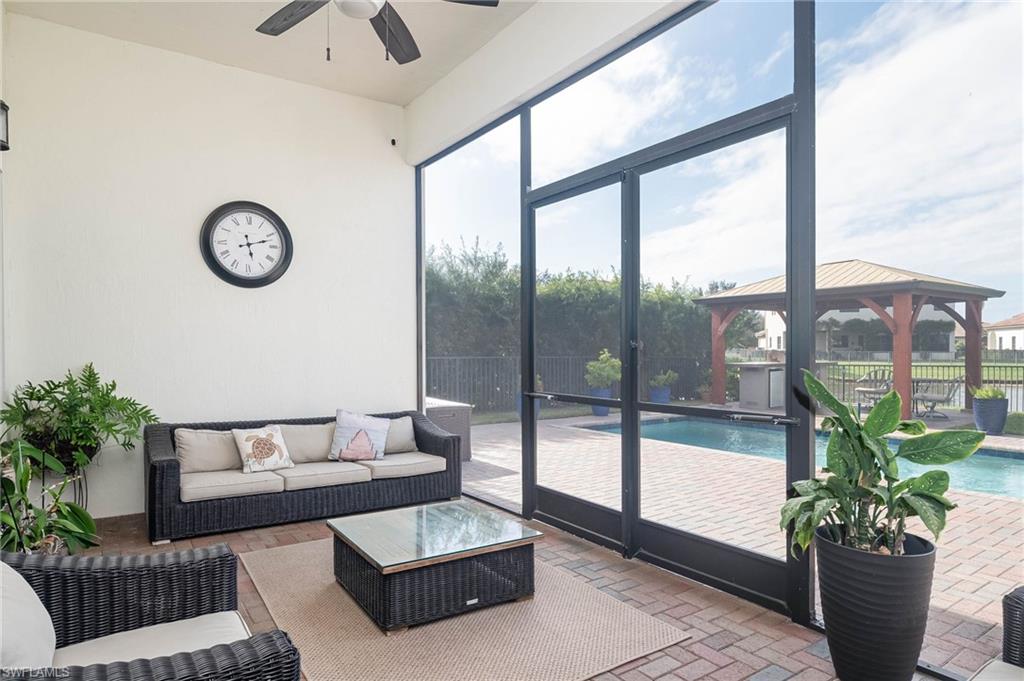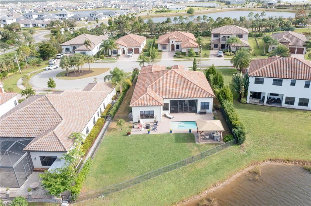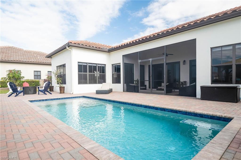 Discover the perfect balance of vibrant living and serene comfort at 5542 Ferrari Ave in the dynamic community of Ave Maria, FL. Nestled in a peaceful CUL-DE-SAC, this elegant CHESBRO model home spans 3,086 sqft on a ENORMOUS 0.3-ACRE LOT, featuring 3 bedrooms, a den, and 2.5 bathrooms in a thoughtfully designed SINGLE-STORY layout. The FULLY FENCED yard, LANDSCAPED FOR PRIVACY with stunning LAKE VIEWS, forms a tranquil retreat, while the location in a bustling neighborhood ensures a lively living experience. Enhanced with IMPACT WINDOWS throughout, the home offers both safety and energy efficiency. The master suite is a sanctuary, featuring a COZY SITTING AREA, TWO EXPANSIVE MASTER CLOSETS, a DUAL MASTER BATHROOM, each with its own sink and toilet. The bright interior, illuminated by natural light entering through the NUMEROUS AND LARGE WINDOWS, showcases high 12-FOOT CEILINGS, framed by CROWN MOLDING, and 8" BASEBOARDS. The layout includes separate living and family rooms, both spacious and perfect for hosting guests or enjoying family activities. Step outside to the screened lanai, leading to a SPECTACULAR OUTDOOR AREA with a HEATED SALTWATER POOL and a stylish CABANA equipped with an OUTDOOR KITCHEN—ideal for social gatherings or peaceful evenings. The 3-CAR GARAGE with a versatile 2T SPLIT adds practicality and space for hobbies or storage. Residents enjoy exclusive access to the Maple Ridge clubhouse, a vibrant hub of community activity with extensive amenities. Ave Maria is renowned for its blend of lifestyle amenities, including top-rated educational institutions, parks, and a wide array of recreational facilities, making it an ideal place for everyone seeking a vibrant community atmosphere. Living at 5542 Ferrari Ave offers the energy of community life and the peace of a private oasis, perfectly suited for those who appreciate a well-rounded living experience. "Ave Maria: where community meets paradise."