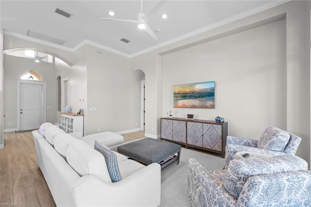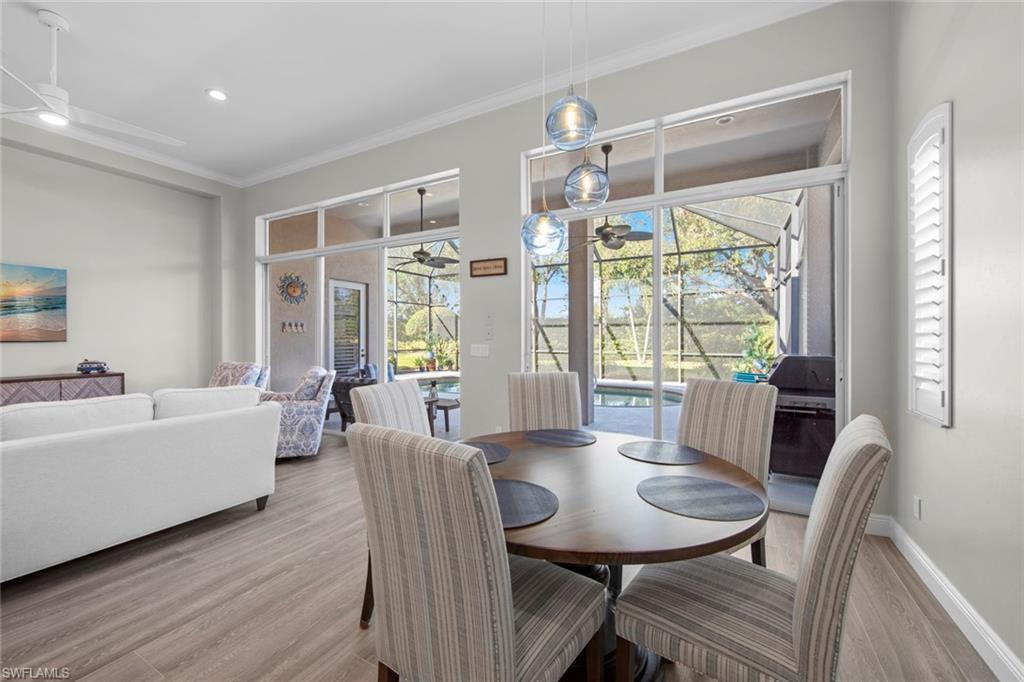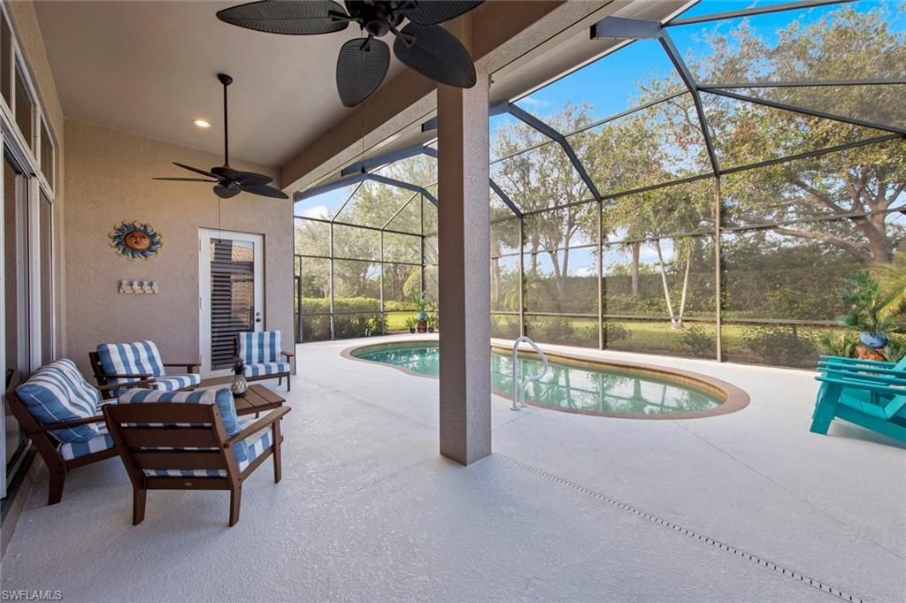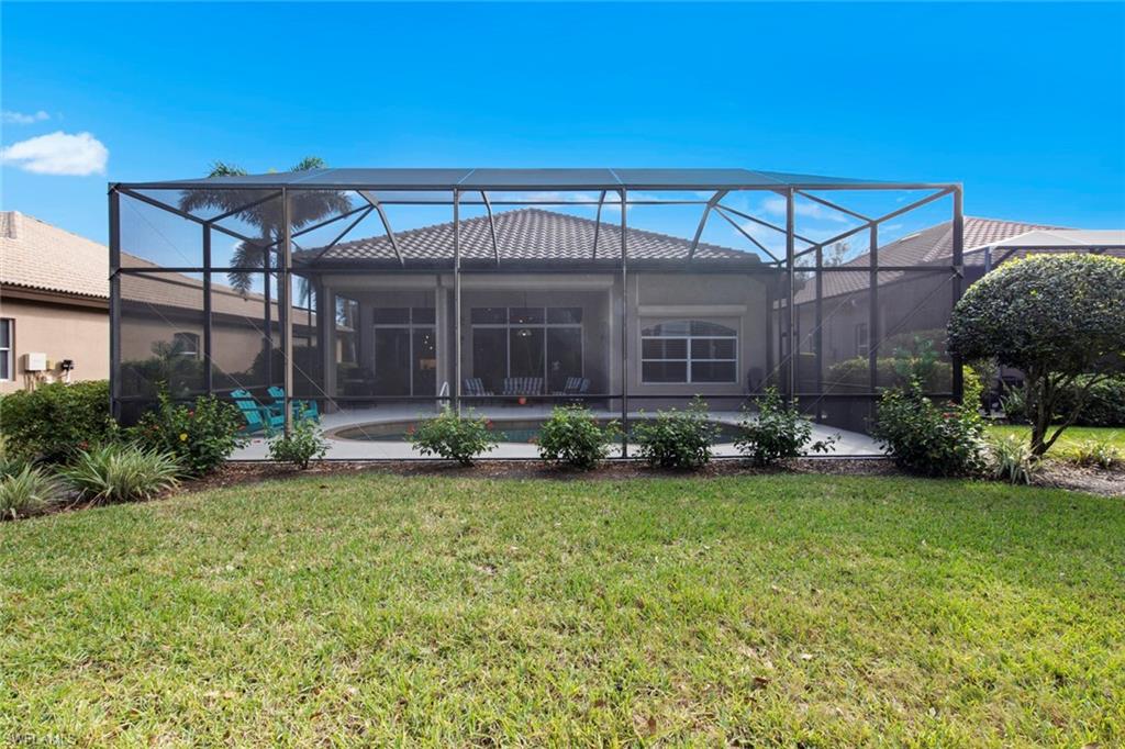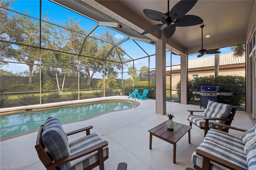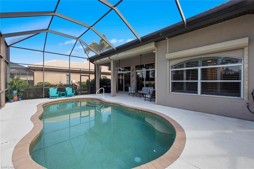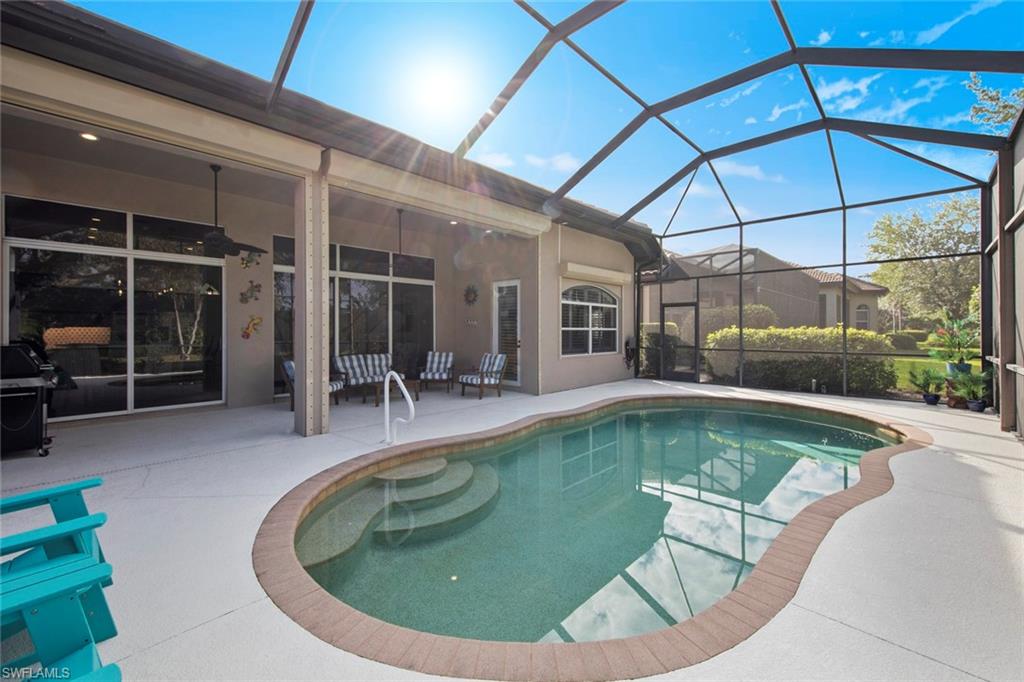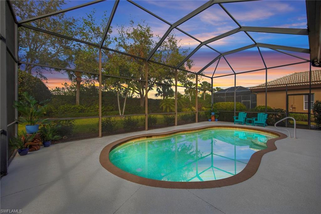 Discover effortless Florida living at 12575 Grandezza Circle—an impeccably remodeled pool home in Grandezza Country Club. With a BRAND NEW ROOF and a full interior remodel completed in 2022, this home is truly move-in ready. From the kitchen and bathrooms to flooring and laundry—every detail has been thoughtfully updated, allowing you to skip the projects and start enjoying the Florida lifestyle from day one. BONUS: Seller will cover 2025 HOA dues for the new owner! Offering 3 bedrooms and 2 bathrooms, the flexible layout is ideal for full-time residents or seasonal snowbirds. The third bedroom, with French doors off the foyer, doubles perfectly as a den or home office. Soaring volume ceilings, an open-concept design, and wood-look tile flooring throughout create a bright, modern, low-maintenance environment. The chef’s kitchen is the heart of the home, featuring Quartz countertops, custom cabinetry, new appliances, and an INDUCTION cooktop for precise, energy-efficient cooking—perfect for entertaining or quiet evenings at home. The spa-like master bathroom offers a soaking tub and step-in shower, providing a relaxing retreat at the end of the day. Step outside to your private backyard oasis, complete with a sparkling pool, lush landscaping, and ELECTRIC ROLL DOWN STORM SHUTTERS across the back of the home—providing peace of mind and effortless protection when you're away. Grandezza offers resort-style amenities including a championship golf course, tennis, fitness center, clubhouse dining, and a poolside cabana. With low-maintenance living and landscaping included in the HOA, this home is perfect for those seeking a lock-and-leave winter escape or an easy, year-round lifestyle. Centrally located between Naples and Fort Myers, you’re just minutes from RSW Airport, Coconut Point, FGCU, and the white-sand beaches of the Gulf Coast. Don’t miss your chance to own a stylish, hassle-free home in one of Estero’s most sought-after communities—schedule your private showing today!
