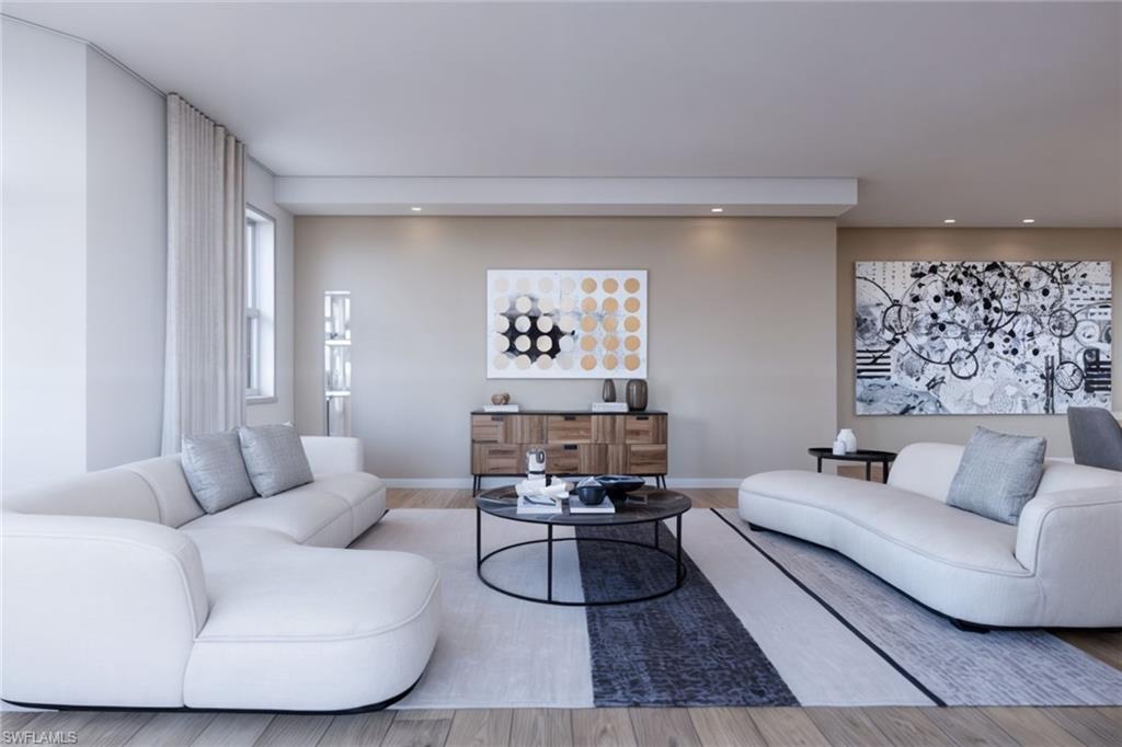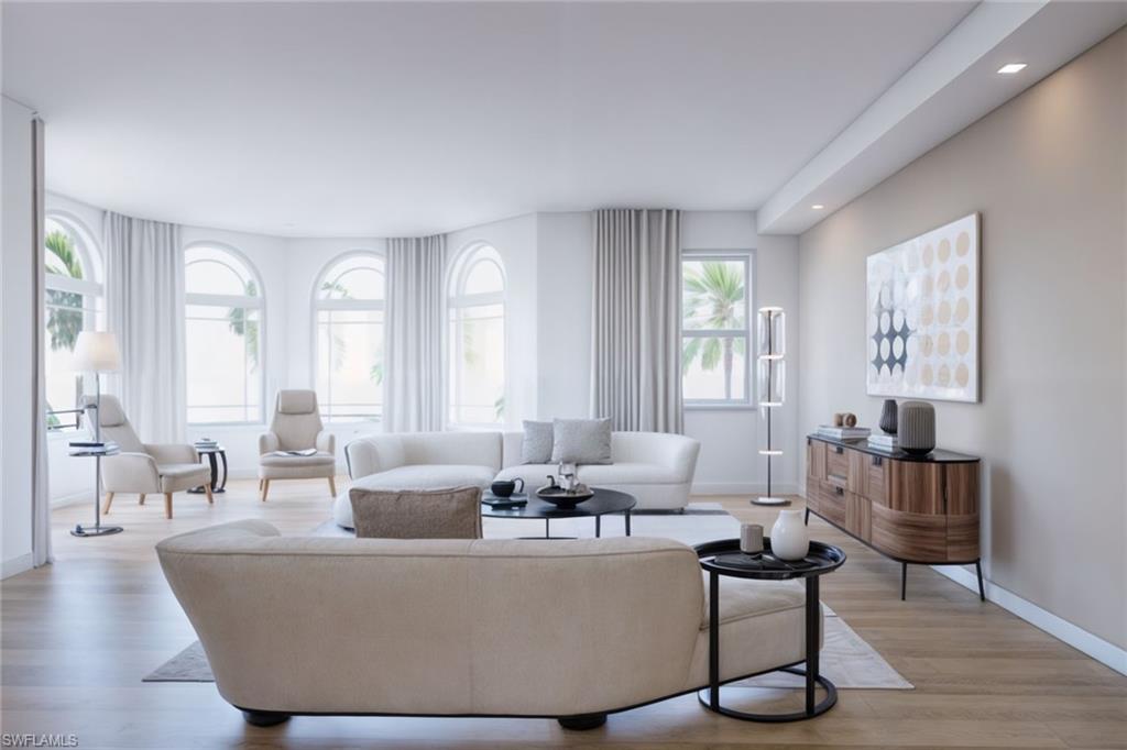 Pre-construction condominiums in Palazzo at Bayfront, where luxury living meets the vibrant charm of Naples. This exclusive community boasts an exquisite fusion of sophistication and convenience, setting a new standard for coastal elegance with only 35 opportunities. Palazzo at Bayfront offers meticulously crafted residences adorned with premium finishes and upscale amenities. From sleek quartz countertops, Sub-Zero, and Miele appliances to designer fixtures and nine-foot-plus ceilings, every detail is thoughtfully curated. Residence 7304 features three spacious bedrooms and three baths, totaling 2,445 square feet of elegant indoor and outdoor space ideal for living and entertaining. The iconic Bayfront district awaits, just steps from your door, where you can enjoy high-end shopping like B&B Italia, waterfront dining, and the newly constructed Gulfshore Playhouse. Embrace the bustling streets of 5th Avenue S., renowned for upscale boutiques and gourmet restaurants. Pristine beaches are nearby for a day in the sun or a peaceful sunset. Palazzo presents an unparalleled opportunity to embrace the quintessential Naples lifestyle, where luxury, convenience and coastal charm seamlessly converge.