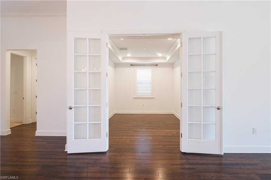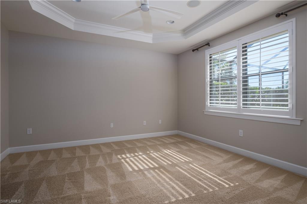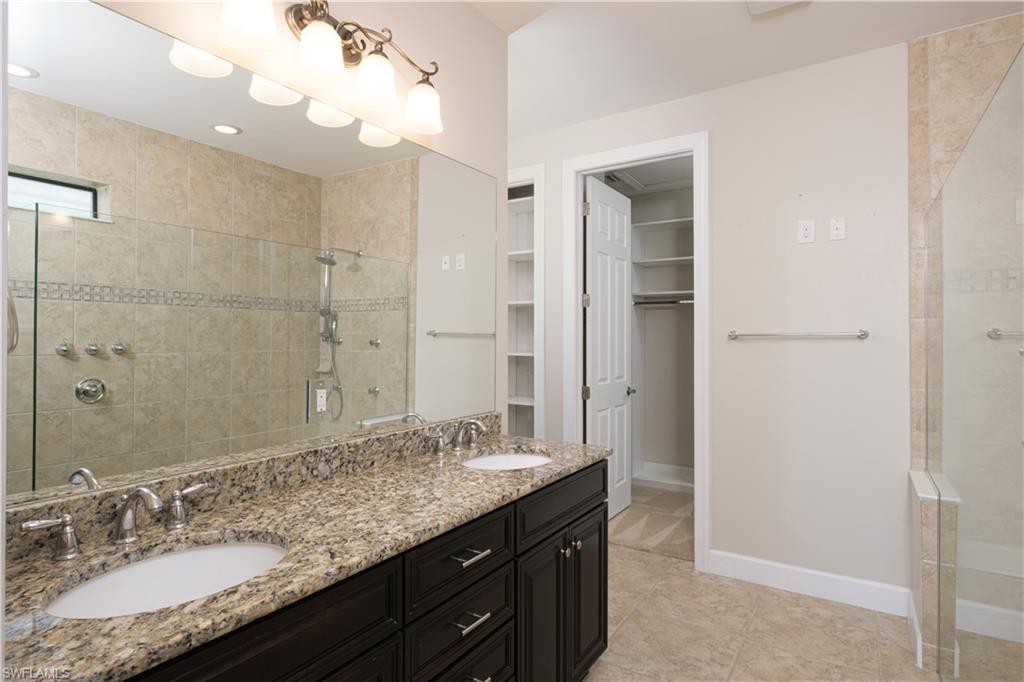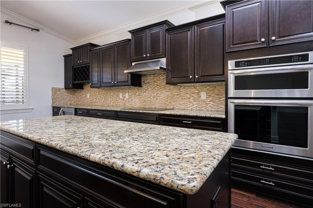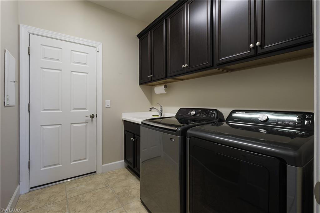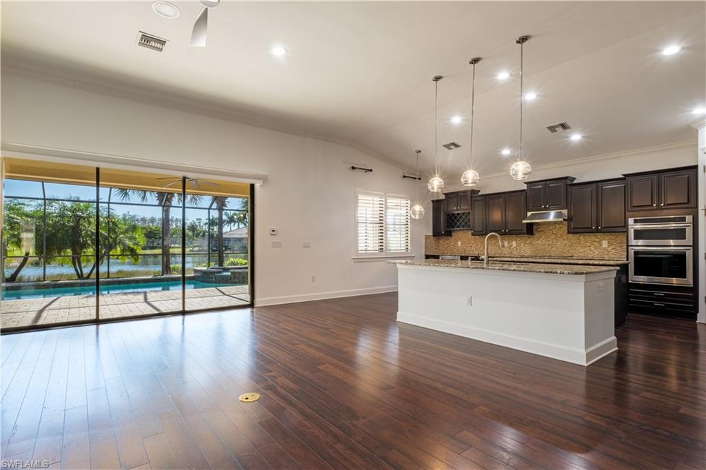 This former Cameron Model Home was designed for luxurious living, showcasing countless upgrades and thoughtful features. With three bedrooms, a den, and three bathrooms, this home boasts a private saltwater pool and spa on a spacious lanai overlooking serene lake views. The Southern exposure enhances the inviting atmosphere, perfect for relaxation or entertaining. Inside, you'll find beautiful hardwood flooring, custom-built closets, hidden storage, a gourmet kitchen with a wine cooler and double island, plantation shutters throughout, fresh interior paint, newly sealed pavers, hurricane protection, and newly refinished flooring in the extended (23' deep) garage. Located just a short walk to the clubhouse and amenities, this amenity-rich gated community features a resort-style pool, fitness center, yoga room, tennis and pickleball courts, and a stunning clubhouse, all with low HOA fees. Conveniently situated near A-rated schools, I-75, shopping, dining, and RSW Airport, this home offers the perfect blend of elegance and practicality. Schedule your private showing today!