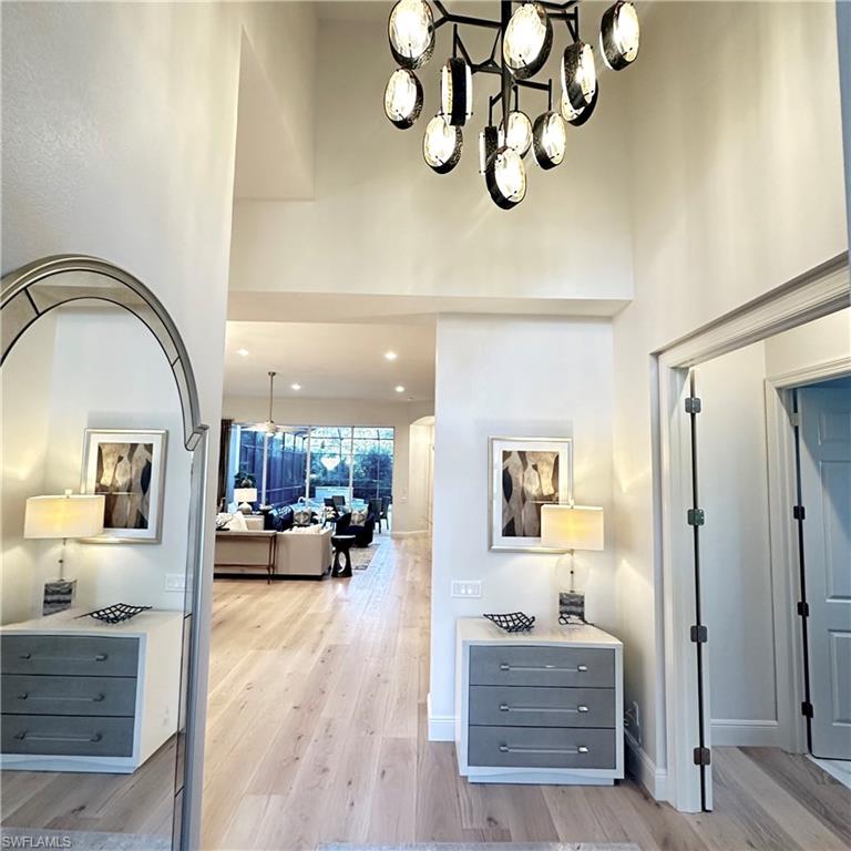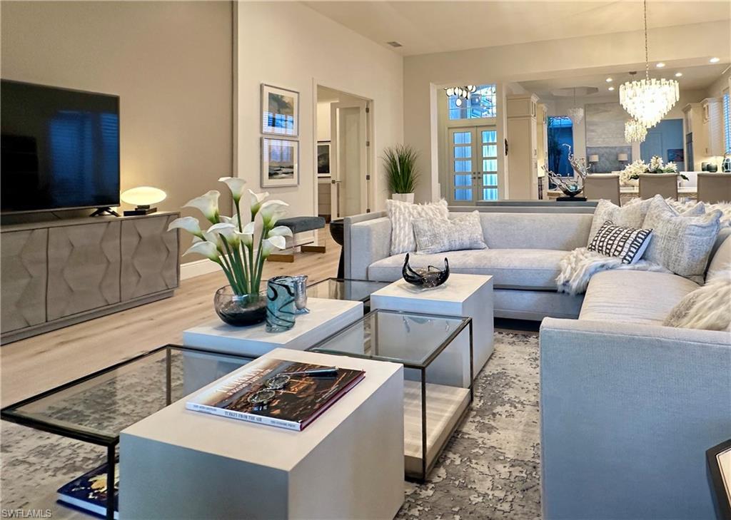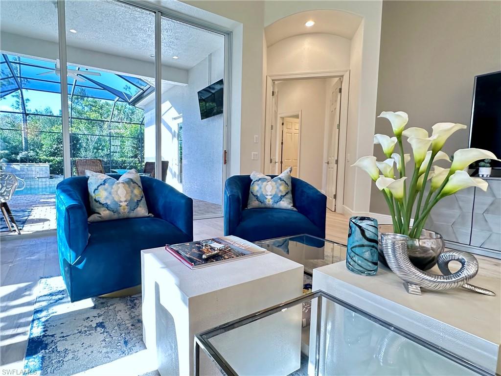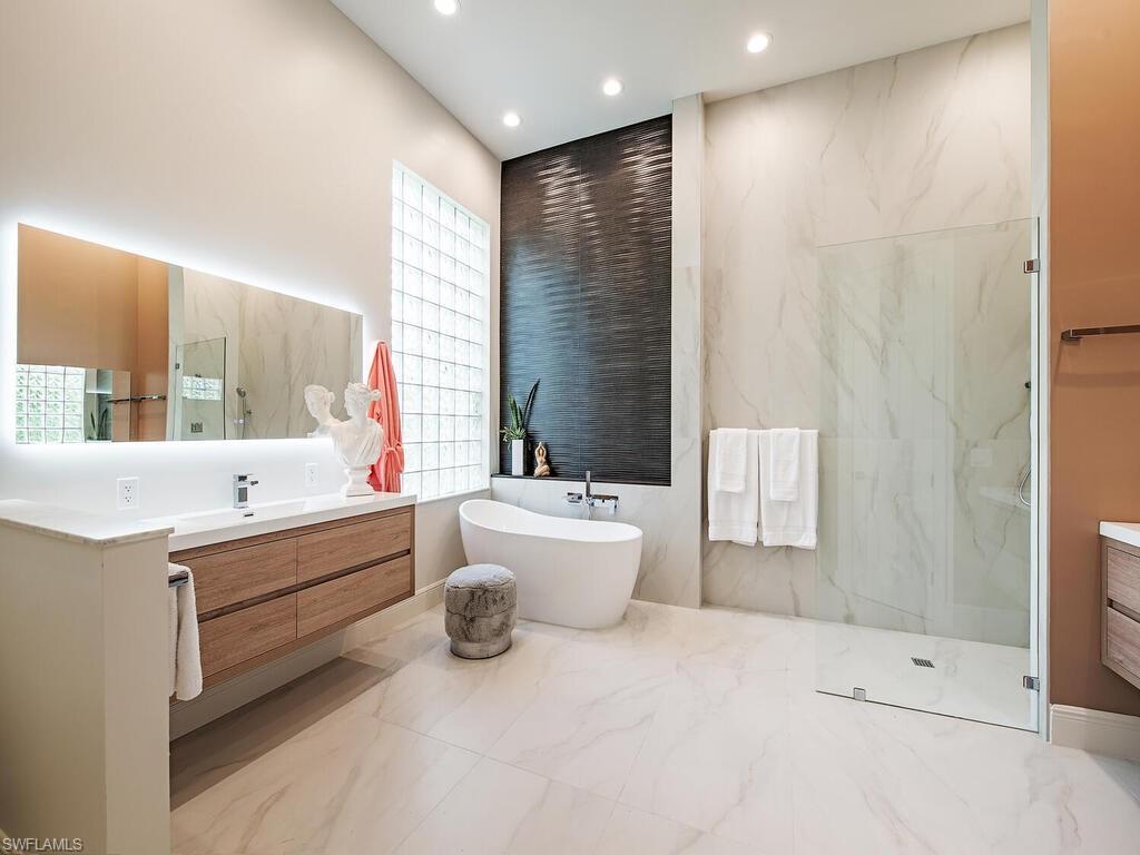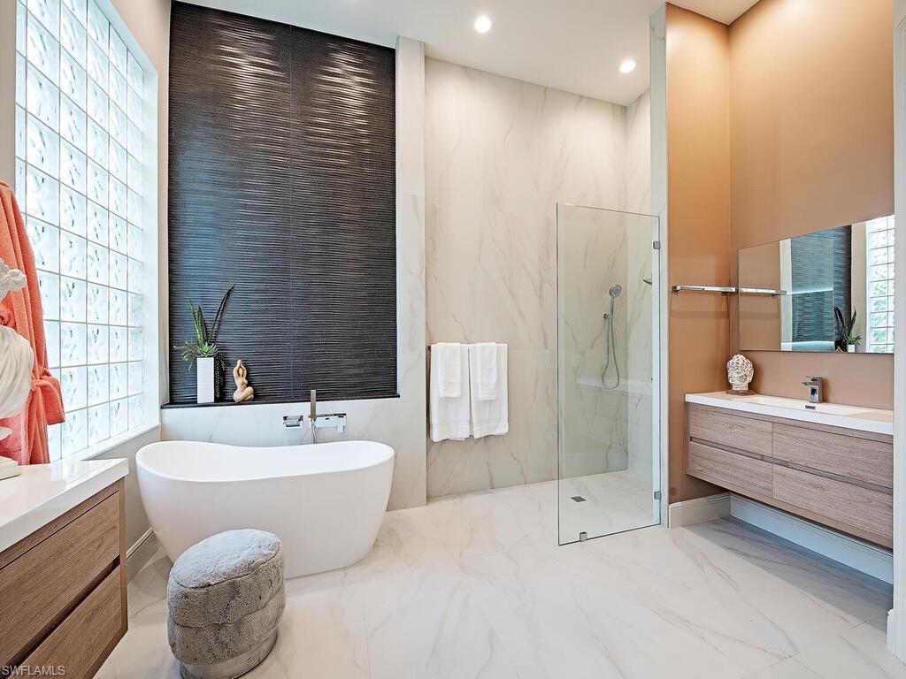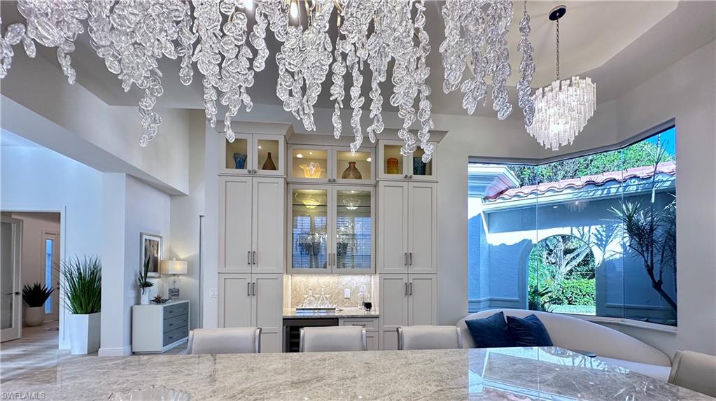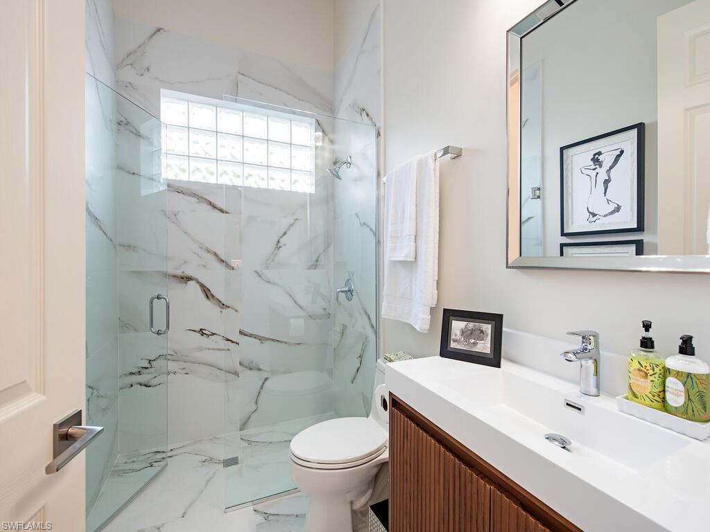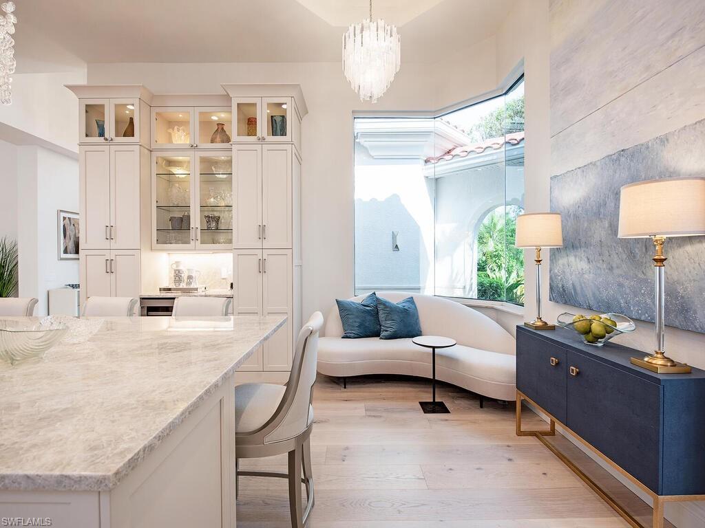 PRICED TO SELL! Discover this stunning, fully renovated 3-bedroom, 3-bathroom home in the prestigious Portofino community within Pelican Marsh. Spanning 2,838 square feet under 2024 roof, this residence seamlessly blends timeless elegance with modern comfort, delivering an exceptional living experience in the heart of Naples. Step inside and be captivated by the bright, airy ambiance enhanced by wide-plank white oak flooring that flows effortlessly throughout. The neutral color palette, soaring ceilings, and thoughtful upgrades create a sense of understated luxury. Designed for both relaxation and entertaining, this home exudes comfort and style in every detail. At the heart of the home is the gourmet kitchen, a beautifully crafted space featuring custom cabinetry, sleek quartzite countertops and an oversized center island—perfect for hosting family and friends. A chic wet bar adds extra functionality, while a striking chandelier and soft recessed lighting lend sophistication and warmth to the space. The primary suite is a standout, designed as a luxurious escape with two walk-in closets and a spa-like bathroom. This serene space features dual vanities with anti-fog backlit mirrors, a glass-enclosed walk-in shower, and a separate soaking tub. The two guest bedrooms are equally well-appointed, each offering its own private en-suite bathroom to ensure comfort and privacy. Located in the highly sought-after Pelican Marsh community, residents enjoy world-class amenities, including 6 brand-new pickleball courts, 8 Har-Tru tennis courts, 3 bocce courts, a state-of-the-art fitness center, and the popular Courtside Restaurant. Pelican Marsh fosters an active and vibrant social scene suited to a variety of interests. Nestled in the prime location of North Naples, this home offers unparalleled access to Mercato, Waterside Shops, pristine Gulf beaches, and Naples’ renowned dining, shopping, and entertainment options. This is a rare opportunity to own a home that perfectly balances elegance, functionality, and an unbeatable location.
