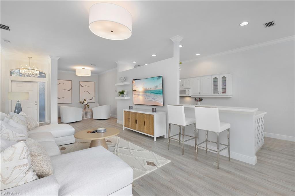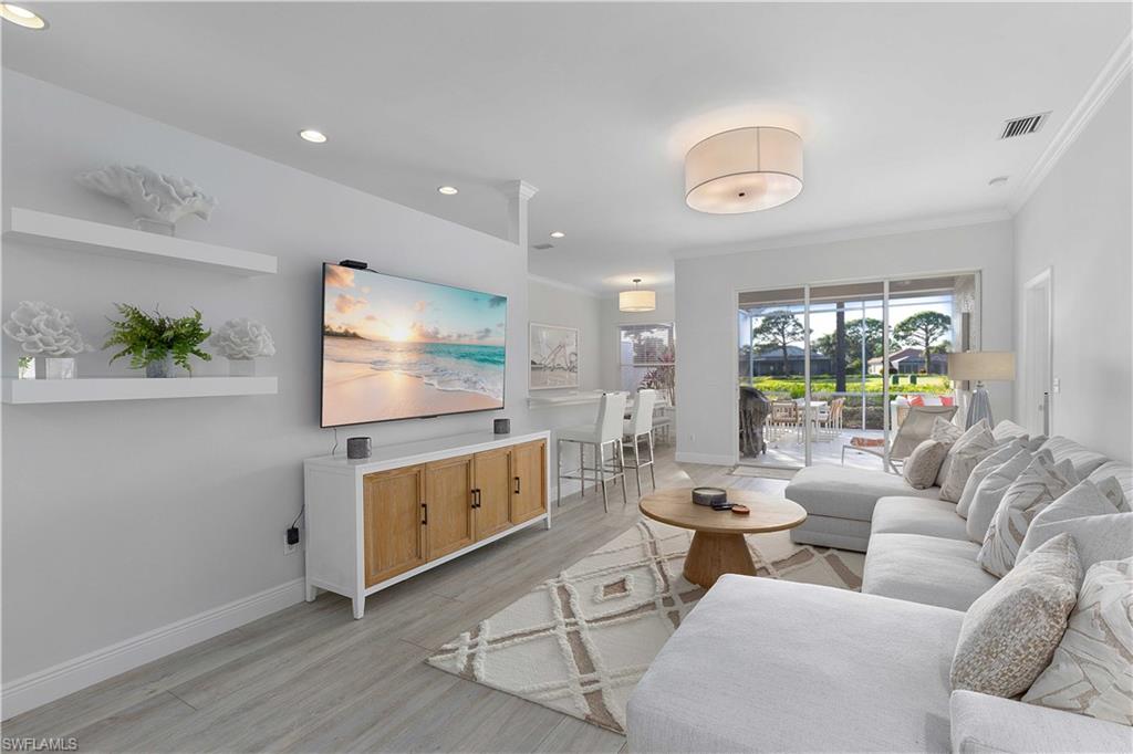 This stunning, modern villa is located in the highly desirable Highland Woods community. The home boasts a light-filled, open concept floor plan that is perfect for both everyday living and entertaining. With split bedrooms, the layout offers privacy and functionality. The abundance of windows provide beautiful views of the lush golf course, creating a peaceful and scenic atmosphere. Situated on a prime corner lot, the property is just steps away from the neighborhood pool, offering convenience and luxury. The expansive club offers a perfect blend of casual and fine dining options. Enjoy the brand-new zero-entry pool with tiki bar and food service, ideal for relaxing and unwinding. Stay active with top-notch facilities for pickleball, tennis, and bocce, or take in the beauty of the meticulously maintained golf course. With a calendar full of fun social events, there’s always something exciting to look forward to. Located in the heart of Bonita Springs, this club is just minutes away from stunning beaches, shopping, and dining.