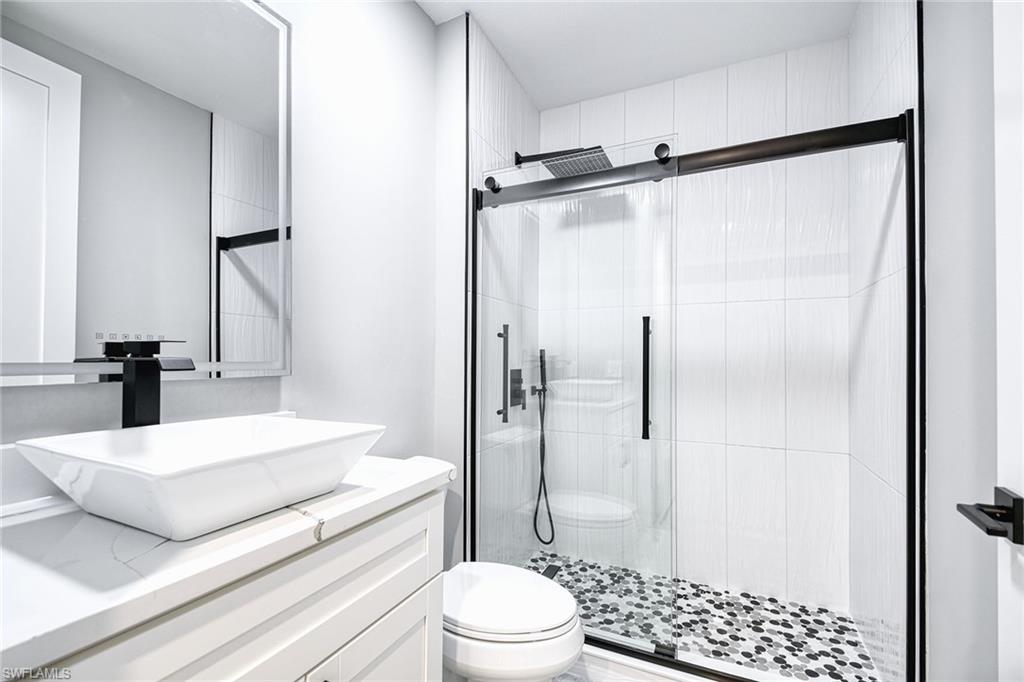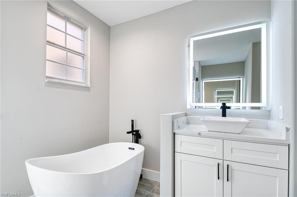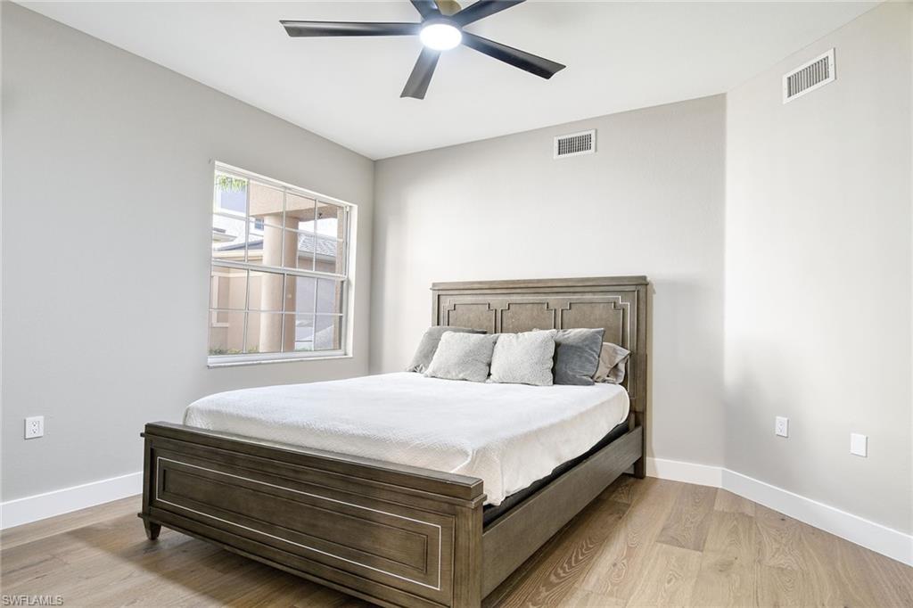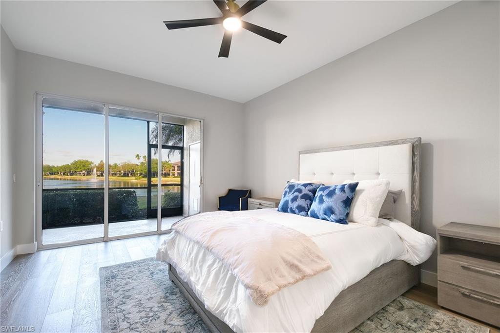 Just completed fully renovated, like new, three-bedroom, two full-bath coach home in the gated community in the Vineyard. This rare opportunity to own a Regency Reserve first-floor coach home with long water views, totally remodeled and close to the clubhouse. New kitchen with Bosch appliances, shaker cabinetry, bar area and a large countertop area to the dining and great room. The primary bath has a water closet, free-standing soaking tub, large shower with glass wall and door. The second bath has been completely remodeled with all new plumbing fixtures, flooring and vanities. Fantastic views from the great room and dining area with two large sliding doors out to an oversized lanai. Adding to the sophistication of the home is the beautiful oak flooring throughout the living area and bedrooms and 10-foot ceilings throughout the home. Regency Reserve community includes resort-style cascading waterfall pool with remodeled clubhouse. Just inside the gated community of The Vineyards and close to the Vineyards Country Club which offers two levels of optional memberships, and 36 holes of championship golf, 12 Har-Tru tennis courts, eight pickleball courts, resort-style pool, restaurant and bocce. In addition, there is a state-of-the-art wellness & spa center, on-site fitness trainers and physical therapist! Café, salt room, massage and salon services, plus saltwater lap pool.