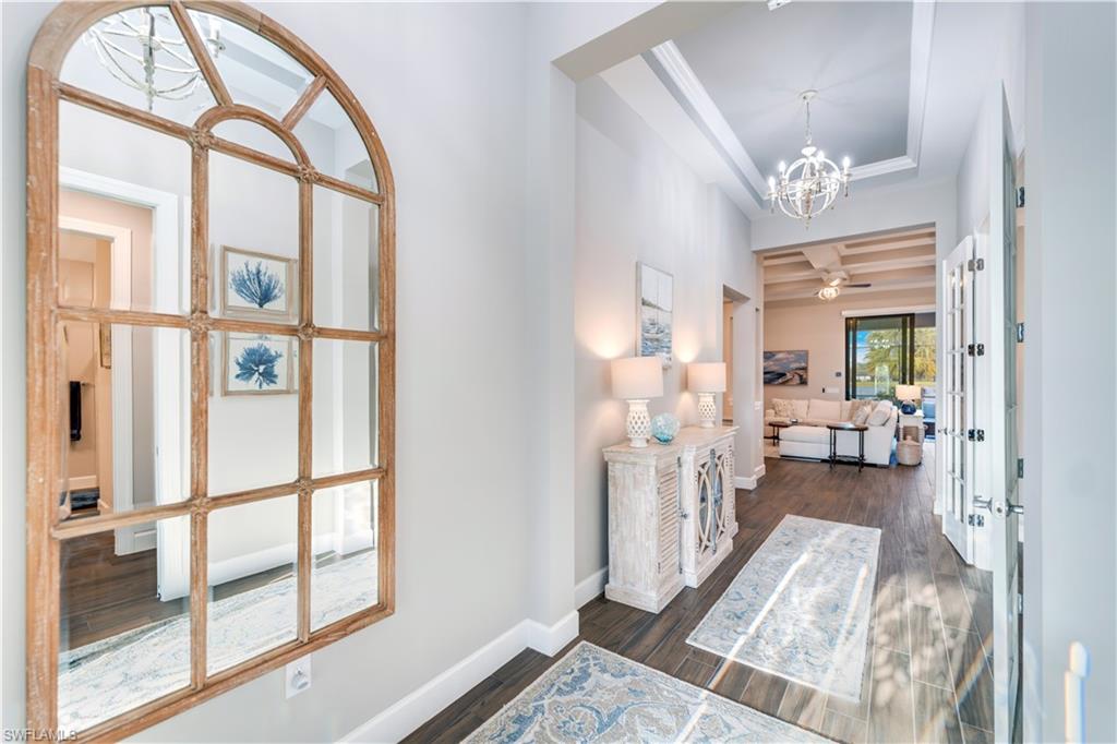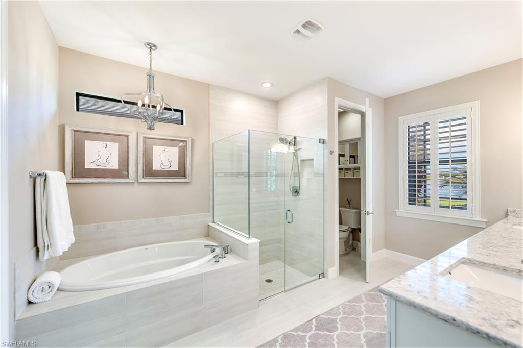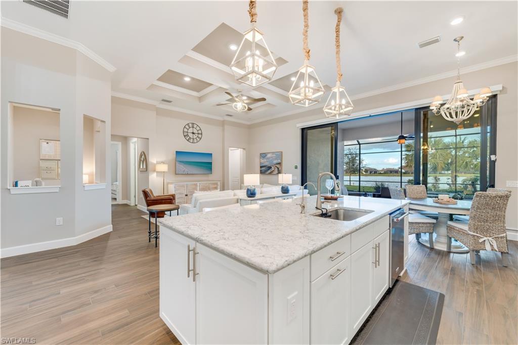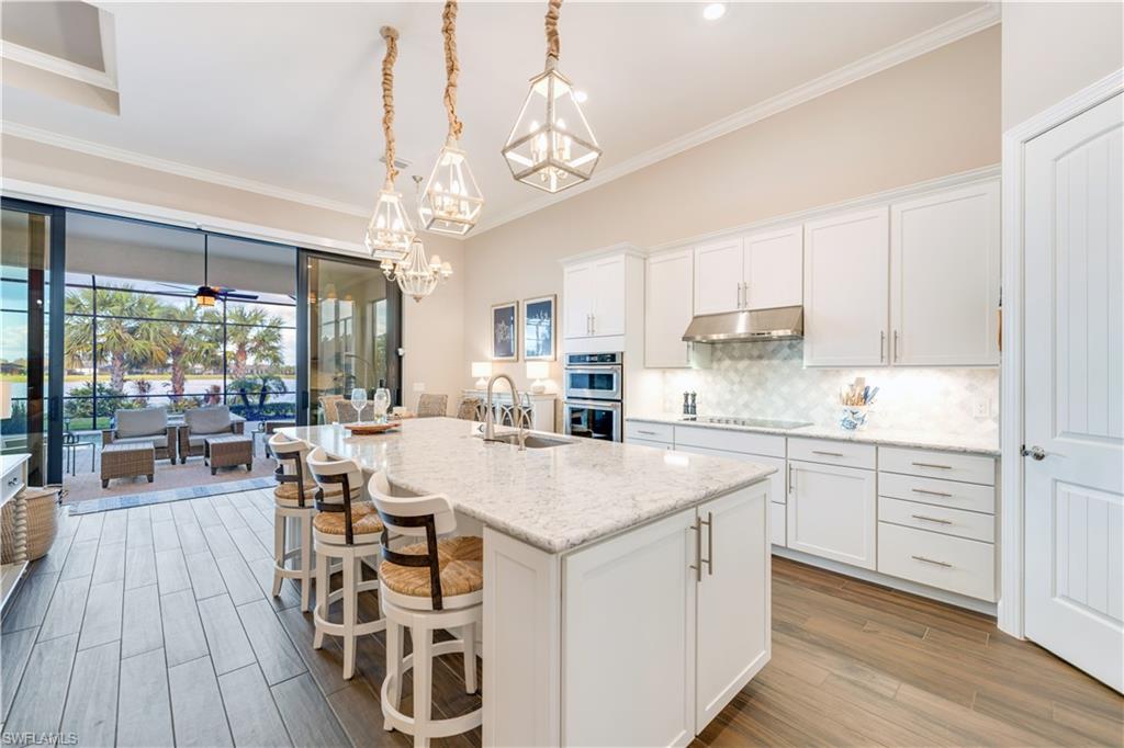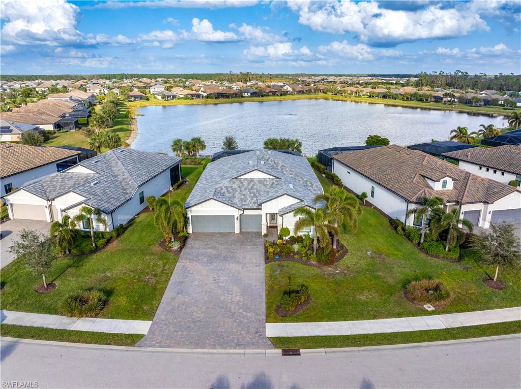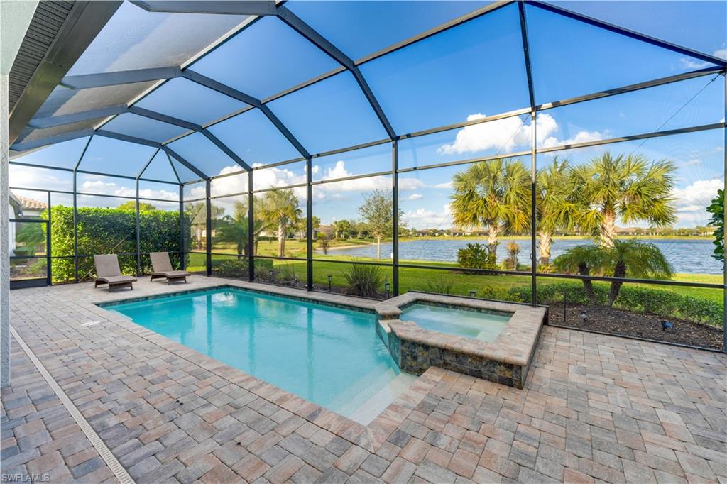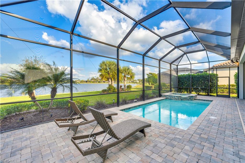 While photos offer a glimpse of this home’s beauty, only an in-person visit can truly allow you to experience HOW GORGEOUS IT IS! This stunning Creekview model by Pulte Homes in The Place at Corkscrew offers breathtaking LAKE VIEWS, a HEATED SALTWATER POOL AND SPA, & is LOADED WITH UPGRADES, all on a OVERSIZED WATERFRONT LOT. This exquisite home features 4-beds + a DEN OR OFFICE & 3-baths, spanning nearly 2,500 sqft. From the moment you arrive, the PROFESSIONAL LANDSCAPING, & DESIGNER EXTERIOR LIGHTING set the tone for the elegance that awaits inside. The CUSTOM GLASS ENTRY DOOR offers a glimpse of the upgrades throughout, while HURRICANE-IMPACT WINDOWS AND DOORS provide both safety and style. Step inside to SOARING 12-FOOT COFFERED CEILINGS, DETAILED CROWN MOLDING, & PLANK WOOD-INSPIRED TILE FLOORING that flows seamlessly through the main living areas. The OPEN-CONCEPT LAYOUT connects indoor & outdoor spaces w/ 10-FOOT GLASS SLIDERS & REMOTE-CONTROLLED LUTRON SHADES. The chef’s kitchen, features QUARTZ COUNTERTOPS, UPGRADED SOFT-CLOSE CABINETS w/ UNDER-CABINET LIGHTING, PREMIUM BUILT-IN KITCHENAID APPLIANCES, & a CUSTOM CORNER PANTRY WITH SHELVING. The OVERSIZED ISLAND provides the perfect space for meal prep, casual dining, or gathering with friends and family. The luxurious primary suite is complete with PLANTATION SHUTTERS, a TRAY CEILING, & a SPA-LIKE BATHROOM featuring a FRAMELESS GLASS SHOWER, SOAKING TUB, & an EXPANSIVE WALK-IN CLOSET. 3 additional bedrooms & 2 guest bathrooms offer comfort & privacy for family & guests. The FLEXIBLE DEN OR OFFICE, upgraded with GLASS FRENCH DOORS and PLANK TILE FLOORING, provides extra space for work, hobbies, or guest accommodations. Thoughtful extras include a PERSONAL PLANNING CENTER, ideal for a HOME OFFICE or transform into a WINE BAR or STORAGE CLOSET with a $3000 CREDIT from the sellers! Plus a BEAUTIFUL LAUNDRY ROOM with QUARTZ COUNTERTOPS, a CUSTOM TILE BACKSPLASH, & UPGRADED WHIRLPOOL APPLIANCES. The outdoor space is an oasis. The SPACIOUS COVERED LANAI is perfect for dining and entertaining, all while enjoying serene WATERFRONT VIEWS. The HEATED SALTWATER POOL & SPA are surrounded by TALL HEDGES, offering privacy & the ultimate setting for relaxation. The SPACIOUS 3-CAR GARAGE includes a RARE 4 FT EXTENSION, EPOXY-COATED FLOORS, INSULATED DOORS, & ATTIC INSULATION, providing ample room for vehicles, storage, or a workshop. For a seamless move-in experience, FURNITURE IS NEGOTIABLE. The Place at Corkscrew offers RESORT-STYLE AMENITIES, including a ZERO-ENTRY LAGOON POOL, 100-FOOT WATERSLIDE, FITNESS CENTER, TENNIS, BOCCE & PICKLEBALL COURTS, SAND VOLLEYBALL, a PLAYGROUND, and DOG PARK. 3 on-site dining options, include the BAREFOOT BAR & GRILL, BOURBON BAR and café. Conveniently located near a NEW PUBLIX PLAZA, RSW AIRPORT, Miromar Outlets & Gulf Coast Town Center, this home offers TIMELESS ELEGANCE, MODERN FUNCTIONALITY, and the perfect blend of LUXURY AND RECREATION.
