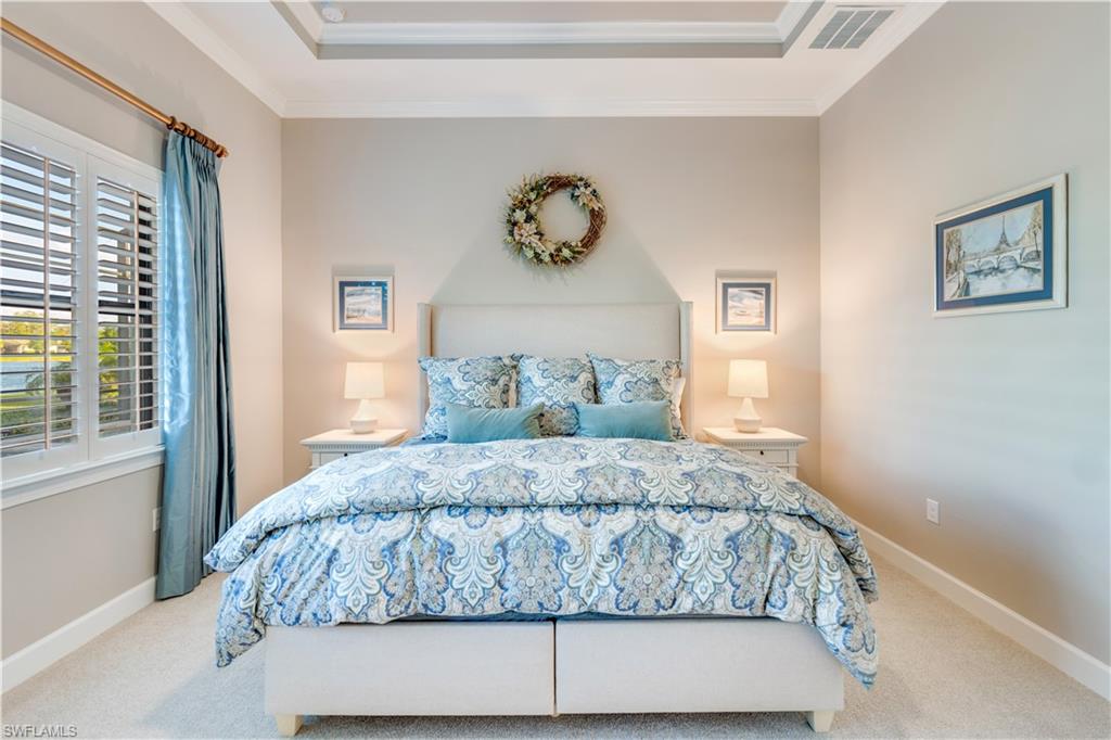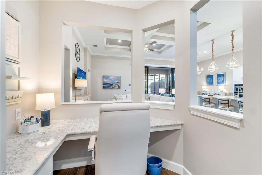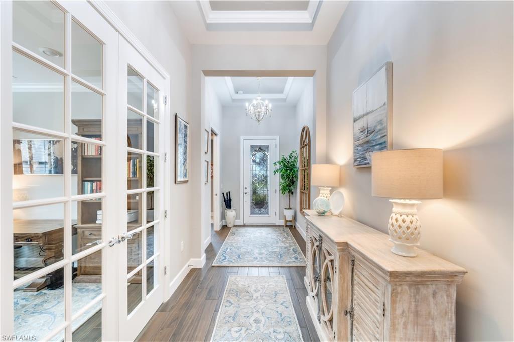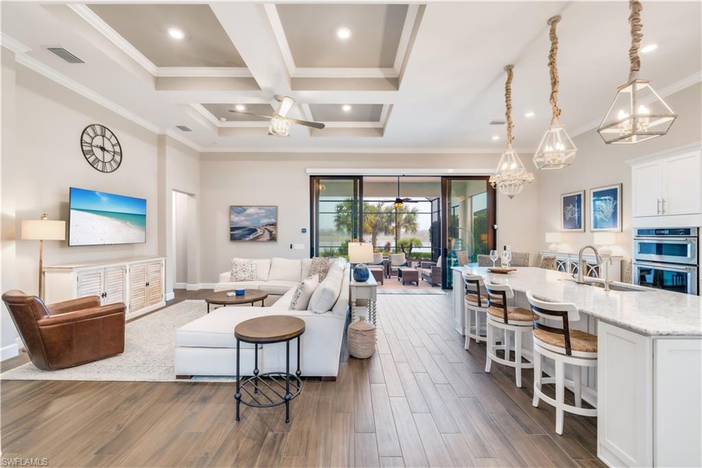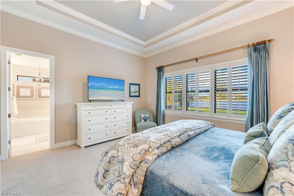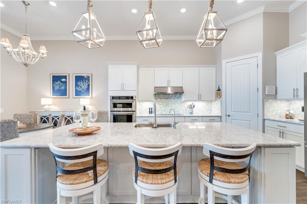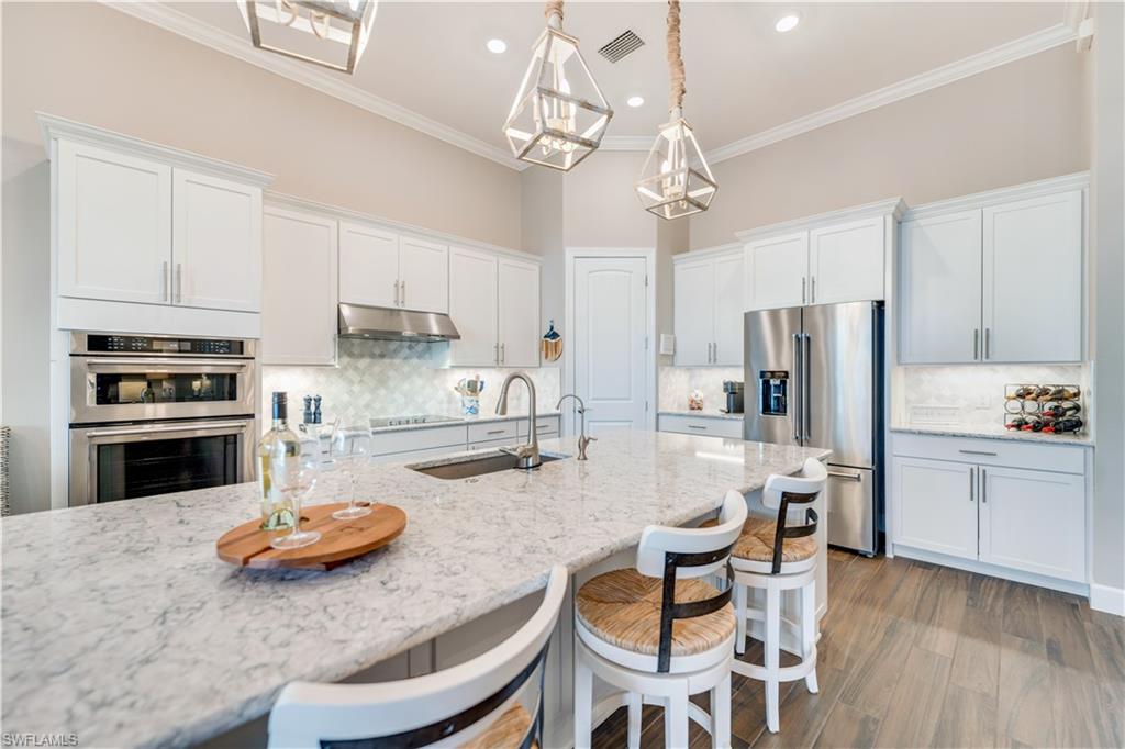 While photos offer a glimpse of this home’s beauty, only an in-person visit can truly allow you to experience HOW GORGEOUS IT IS! This stunning Creekview model by Pulte Homes in The Place at Corkscrew offers breathtaking LAKE VIEWS, a HEATED SALTWATER POOL AND SPA, & is LOADED WITH UPGRADES, all on a OVERSIZED WATERFRONT LOT. This exquisite home features 4-beds + a DEN OR OFFICE & 3-baths, spanning nearly 2,500 sqft. From the moment you arrive, the PROFESSIONAL LANDSCAPING, & DESIGNER EXTERIOR LIGHTING set the tone for the elegance that awaits inside. The CUSTOM GLASS ENTRY DOOR offers a glimpse of the upgrades throughout, while HURRICANE-IMPACT WINDOWS AND DOORS provide both safety and style. Step inside to SOARING 12-FOOT COFFERED CEILINGS, DETAILED CROWN MOLDING, & PLANK WOOD-INSPIRED TILE FLOORING that flows seamlessly through the main living areas. The OPEN-CONCEPT LAYOUT connects indoor & outdoor spaces w/ 10-FOOT GLASS SLIDERS & REMOTE-CONTROLLED LUTRON SHADES. The chef’s kitchen, features QUARTZ COUNTERTOPS, UPGRADED SOFT-CLOSE CABINETS w/ UNDER-CABINET LIGHTING, PREMIUM BUILT-IN KITCHENAID APPLIANCES, & a CUSTOM CORNER PANTRY WITH SHELVING. The OVERSIZED ISLAND provides the perfect space for meal prep, casual dining, or gathering with friends and family. The luxurious primary suite is complete with PLANTATION SHUTTERS, a TRAY CEILING, & a SPA-LIKE BATHROOM featuring a FRAMELESS GLASS SHOWER, SOAKING TUB, & an EXPANSIVE WALK-IN CLOSET. 3 additional bedrooms & 2 guest bathrooms offer comfort & privacy for family & guests. The FLEXIBLE DEN OR OFFICE, upgraded with GLASS FRENCH DOORS and PLANK TILE FLOORING, provides extra space for work, hobbies, or guest accommodations. Thoughtful extras include a PERSONAL PLANNING CENTER, ideal for a HOME OFFICE or transform into a WINE BAR or STORAGE CLOSET with a $3000 CREDIT from the sellers! Plus a BEAUTIFUL LAUNDRY ROOM with QUARTZ COUNTERTOPS, a CUSTOM TILE BACKSPLASH, & UPGRADED WHIRLPOOL APPLIANCES. The outdoor space is an oasis. The SPACIOUS COVERED LANAI is perfect for dining and entertaining, all while enjoying serene WATERFRONT VIEWS. The HEATED SALTWATER POOL & SPA are surrounded by TALL HEDGES, offering privacy & the ultimate setting for relaxation. The SPACIOUS 3-CAR GARAGE includes a RARE 4 FT EXTENSION, EPOXY-COATED FLOORS, INSULATED DOORS, & ATTIC INSULATION, providing ample room for vehicles, storage, or a workshop. For a seamless move-in experience, FURNITURE IS NEGOTIABLE. The Place at Corkscrew offers RESORT-STYLE AMENITIES, including a ZERO-ENTRY LAGOON POOL, 100-FOOT WATERSLIDE, FITNESS CENTER, TENNIS, BOCCE & PICKLEBALL COURTS, SAND VOLLEYBALL, a PLAYGROUND, and DOG PARK. 3 on-site dining options, include the BAREFOOT BAR & GRILL, BOURBON BAR and café. Conveniently located near a NEW PUBLIX PLAZA, RSW AIRPORT, Miromar Outlets & Gulf Coast Town Center, this home offers TIMELESS ELEGANCE, MODERN FUNCTIONALITY, and the perfect blend of LUXURY AND RECREATION.