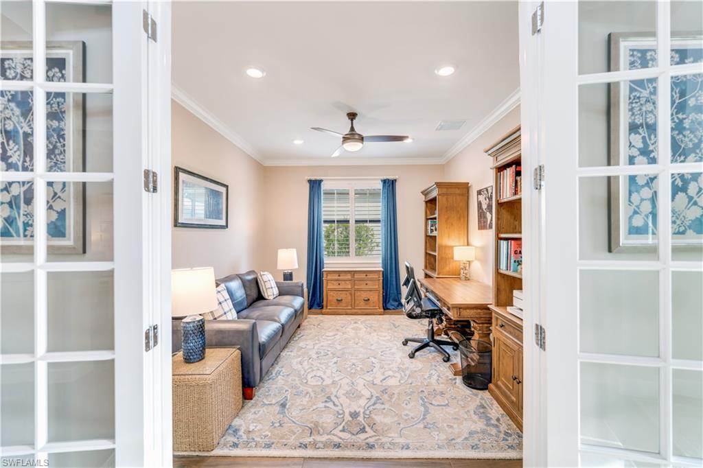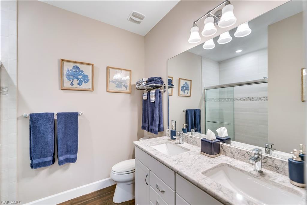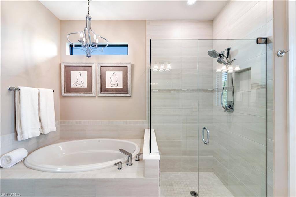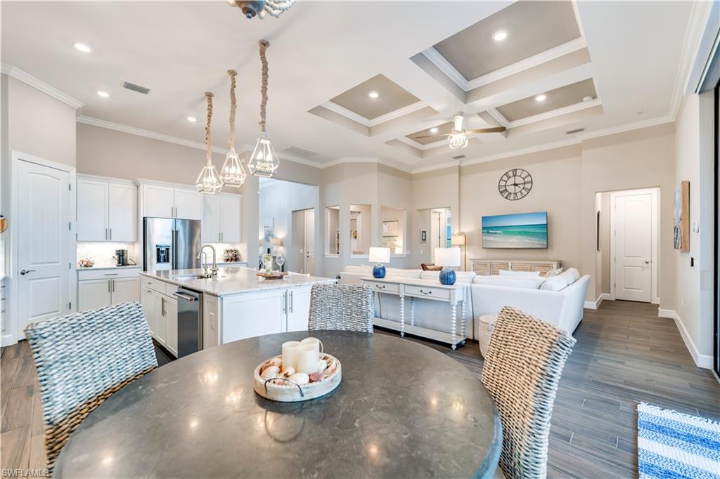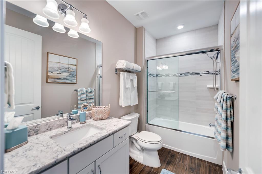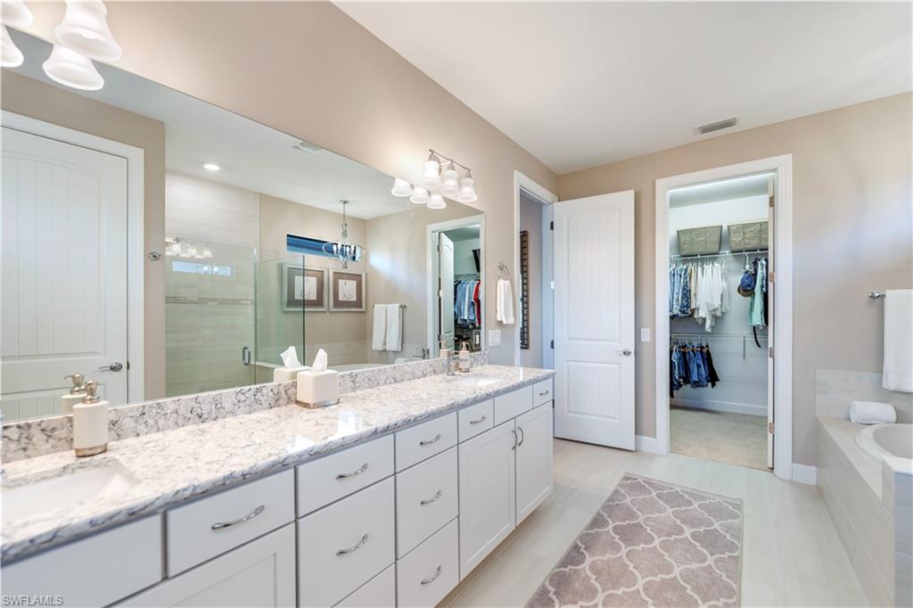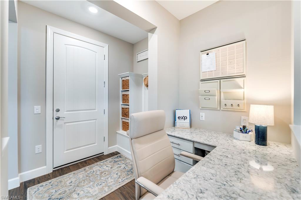 While photos offer a glimpse of this home’s beauty, only an in-person visit can truly allow you to experience HOW GORGEOUS IT IS! This stunning Creekview model by Pulte Homes in The Place at Corkscrew offers breathtaking LAKE VIEWS, a HEATED SALTWATER POOL AND SPA, & is LOADED WITH UPGRADES, all on a OVERSIZED WATERFRONT LOT. This exquisite home features 4-beds + a DEN OR OFFICE & 3-baths, spanning nearly 2,500 sqft. From the moment you arrive, the PROFESSIONAL LANDSCAPING, & DESIGNER EXTERIOR LIGHTING set the tone for the elegance that awaits inside. The CUSTOM GLASS ENTRY DOOR offers a glimpse of the upgrades throughout, while HURRICANE-IMPACT WINDOWS AND DOORS provide both safety and style. Step inside to SOARING 12-FOOT COFFERED CEILINGS, DETAILED CROWN MOLDING, & PLANK WOOD-INSPIRED TILE FLOORING that flows seamlessly through the main living areas. The OPEN-CONCEPT LAYOUT connects indoor & outdoor spaces w/ 10-FOOT GLASS SLIDERS & REMOTE-CONTROLLED LUTRON SHADES. The chef’s kitchen, features QUARTZ COUNTERTOPS, UPGRADED SOFT-CLOSE CABINETS w/ UNDER-CABINET LIGHTING, PREMIUM BUILT-IN KITCHENAID APPLIANCES, & a CUSTOM CORNER PANTRY WITH SHELVING. The OVERSIZED ISLAND provides the perfect space for meal prep, casual dining, or gathering with friends and family. The luxurious primary suite is complete with PLANTATION SHUTTERS, a TRAY CEILING, & a SPA-LIKE BATHROOM featuring a FRAMELESS GLASS SHOWER, SOAKING TUB, & an EXPANSIVE WALK-IN CLOSET. 3 additional bedrooms & 2 guest bathrooms offer comfort & privacy for family & guests. The FLEXIBLE DEN OR OFFICE, upgraded with GLASS FRENCH DOORS and PLANK TILE FLOORING, provides extra space for work, hobbies, or guest accommodations. Thoughtful extras include a PERSONAL PLANNING CENTER, ideal for a HOME OFFICE or transform into a WINE BAR or STORAGE CLOSET with a $3000 CREDIT from the sellers! Plus a BEAUTIFUL LAUNDRY ROOM with QUARTZ COUNTERTOPS, a CUSTOM TILE BACKSPLASH, & UPGRADED WHIRLPOOL APPLIANCES. The outdoor space is an oasis. The SPACIOUS COVERED LANAI is perfect for dining and entertaining, all while enjoying serene WATERFRONT VIEWS. The HEATED SALTWATER POOL & SPA are surrounded by TALL HEDGES, offering privacy & the ultimate setting for relaxation. The SPACIOUS 3-CAR GARAGE includes a RARE 4 FT EXTENSION, EPOXY-COATED FLOORS, INSULATED DOORS, & ATTIC INSULATION, providing ample room for vehicles, storage, or a workshop. For a seamless move-in experience, FURNITURE IS NEGOTIABLE. The Place at Corkscrew offers RESORT-STYLE AMENITIES, including a ZERO-ENTRY LAGOON POOL, 100-FOOT WATERSLIDE, FITNESS CENTER, TENNIS, BOCCE & PICKLEBALL COURTS, SAND VOLLEYBALL, a PLAYGROUND, and DOG PARK. 3 on-site dining options, include the BAREFOOT BAR & GRILL, BOURBON BAR and café. Conveniently located near a NEW PUBLIX PLAZA, RSW AIRPORT, Miromar Outlets & Gulf Coast Town Center, this home offers TIMELESS ELEGANCE, MODERN FUNCTIONALITY, and the perfect blend of LUXURY AND RECREATION.