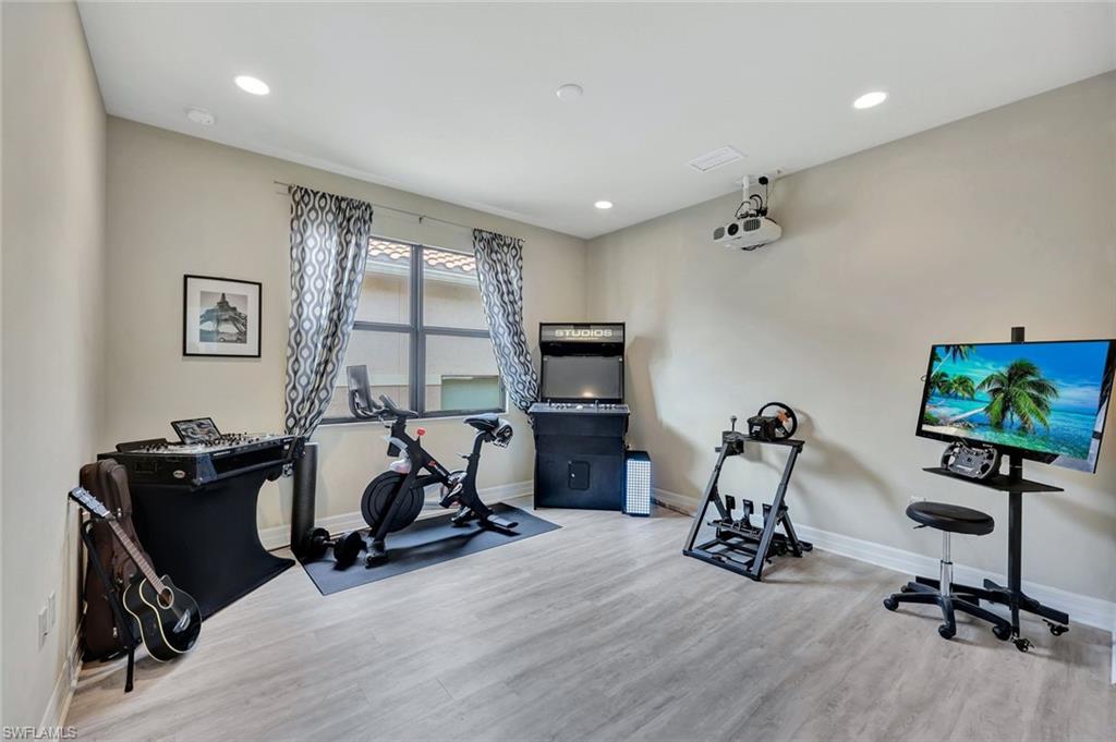 SELLER PAYS 2-1 RATE BUY DOWN with participating lender, to reduce monthly payments for first 2 years.This is a Limited time offer and buyer must qualify with participating lender. This stunning 6-beds 4-baths home is located in the prestigious gated community of Riverstone in North Naples, Florida.In a NO FLOOD ZONE. Enjoy modern living with resort-style luxury, this home offers the perfect blend of elegance, functionality, and world-class amenities. Step into a spacious and inviting layout featuring two living rooms and a formal dining room, perfect for hosting gatherings or enjoying quiet family moments. The chef’s kitchen is equipped with granite countertops, stainless steel appliances, custom cabinetry, designer lighting, a wine cooler, and a REVERSE OSMOSIS system. The kitchen flows seamlessly into the family room and expansive outdoor living spaces. The main floor also includes a flexible bedroom that can serve as a home office or guest suite, while under-the-stairs storage offers the ideal space for a pantry or wine collection. Upstairs, the owner’s suite is a serene retreat with a coffered ceiling, dual walk-in closets, and a spa-inspired bathroom featuring an oversized shower, jetted soaking tub, and double vanities. Additional upstairs highlights include a bonus room with a projector, perfect for a home theater or game room, and two bedrooms sharing a Jack-and-Jill bathroom. The laundry room offers easy access on the upper level. Step outside into your tropical oasis. The expansive covered lanai boasts a custom outdoor kitchen with a Lynx grill, LED jetted hot tub, surround sound speakers. The oversized backyard is home to lush tropical fruit trees and pre-wired with a pool panel, ready for your custom-designed pool. Your pets can run freely in your very own dog run area. Living in Riverstone means access to resort-style amenities that rival any luxury vacation. Enjoy the resort-style pool with hot tub, lap pool, 5 Har-Tru tennis courts, pickleball courts, basketball courts, splash pad, bike paths, and playground. The newly renovated clubhouse includes a gourmet kitchen, billiard room, yoga/dance studio, and vibrant social spaces. A dedicated lifestyle director ensures a full calendar of community events. This home is zoned for A-RATED SCHOOLS including the NEW Aubrey Rogers High School. Only 20 minutes to RSW Fort Myers International Airport, minutes from I-75 just minutes to world-famous Gulf Coast beaches, fine dining, championship golf courses, and premier shopping. Home features Hurricane-impact windows and doors, energy-efficient LED lighting, solid-core doors, central vacuum system, whole-house water softener, outdoor floodlights, and a whole-house speakers and intercom system, this home offers the perfect blend of convenience, security, and luxury. Start living the lifestyle upgrade you’ve been dreaming of. Schedule your private showing today and make this Florida paradise yours!