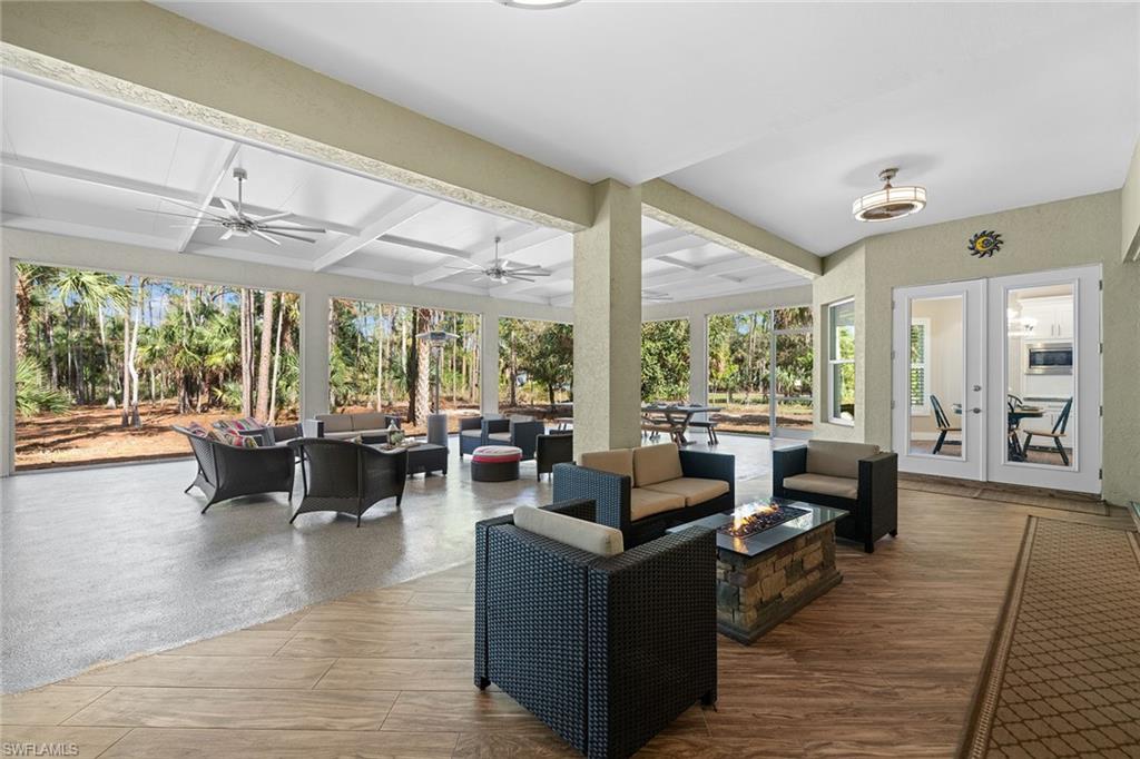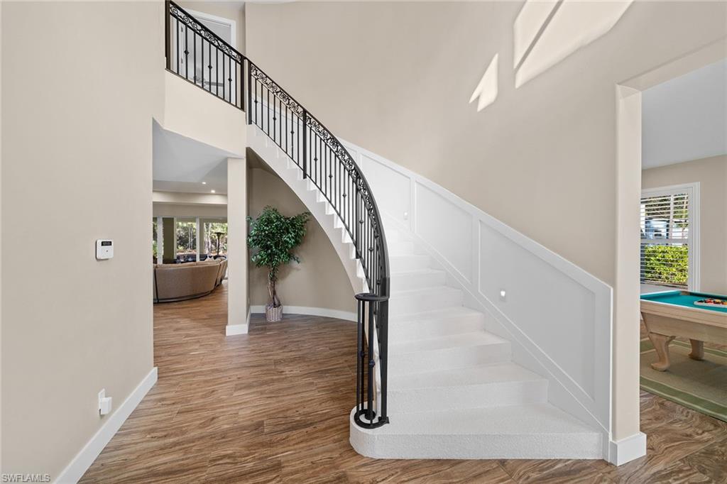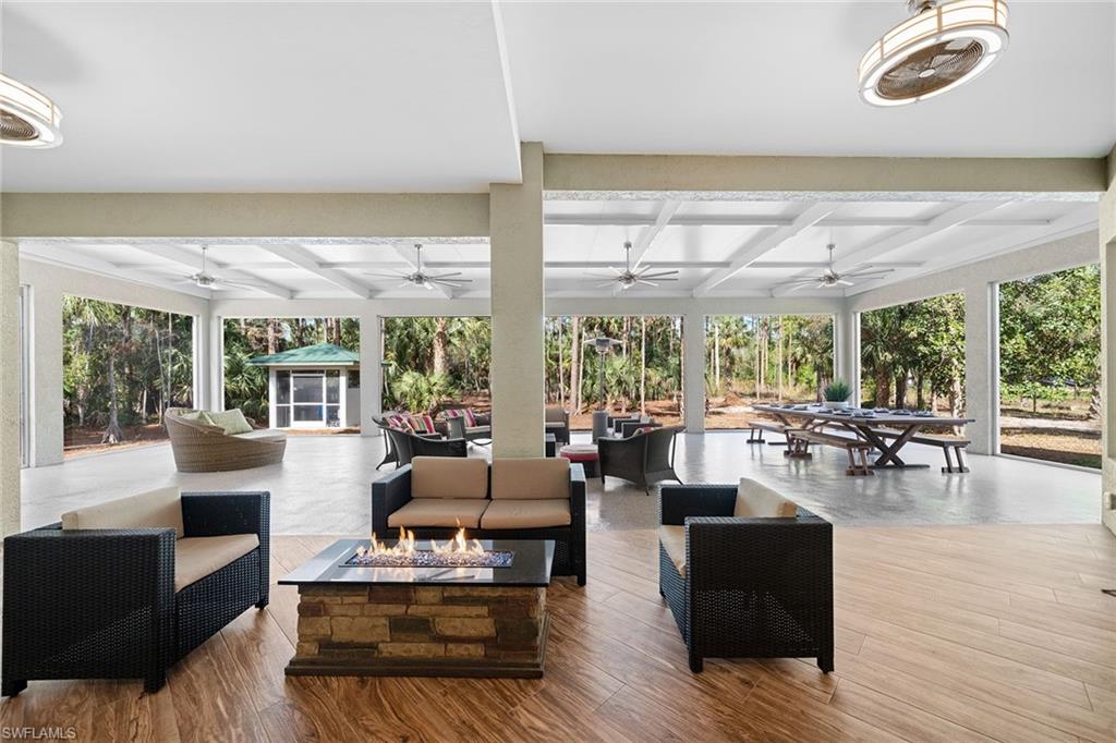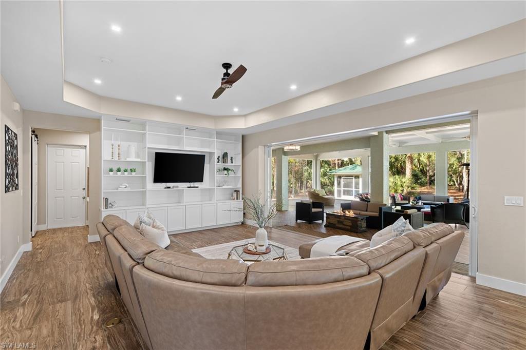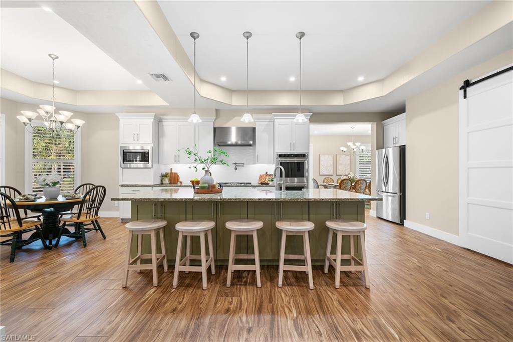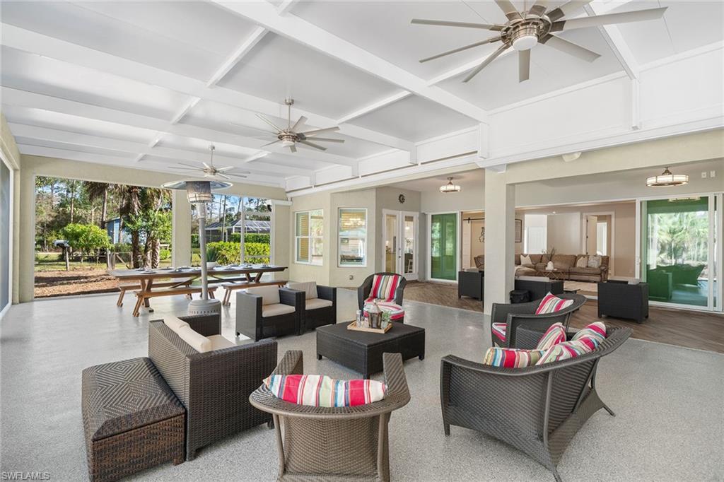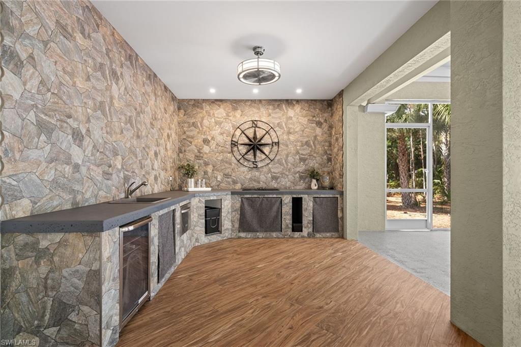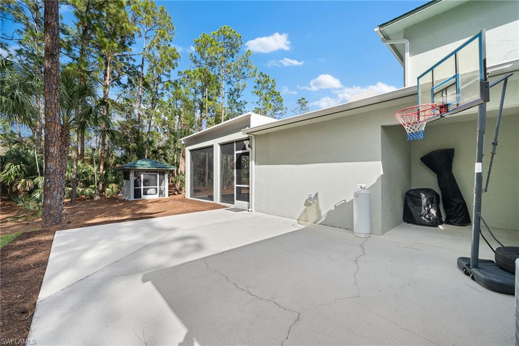 This 4,200-square-foot estate home, completed in 2018, is positioned on 2.73 acres in sought-after Weber Woods. Built with an unwavering focus on structural integrity, featuring poured concrete throughout—including the staircases and walls between both stories—this residence was designed for durability, energy efficiency and refined living. Foam insulation, impact-resistant doors and windows and rooftop solar panels significantly minimize electric costs, only property taxes apply, and a $28 monthly electric bill. A portable whole-house generator ensures uninterrupted power, while an advanced ozone-enhanced water filtration system delivers exceptional water quality. Purposefully designed for grand-scale entertaining, the home seamlessly accommodates gatherings exceeding 100 guests. A 1,900-square-foot lanai offers expansive outdoor living space, and the grounds allow for generous guest parking. The driveway was professionally resealed in April 2025, underscoring the homeowners’ commitment to attentive maintenance. The chef-inspired kitchen showcases custom KitchenAid cabinetry with pullouts, drawers and a pot filler, combining form with functionality. The first-floor bedroom with en suite features a zero-threshold shower for ease and comfort. Everyday conveniences include a second-floor laundry chute and an on-demand hot water system. Additional features include a meticulously installed septic system. Merging architectural precision with eco-forward enhancements, this residence offers an elevated lifestyle in one of Naples’ premier residential communities.