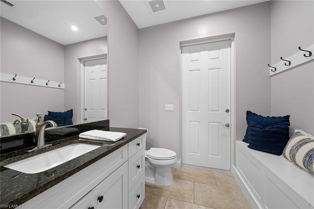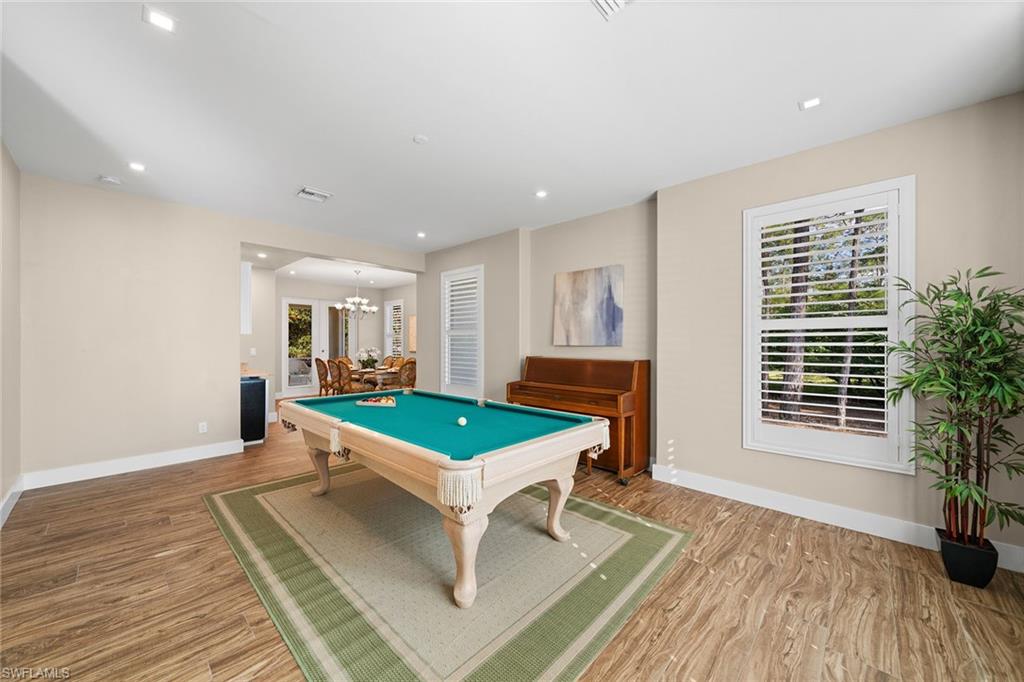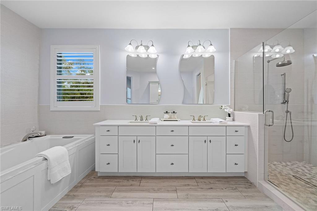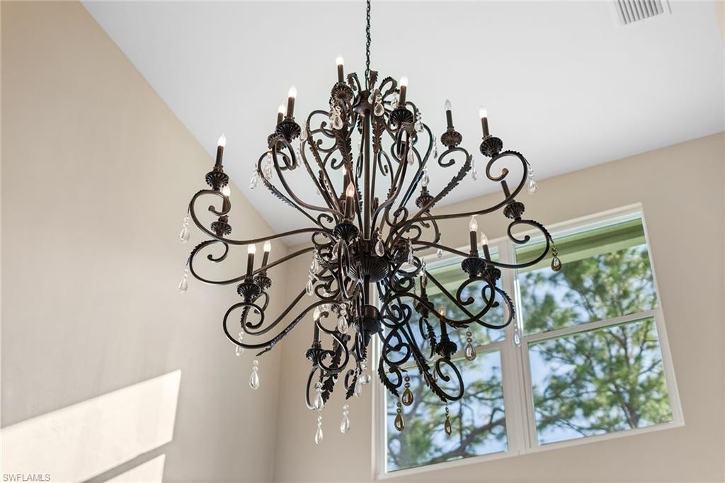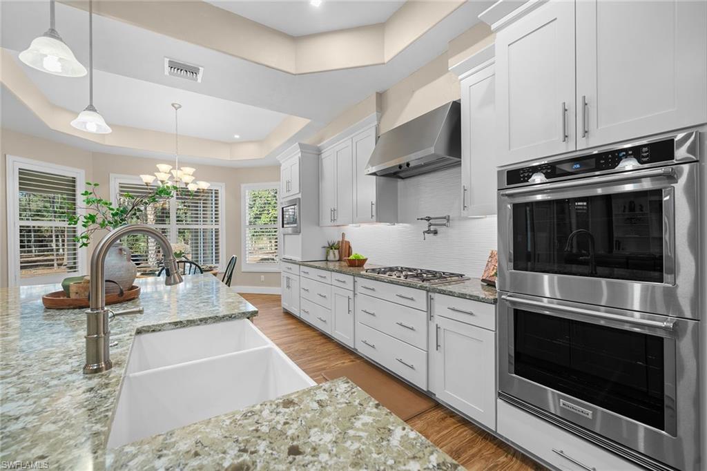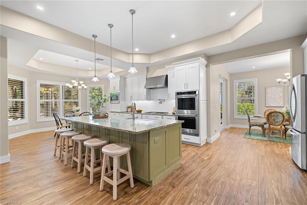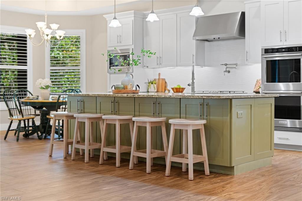This 4,200-square-foot estate home, completed in 2018, is positioned on 2.73 acres in sought-after Weber Woods. Built with an unwavering focus on structural integrity, featuring poured concrete throughout—including the staircases and walls between both stories—this residence was designed for durability, energy efficiency and refined living. Foam insulation, impact-resistant doors and windows and rooftop solar panels significantly minimize electric costs, only property taxes apply, and a $28 monthly electric bill. A portable whole-house generator ensures uninterrupted power, while an advanced ozone-enhanced water filtration system delivers exceptional water quality. Purposefully designed for grand-scale entertaining, the home seamlessly accommodates gatherings exceeding 100 guests. A 1,900-square-foot lanai offers expansive outdoor living space, and the grounds allow for generous guest parking. The driveway was professionally resealed in April 2025, underscoring the homeowners’ commitment to attentive maintenance. The chef-inspired kitchen showcases custom KitchenAid cabinetry with pullouts, drawers and a pot filler, combining form with functionality. The first-floor bedroom with en suite features a zero-threshold shower for ease and comfort. Everyday conveniences include a second-floor laundry chute and an on-demand hot water system. Additional features include a meticulously installed septic system. Merging architectural precision with eco-forward enhancements, this residence offers an elevated lifestyle in one of Naples’ premier residential communities.