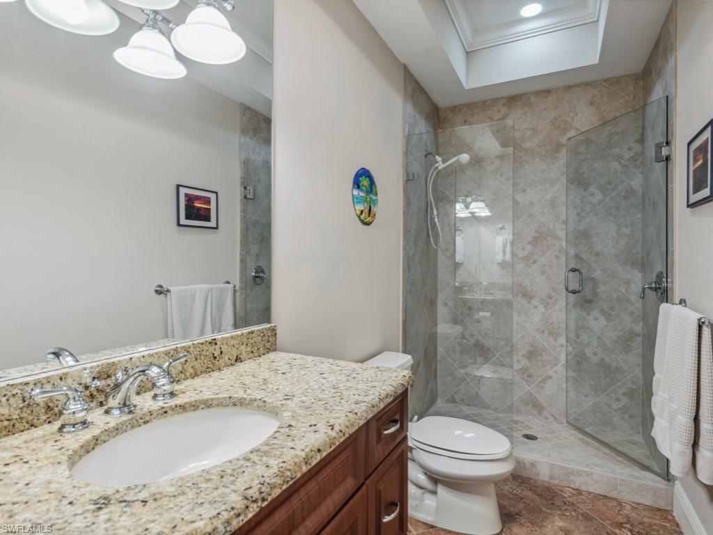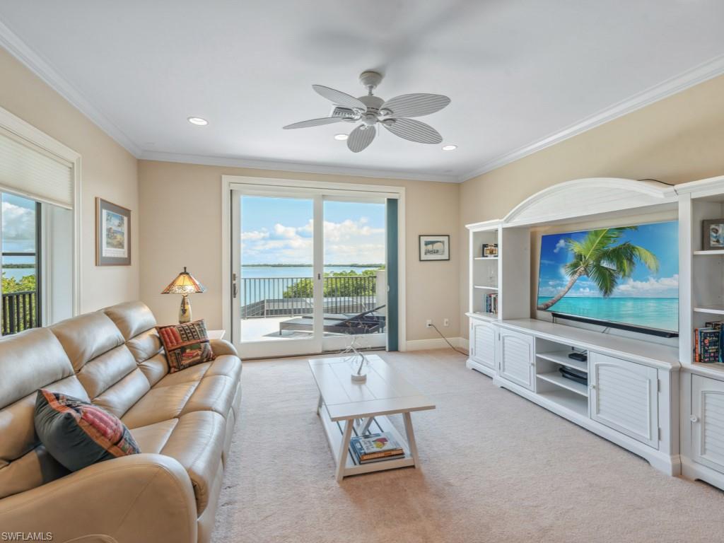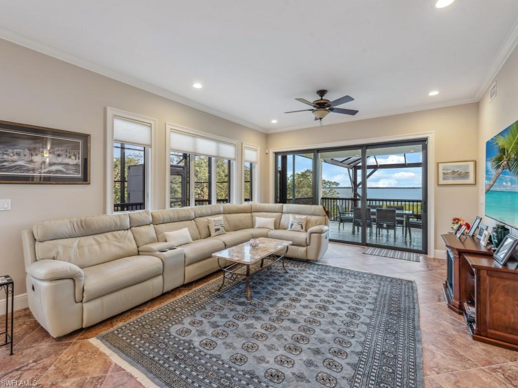 Wake up to incredible views of Barfield Bay in this gorgeous 4 bedroom + den, 3 bathroom home located in the prestigious estates of Marco Island. The exceptional views continue from the living room, den and balconies. Luxurious appointments are found throughout the home with a gourmet kitchen, volume and tray ceilings, crown molding, wainscoting, tile and hardwood flooring and pool & spa with a cascading waterfall. There’s plenty of room for all your toys in the 5 car garage with epoxy flooring and an additional huge storage area adjacent to the garage. For convenience, take the elevator from the ground floor to the main living level. Outside, the yard is fully fenced for pets, has leaf guard gutters and is protected with a mosquito nix control system. Landscape lighting provides beautiful evening ambiance. Don’t miss out on this exceptional home – schedule your private showing today!