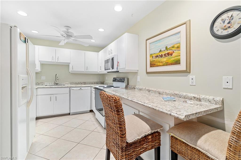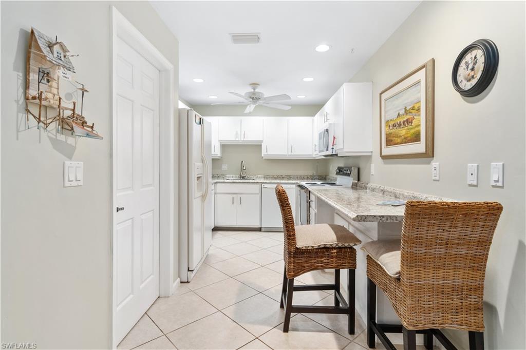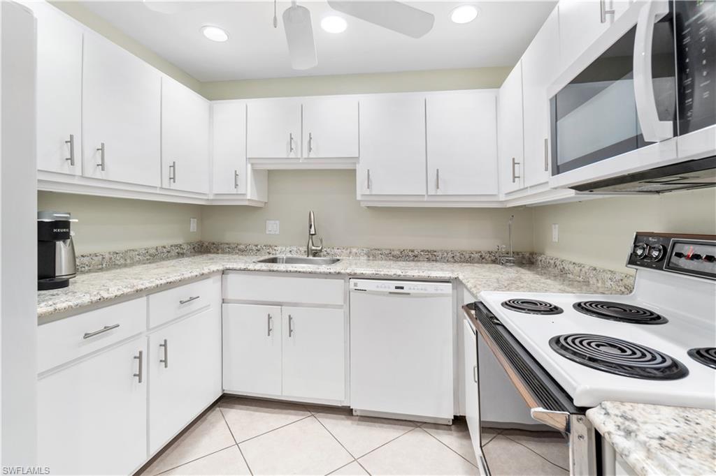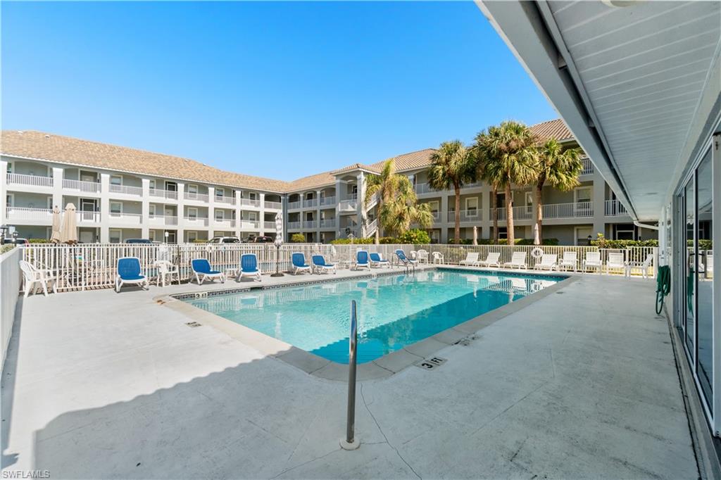 Charming 3-Bedroom Condo in Naples. Embrace the coastal lifestyle in this beautifully appointed second-floor condo located in the sought-after area West of Highway 41. This 3-bedroom, 2-bathroom gem features 1,356 square feet of elegant living space, designed to capitalize on natural light and modern comfort. Enjoy the airy, open feel created by soaring vaulted ceilings in the living and dining areas. The home offers a serene master suite with a spacious closet and en-suite bathroom. Additional two bedrooms allow for your guests to visit in comfort. The kitchen provides ample counter space for meal preparation and is perfect for entertaining guests. You can relax on your private Lanai overlooking the well-maintained community grounds, ideal for morning coffee or evening relaxation. Some Modern conveniences of this condo are the in-unit laundry, additional storage for bikes and assigned covered parking. This Prime location is conveniently located close to the beach, shopping, dining, entertainment options, and major highways for a comfortable commute. This Community offers a range of amenities, including a well-maintained pool and community room for your enjoyment. Don’t miss this opportunity to own a piece of paradise in a prime Naples location. Schedule your showing today and experience the best of comfortable, stylish living