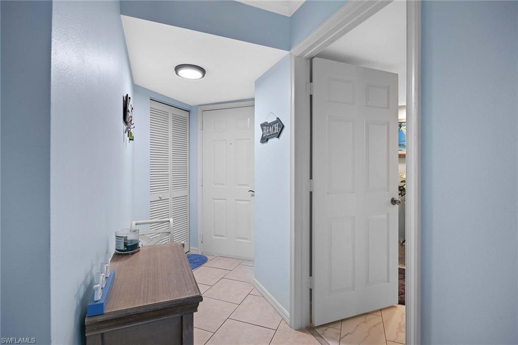 Location, location, location. Fresh and coastal, this two-bedroom, two-bath second-floor condominium in Sanctuary at Imperial River features an open kitchen, a split bedroom floorplan, a screened balcony with a privacy shade, and an INCLUDED 1-CAR GARAGE, which is rare! Updates in 2023 include a new air conditioner, new water heater, new washer, new stove, new refrigerator, new blinds and new ceramic floors. In 2022, the unit received new carpet, light fixtures, and fresh paint on the ceilings, walls, crown molding and closets, along with bath upgrades including a new shower and two comfort-height toilets with soft-close lids. Additional updates include a new disposal and smoke detectors. Conveniently off U.S. 41, just north of Bonita Beach Road, with nearby shopping, dining including Starbucks and Fresh Market just beyond the community entrance, and the Bonita Bay Promenade. The Imperial River boat ramp is one block away, and Bonita Beach Park and beach access are just 3.4 miles away. The building’s roof was replaced in 2020. Community amenities include a gated entrance, clubhouse, heated pool, spa, fitness center, tennis court, racquetball, pickleball, fenced play area, barbecue and picnic area, and more.