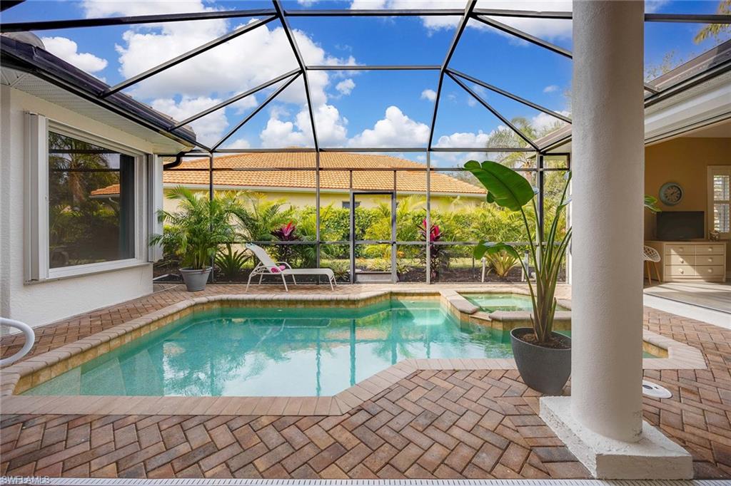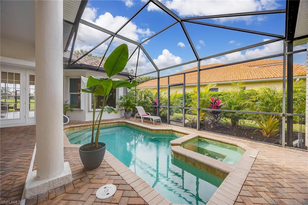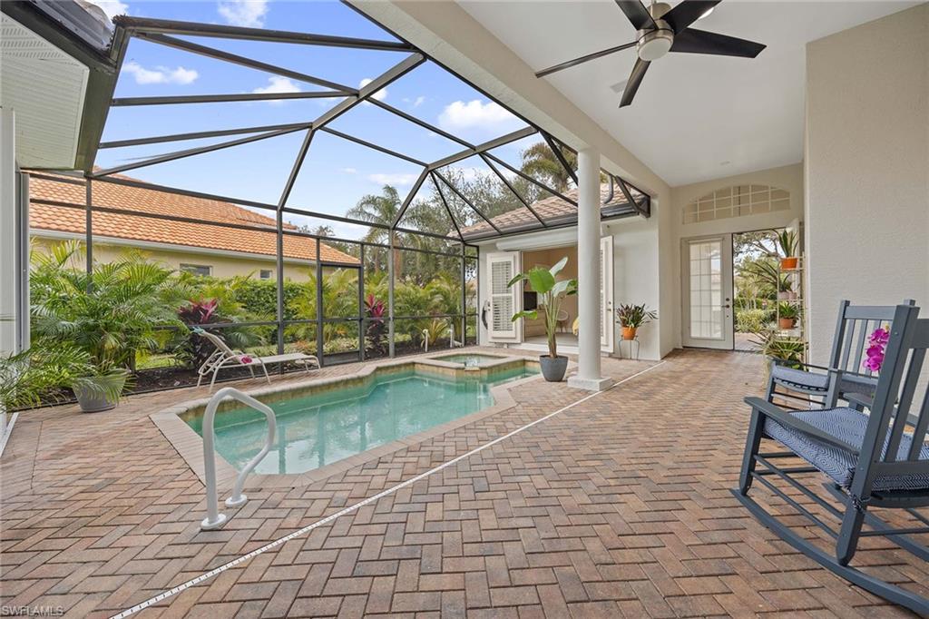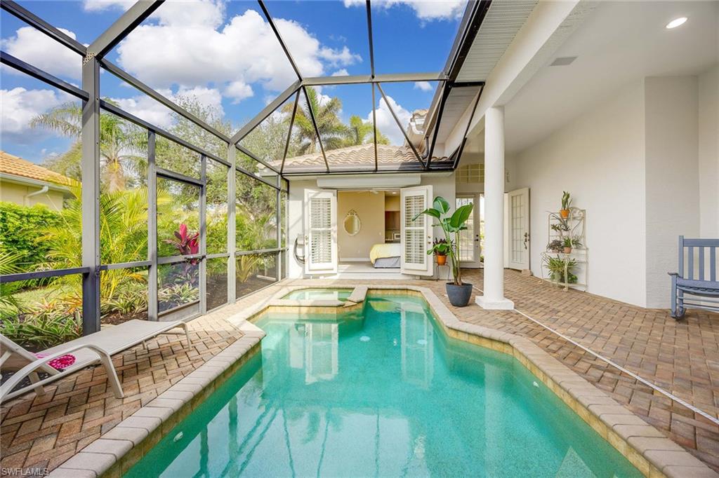 Why is this home with a detached guest cabana so remarkable? It features a 2024 roof with an extended warranty, new HVAC system, water heater, pool equipment, kitchen appliances, interior and exterior paint, premium landscaping upgrades—all completed in 2025—and immediate access to the Players Club. Uncover this impeccable, turnkey-furnished poolside retreat in the esteemed Masters Reserve neighborhood of Lely Resort. This pristine three-bedroom, three-bath residence spans nearly 2,000 square feet of carefully curated living space. Equipped with electric roll-down and accordion shutters for enhanced security, the main home includes two bedrooms, a flexible dining room, and two full bathrooms, while the detached guest cabana provides a private third bedroom and bath, perfect for guests or multi-functional use. The interior features an airy open-concept design with hard-surface flooring throughout all living areas. The luminous living room, accented by French doors to a charming courtyard and sliding glass doors to the rear lanai, creates a seamless indoor-outdoor flow. The chef’s kitchen showcases wooden cabinetry, a walk-in pantry, new stainless steel appliances, and a convenient breakfast bar. The owner’s suite offers lanai access, dual walk-in closets, new laminate flooring, and a refined ensuite bath with a soaking tub, walk-in shower, and private water closet. The secluded detached guest cabana elevates the experience with a luxurious bedroom, bath, and kitchenette, ideal as a guest suite, home office, art studio, or fitness space. Outdoor living shines with two lanais boasting sweeping golf course views, a heated pool and spa, and southwest exposure for abundant sunshine. The lanai also features a screened enclosure and covered seating area, ideal for entertaining or relaxing in privacy. On a quiet mature landscaped street, this home provides access to Lely Resort’s world-class amenities, including two public golf courses and The Player’s Club. This award-winning club offers resort-style pools, fine dining, tiki bar and grill, fitness facilities, a spa, tennis and pickleball courts, bocce and an extensive event calendar. With its prime location near Old Naples and Marco Island, pristine beaches, shopping and dining, all with low HOA fees, this property offers the ideal blend of luxury, functionality and location. Experience the best of Southwest Florida living in this stunning home!