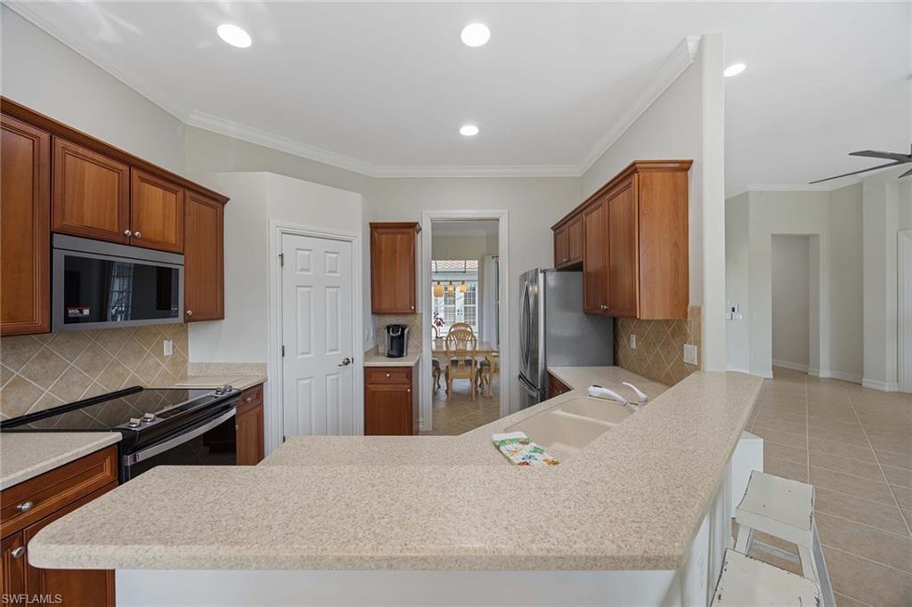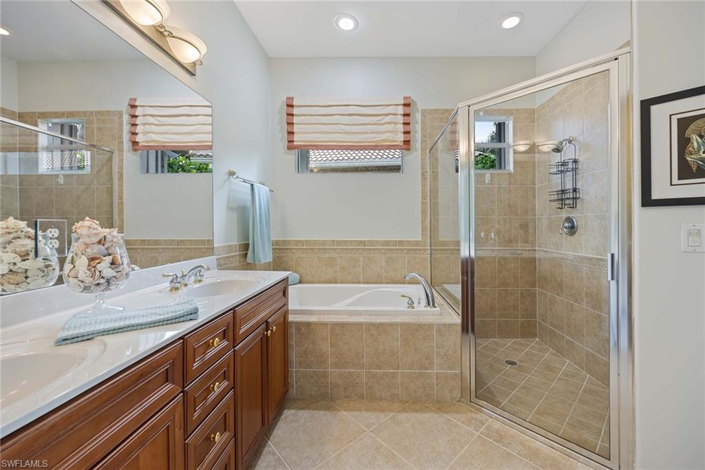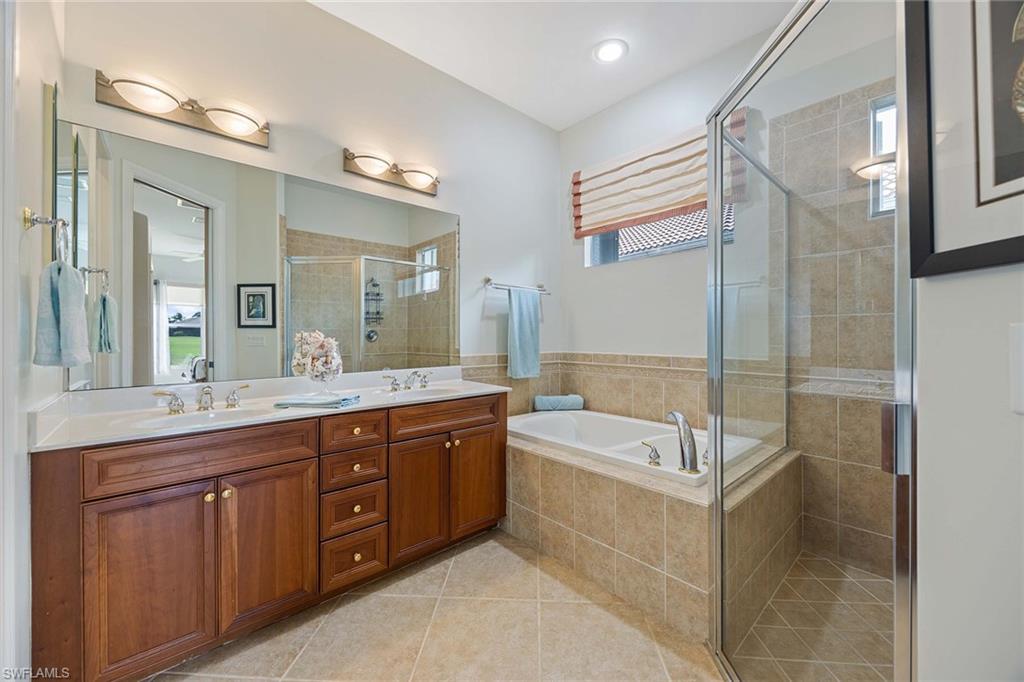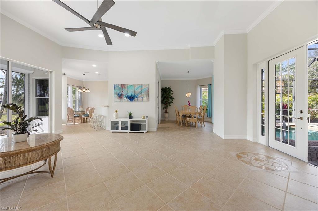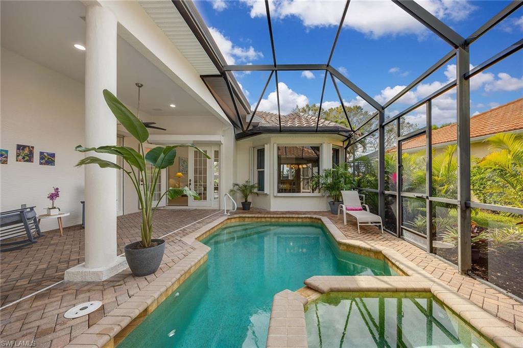 Why is this home with a detached guest cabana so remarkable? It features a 2024 roof with an extended warranty, new HVAC system, water heater, pool equipment, kitchen appliances, interior and exterior paint, premium landscaping upgrades—all completed in 2025—and immediate access to the Players Club. Uncover this impeccable, turnkey-furnished poolside retreat in the esteemed Masters Reserve neighborhood of Lely Resort. This pristine three-bedroom, three-bath residence spans nearly 2,000 square feet of carefully curated living space. Equipped with electric roll-down and accordion shutters for enhanced security, the main home includes two bedrooms, a flexible dining room, and two full bathrooms, while the detached guest cabana provides a private third bedroom and bath, perfect for guests or multi-functional use. The interior features an airy open-concept design with hard-surface flooring throughout all living areas. The luminous living room, accented by French doors to a charming courtyard and sliding glass doors to the rear lanai, creates a seamless indoor-outdoor flow. The chef’s kitchen showcases wooden cabinetry, a walk-in pantry, new stainless steel appliances, and a convenient breakfast bar. The owner’s suite offers lanai access, dual walk-in closets, new laminate flooring, and a refined ensuite bath with a soaking tub, walk-in shower, and private water closet. The secluded detached guest cabana elevates the experience with a luxurious bedroom, bath, and kitchenette, ideal as a guest suite, home office, art studio, or fitness space. Outdoor living shines with two lanais boasting sweeping golf course views, a heated pool and spa, and southwest exposure for abundant sunshine. The lanai also features a screened enclosure and covered seating area, ideal for entertaining or relaxing in privacy. On a quiet mature landscaped street, this home provides access to Lely Resort’s world-class amenities, including two public golf courses and The Player’s Club. This award-winning club offers resort-style pools, fine dining, tiki bar and grill, fitness facilities, a spa, tennis and pickleball courts, bocce and an extensive event calendar. With its prime location near Old Naples and Marco Island, pristine beaches, shopping and dining, all with low HOA fees, this property offers the ideal blend of luxury, functionality and location. Experience the best of Southwest Florida living in this stunning home!