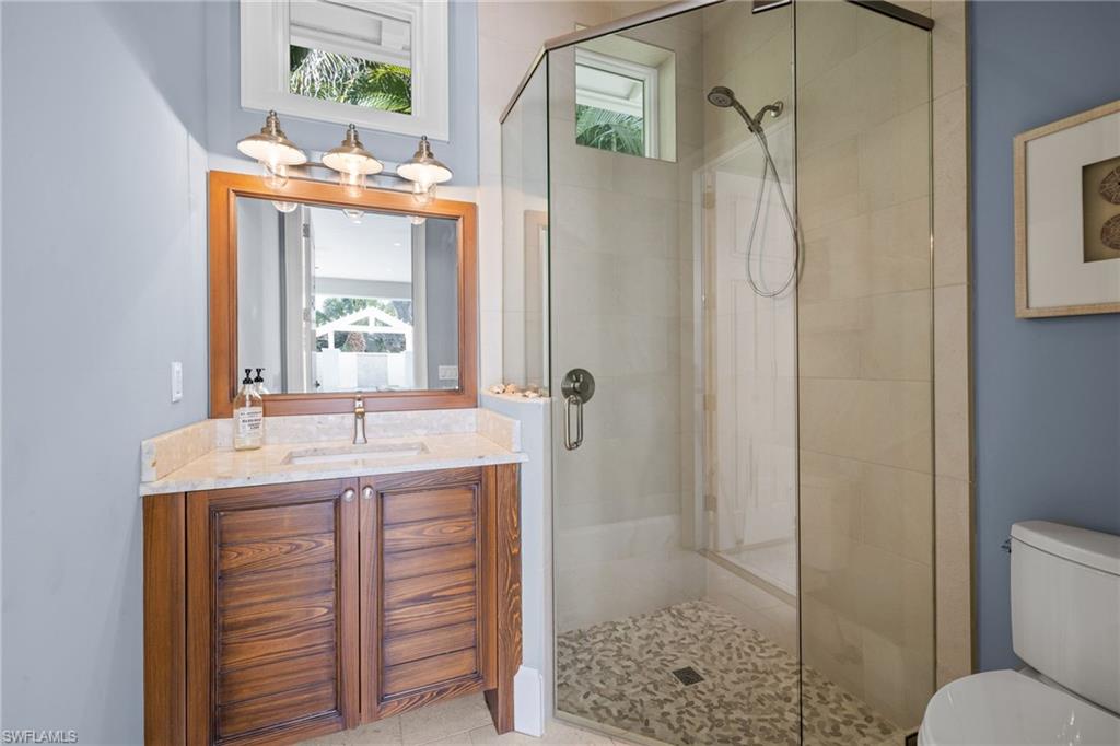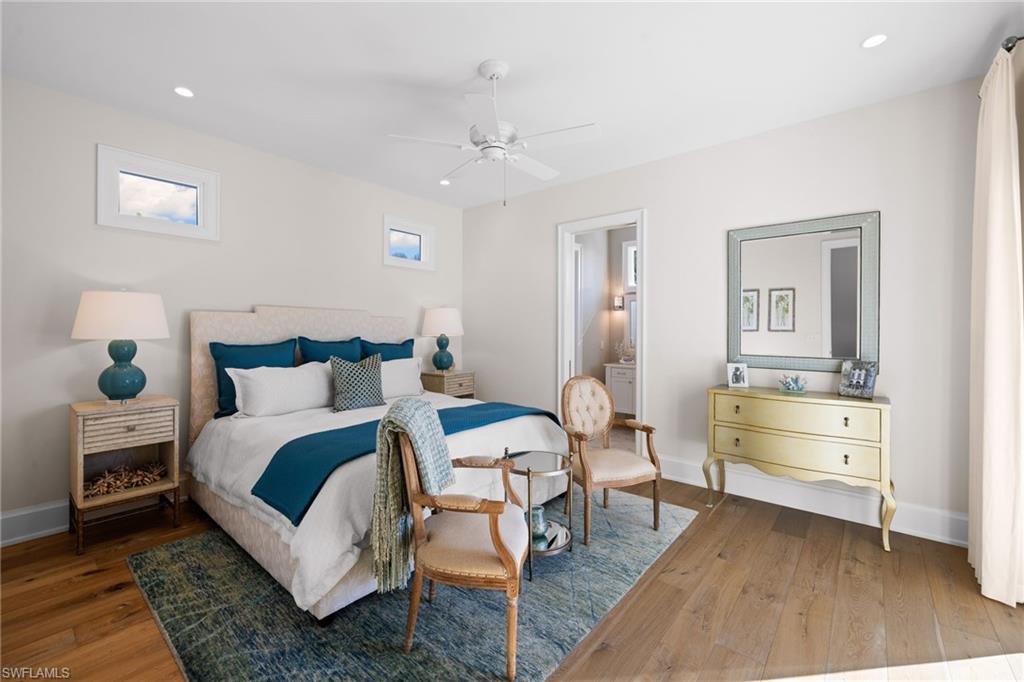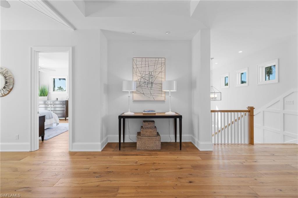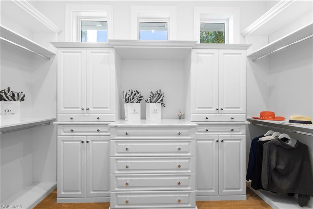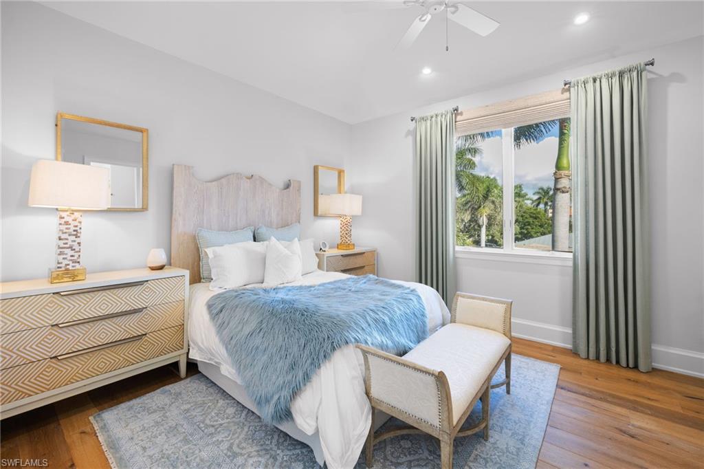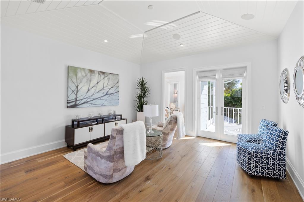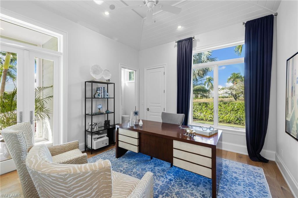 Experience the finest of Coastal Contemporary living in this exquisite residence, nestled on one of the most tranquil and sought-after streets in the Moorings. Impeccably designed, this like-new masterpiece exudes sophistication and elegance, having been meticulously maintained and rarely lived in, including Clive Daniel furniture. Every luxurious detail of this home has been thoughtfully designed. The bright and airy great room, complete with a fireplace and elegant smoked oak flooring, seamlessly connects to a spacious lanai that features a second fireplace, full bath, dining area, and outdoor kitchen with automated screens. Enjoy breathtaking sunsets from the sunny pool deck with Southwest exposure, a pergola-covered private spa, and soothing modern bowl fountains. The award-winning kitchen is a chef’s dream, boasting custom cabinetry, polished Quartzite counters, a Viking 6-burner gas range with a second wall oven, a Subzero paneled refrigerator, Bosch dishwasher, and a wine cooler. The primary suite, along with a den/study or potential 5th bedroom, is conveniently located on the ground floor, while the upper level features three spacious ensuite bedrooms and a cozy TV gathering area. The floor plan allows for installation of an elevator for added convenience. The optional Moorings membership private beach club is just minutes away, embodying the luxurious lifestyle that Naples has to offer.