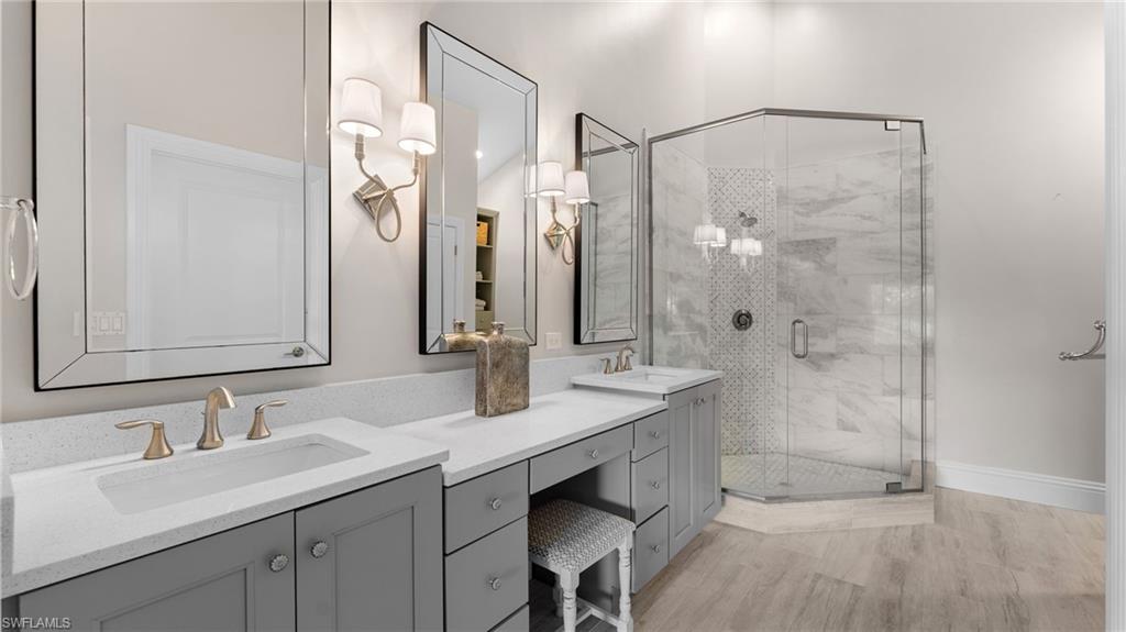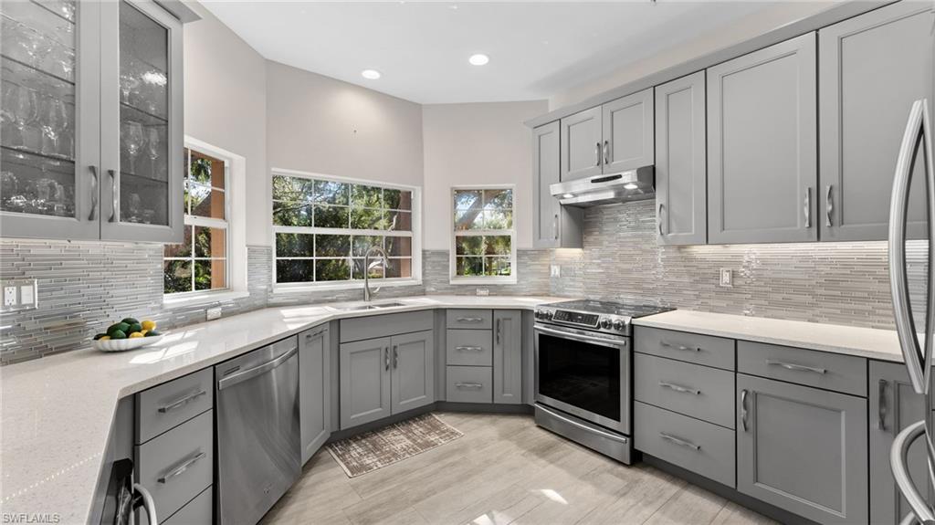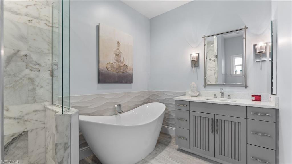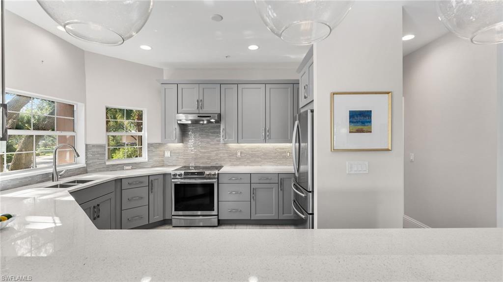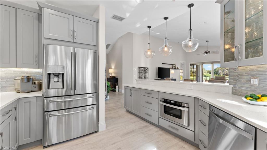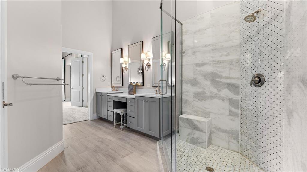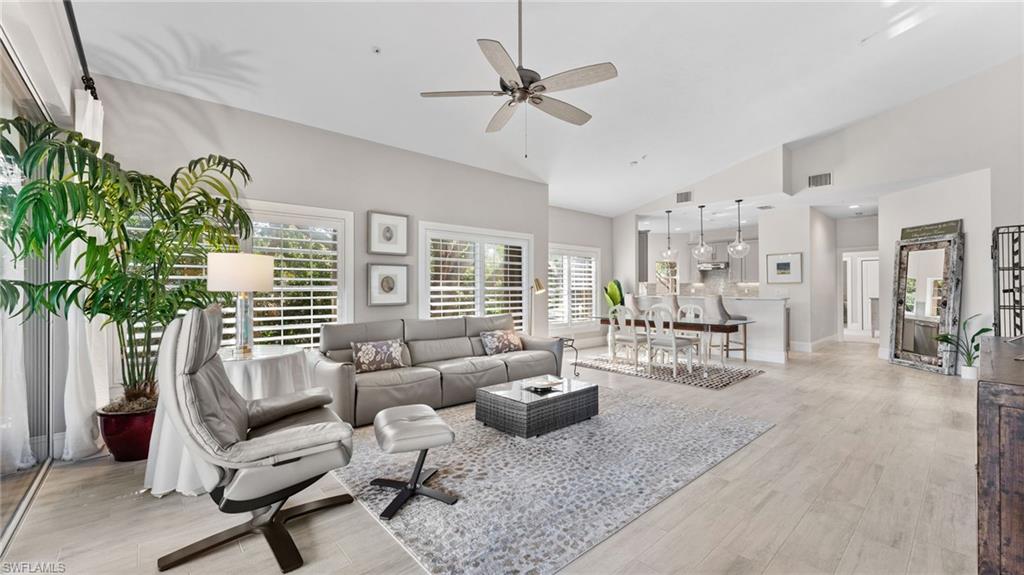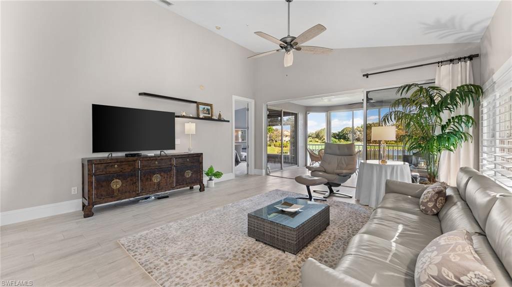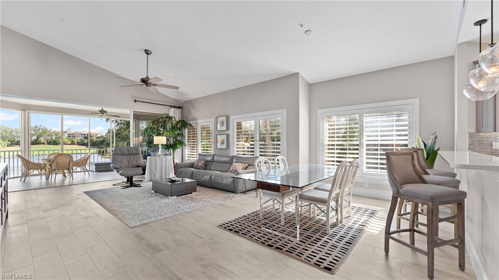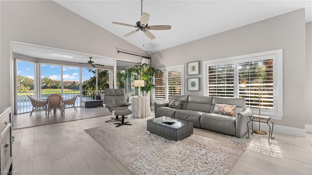 Experience luxury living at its finest in Bonita Bay where you have your own private beach shuttle and BEACH CLUB included when you own a home in Bonita Bay. This is where lifestyle and sophistication blend seamlessly. This stunning second-floor residence, with coveted Eastern exposure, spans 1,900 square feet of thoughtfully designed living space all just a short walk or bike ride from the Bonita Bay Club! This home features an airy open floor plan with soaring vaulted ceilings and a serene design. The soothing tones perfectly complement the coastal wood plank tile flooring, creating a timeless yet inviting ambiance. The chef’s kitchen is a masterpiece of form and function, boasting grey cabinetry, pristine white marble quartz countertops, premium stainless steel appliances, and a convenient breakfast bar that flows effortlessly into a spacious dining area ideal for entertaining. The primary suite and two private guest suites provide comfort and tranquility, making every room a personal retreat. Step onto the expansive enclosed lanai to take in breathtaking panoramic views of the sparkling lake bathed in morning sunlight. Bonita Bay residents enjoy an unparalleled lifestyle with 12 miles of scenic walking trails, three parks, and recreational amenities, including canoeing, kayaking, tennis, pickleball, and bocce. Delight in the exclusive perks of a private beach park and on-site marina. For those seeking even more, membership in the Bonita Bay Country Club offers access to five championship golf courses, tennis, pickleball, croquet, fine dining, a state-of-the-art fitness center, and a rejuvenating spa. This is more than just a home, it’s an invitation to embrace the Bonita Bay way of life. Don’t miss this exceptional opportunity!