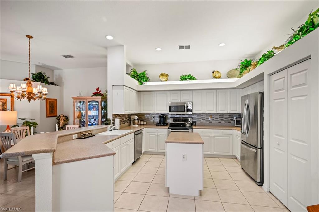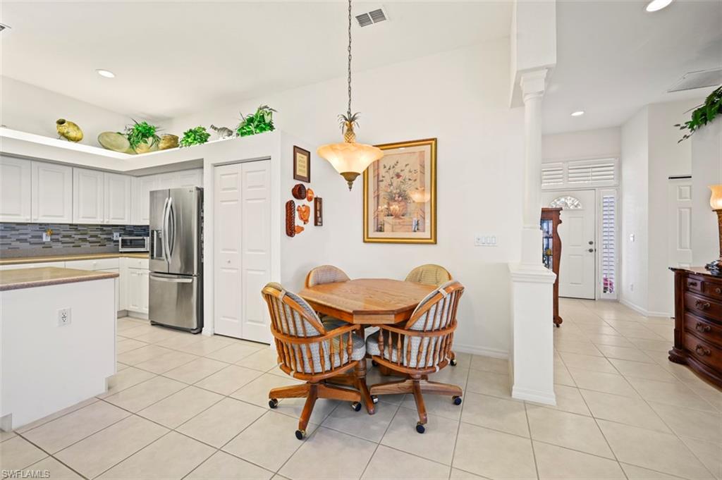 STUNNING ATTACHED VILLA IN LIGHTHOUSE BAY Welcome to this 3-bedroom, 2-bathroom villa with an attached 2-car garage, offering the perfect blend of comfort, style, and functionality in the heart of Lighthouse Bay. Bright & Open Design. The villa’s open floor plan is ideal for entertaining family and friends, with an abundance of windows that fill the space with natural light. The kitchen, living, and dining areas create a bright and inviting atmosphere. Stylish Kitchen Features include Spacious layout with Corian countertops, Eye-catching backsplash, Stainless steel appliances and a versatile island offering extra storage and workspace. Luxurious Master Suite has Sliding glass door with direct access to the lanai. En-suite bath featuring dual sinks, a soaking tub, and a walk-in shower. Guest-Friendly Split Floor Plan. The second bedroom is situated at the front of the villa for privacy. The third bedroom offers versatility with a built-in desk and a sliding door to the lanai, making it perfect for additional guests or a home office. Step onto your spacious screened lanai to enjoy tranquil views of the lake and fountain. It’s the perfect spot for your morning coffee, evening relaxation, or soaking up the sun. Plus, take a dip in your private sparkling pool to refresh and unwind. Community roofs replaced in 2020 with durable Stone Coated Steel shingles. Resort-Style Amenities. Lighthouse Bay offers an unparalleled lifestyle with 5 pools, including a lap pool 2.5 miles of walking/jogging paths Active bocce and pickleball programs, Tennis courts with a professional instructor, Two boat houses, a fitness center, sauna, clubhouse, and library Arts & Learning Center and more! Brooks Commons Club Membership Includes a Bronze Membership offering access to a private restaurant, enrichment center, social programs, pickleball, and more. Prime Location. Conveniently located just minutes from Coconut Point Mall, dining, entertainment, SWFL International Airport, and beautiful beaches, this villa offers everything you need to embrace the Southwest Florida lifestyle. Schedule your private showing today and experience resort-style living at its finest!