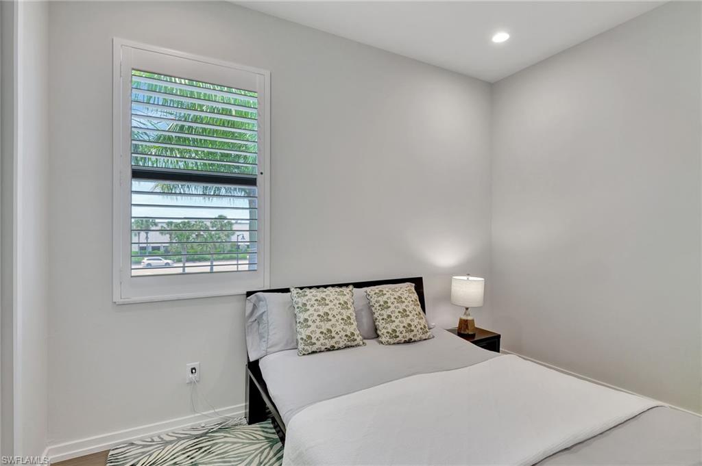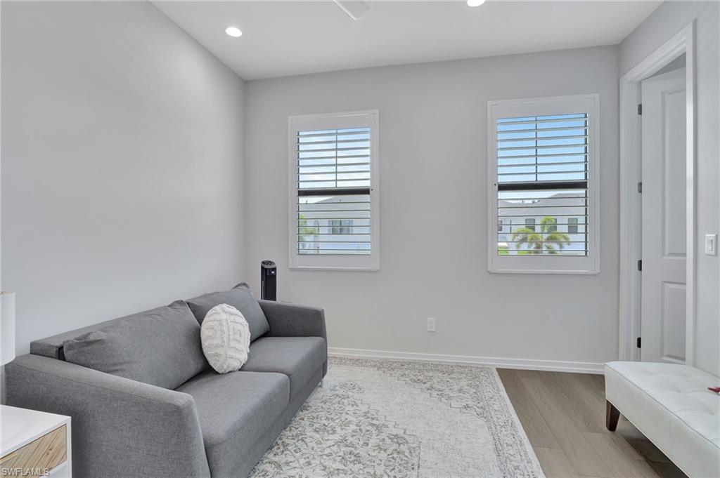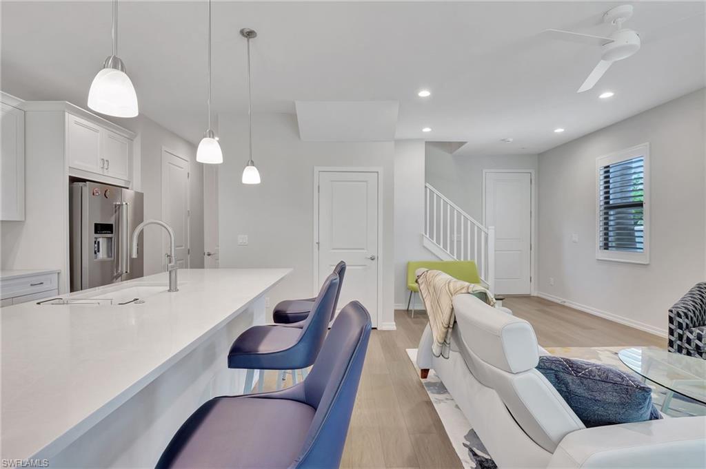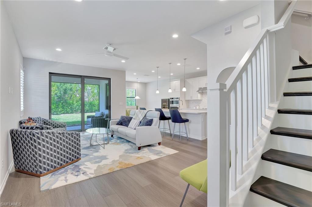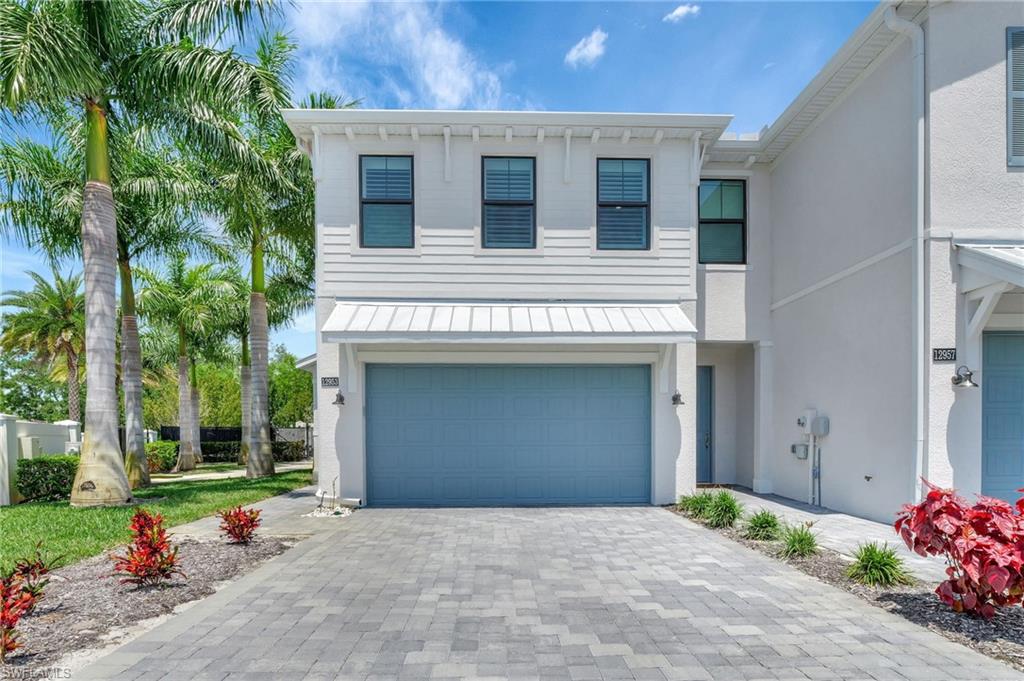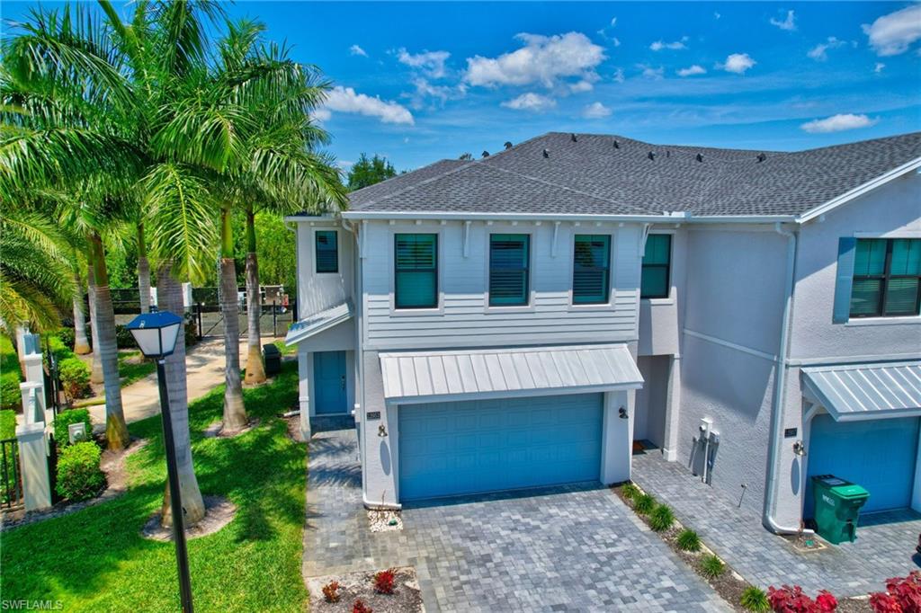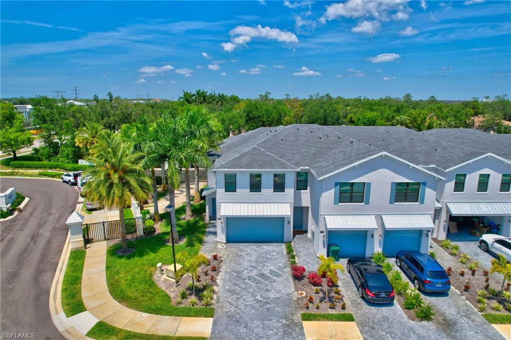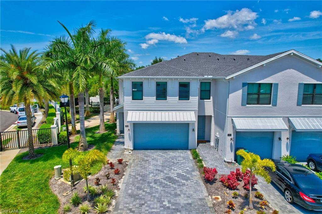 Conveniently located in the center of town off Livingston Road, Hamilton Place offers a private gated townhouse community with a residents pool. This Northern exposure end unit with additional windows gives a light and bright feeling. The all white kitchen features stainless steel appliances, upgraded quartz countertops, herringbone backsplash and plenty of seating at the kitchen island or in the breakfast nook. The great room opens onto a screened lanai with an expansive landscape view. The oversized Primary suite boasts a bath with quartz countertops, dual sinks, glass shower and a generous walk in closet. The second level is also comprised of two additional bedrooms with a guest bath, a laundry room and a loft space that can serve as an office or study. This Mangrove floorplan offers one of the coveted two car garages and an extended driveway allowing additional parking. Further upgrades include plantation shutters and luxury vinyl flooring throughout the main areas. Low HOA fees, gated privacy and a flexible rental policy make this community ideal for snowbirds, investors or first time home buyers.