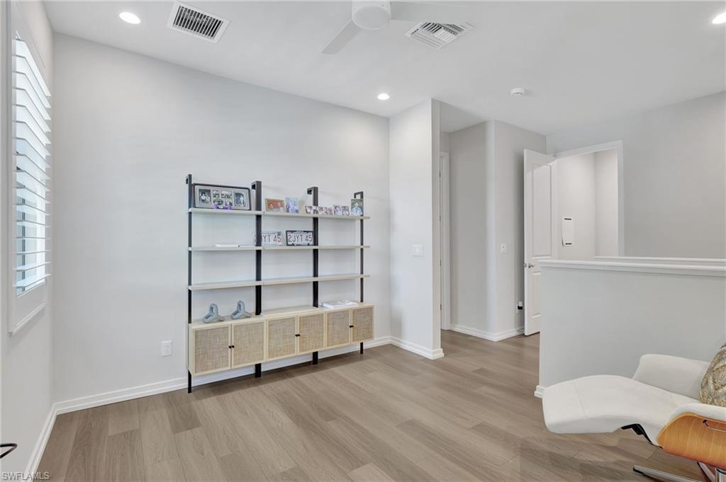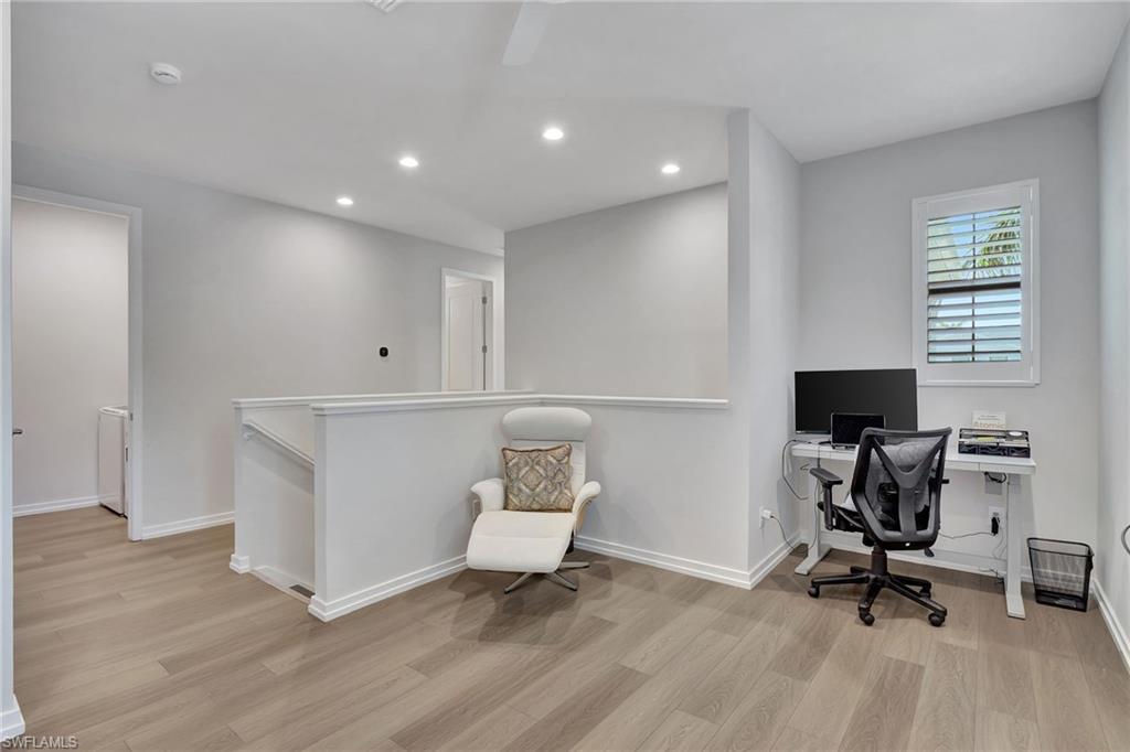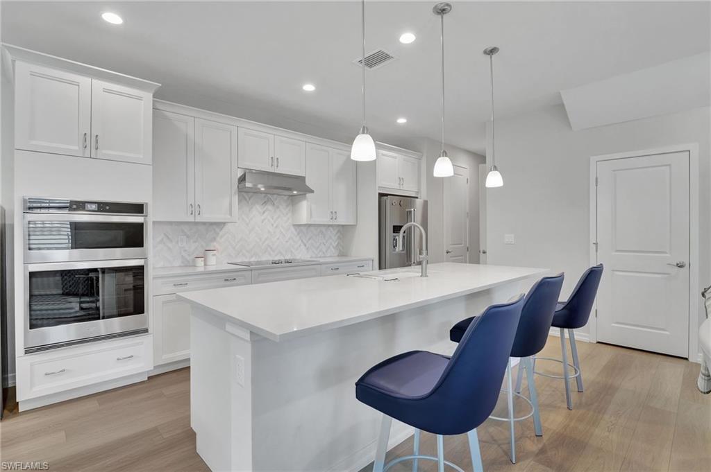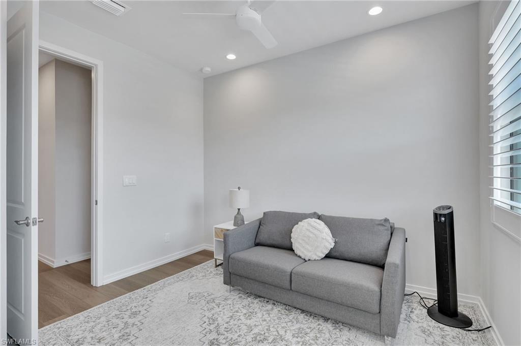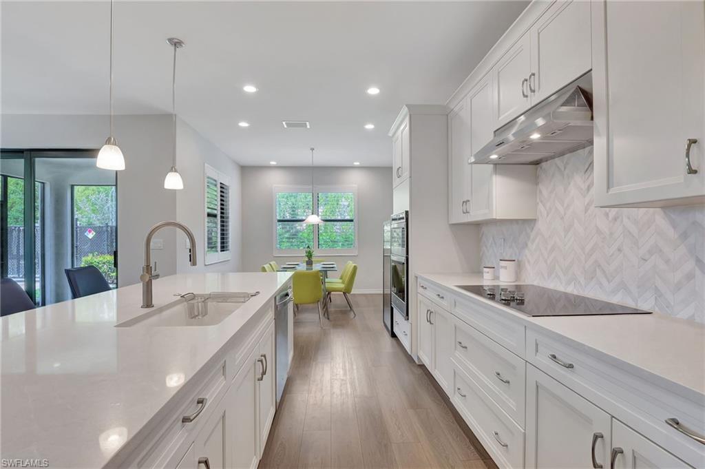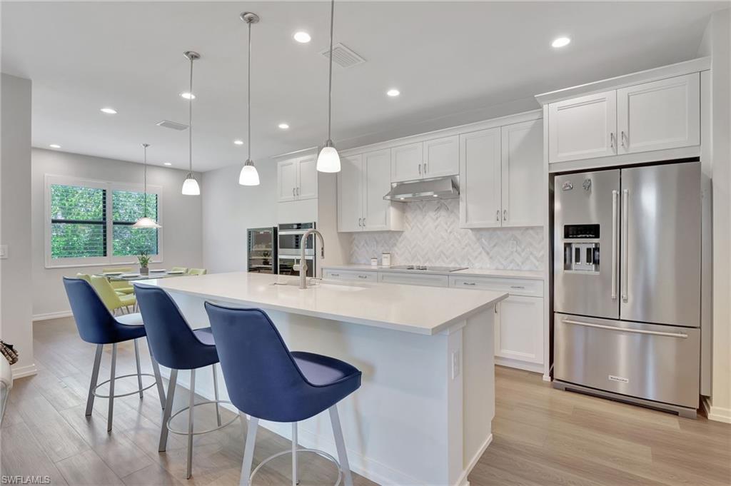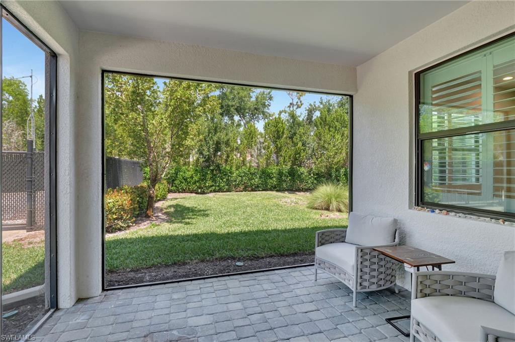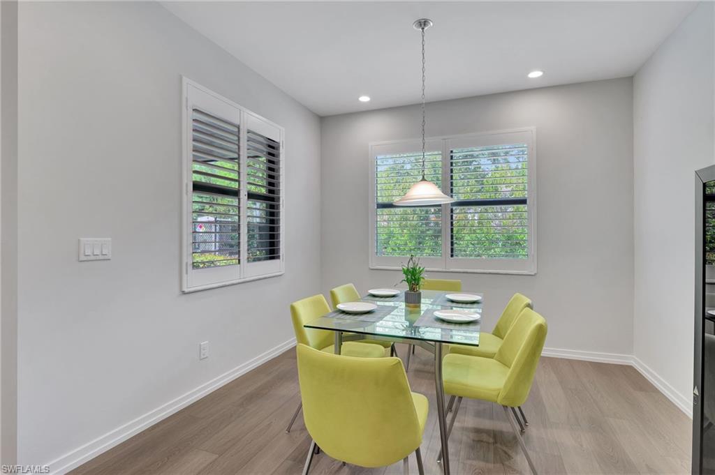 Conveniently located in the center of town off Livingston Road, Hamilton Place offers a private gated townhouse community with a residents pool. This Northern exposure end unit with additional windows gives a light and bright feeling. The all white kitchen features stainless steel appliances, upgraded quartz countertops, herringbone backsplash and plenty of seating at the kitchen island or in the breakfast nook. The great room opens onto a screened lanai with an expansive landscape view. The oversized Primary suite boasts a bath with quartz countertops, dual sinks, glass shower and a generous walk in closet. The second level is also comprised of two additional bedrooms with a guest bath, a laundry room and a loft space that can serve as an office or study. This Mangrove floorplan offers one of the coveted two car garages and an extended driveway allowing additional parking. Further upgrades include plantation shutters and luxury vinyl flooring throughout the main areas. Low HOA fees, gated privacy and a flexible rental policy make this community ideal for snowbirds, investors or first time home buyers.