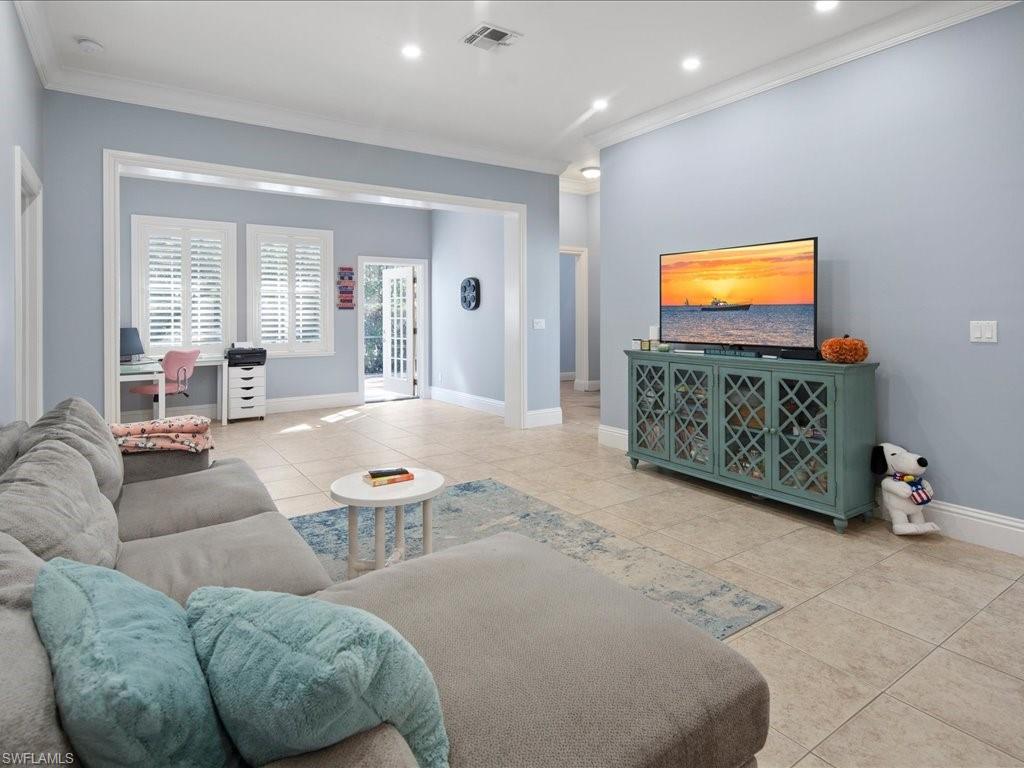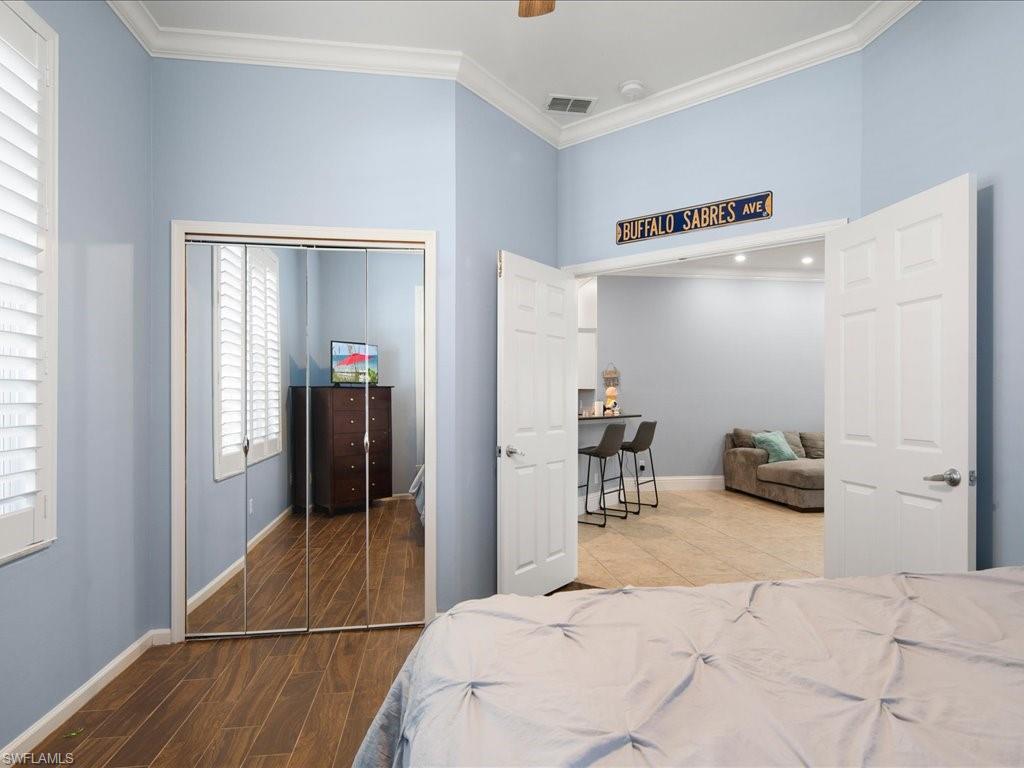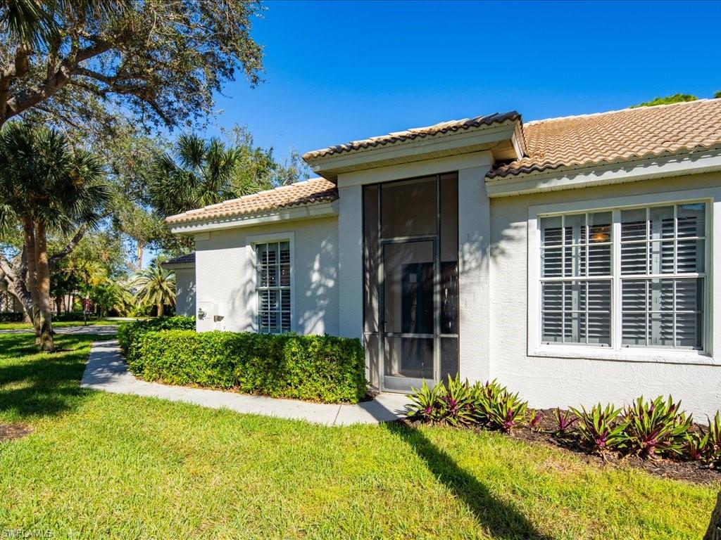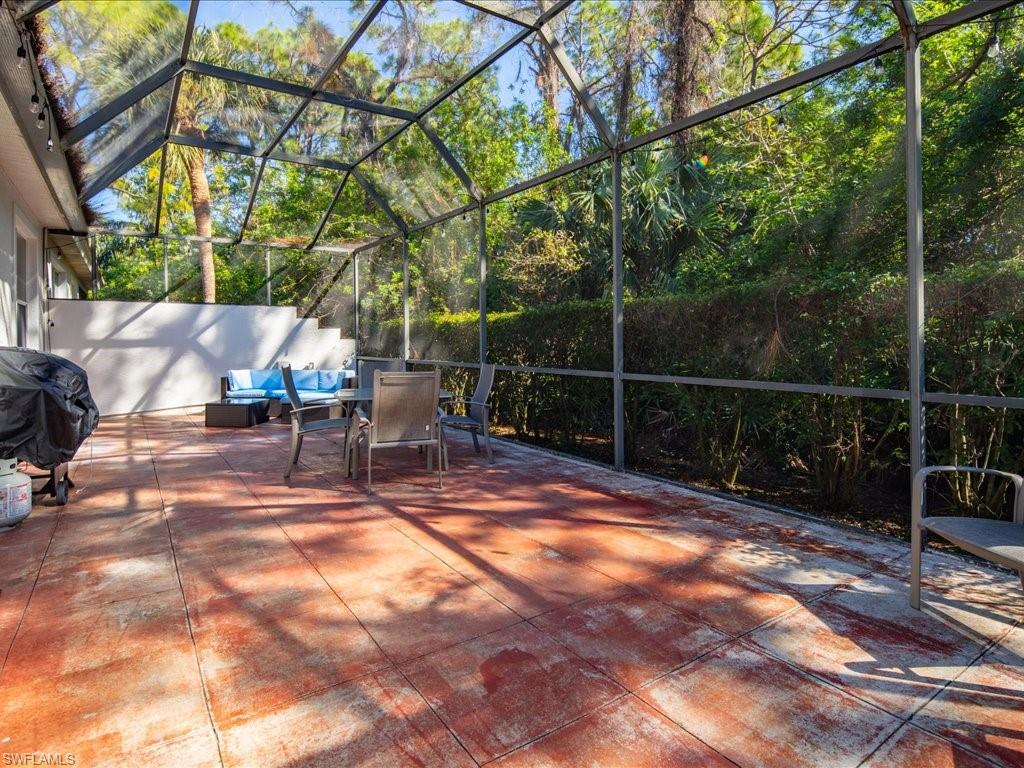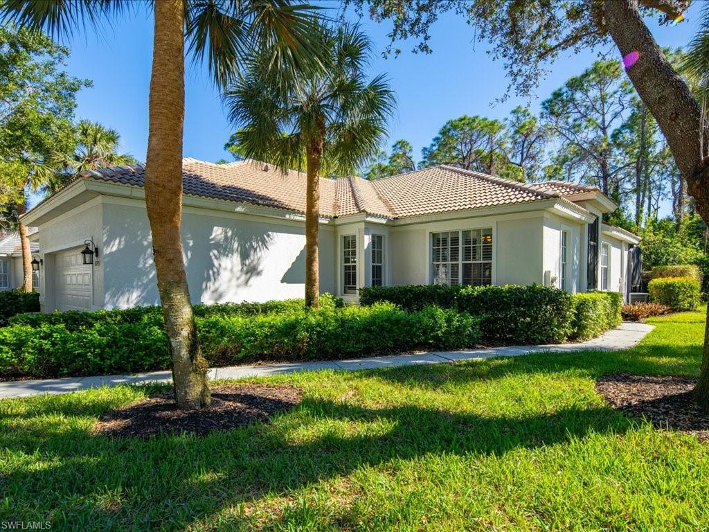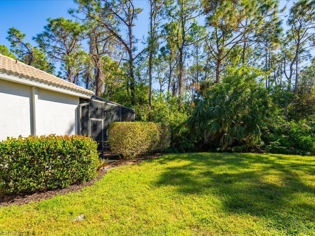 MOTIVATED SELLER - ONE OF THE LARGEST LOTS IN AUTUMN WOODS!! Why pay a premium for a retention pond view, when you can have a large wooded lot with peace and privacy?? Centrally located coastal-inspired villa with space for a private pool! Step into this beautifully designed attached villa that blends style, comfort, and convenience in the heart of Naples. Decorated in popular coastal colors of soft blues, sandy neutrals, and crisp whites, this home radiates a relaxed and inviting ambiance. The villa features a spacious open floor plan, ideal for entertaining and everyday living. At the heart of the home is a large, updated kitchen with white shaker cabinets, granite countertops, stainless steel appliances, an island perfect for meal prep, and bar seating for casual dining. The kitchen flows seamlessly into the dining and living areas, creating a bright and airy space filled with natural light. This villa lives like a single-family home, and offers 3 bedrooms, including a serene master suite with a walk-in closet and an en-suite bathroom featuring dual sinks, quartz counters, soaking tub and separate walk-in shower. In addition to the bedrooms is an open and bright bonus room (perfect as a Den or Office). Step outside to the back screened lanai, where there’s lots of privacy, and plenty of room to add your dream private pool and create your own personal oasis if desired (Villa sits on 1/3 acre lot!). Perfectly situated in a top-rated school district, this home offers a central location just minutes away from world-class shopping, dining, entertainment, and Naples' pristine Gulf beaches. Whether you're looking for a family home or a seasonal retreat, this villa checks all the boxes. With its coastal charm, modern updates, and unbeatable location, it’s a rare find in Naples. Don't miss the chance to call this home yours!