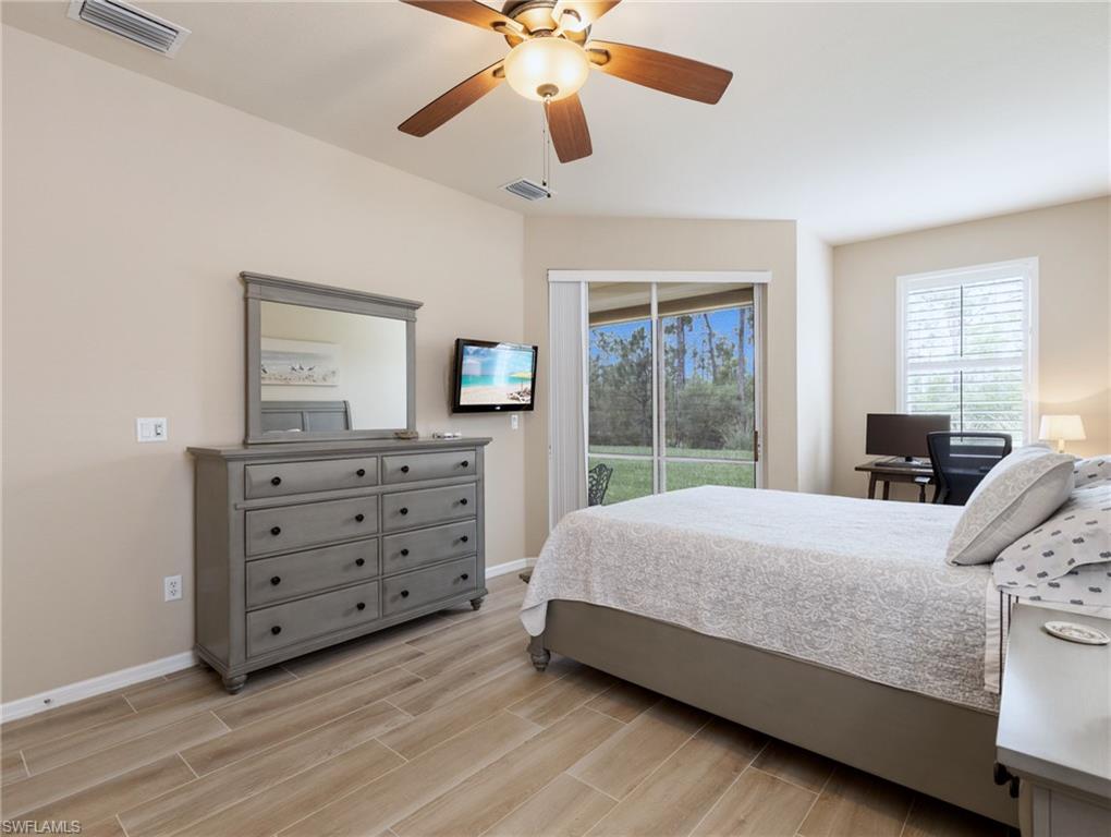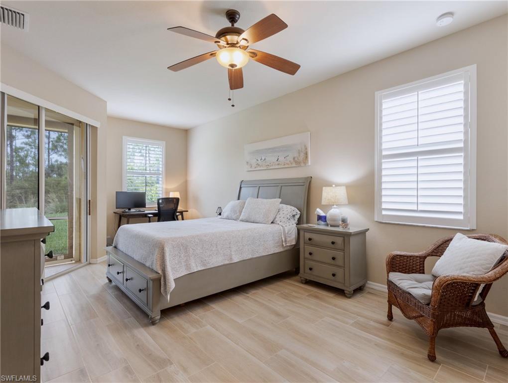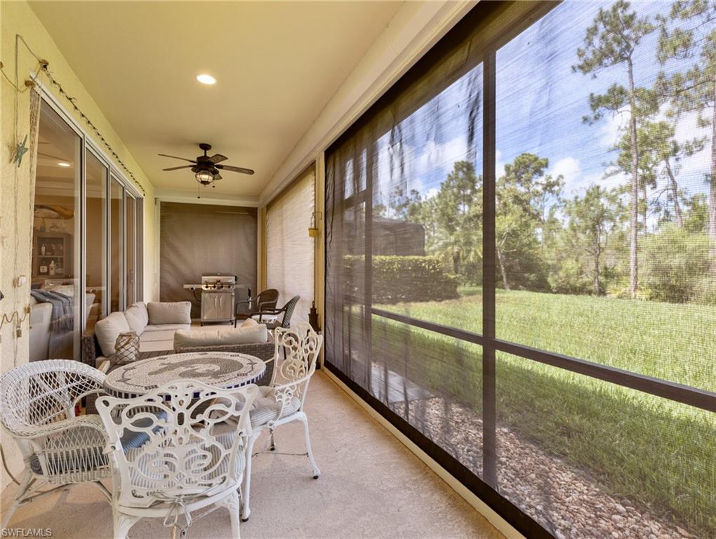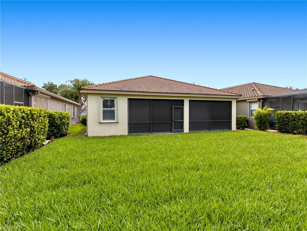 Excellent value for immaculate single family home in Estero. If you're looking for the perfect winter retreat, stop looking! This Bonita model offers a wide open great room floor plan, large backyard with privacy and Southwest facing preserve views. Offering 3 bedrooms, 2 baths, over 1800 sq. ft. of living area and a layout that is sure to impress for entertaining. Many features include upgraded flooring throughout including porcelain plank tiles in all of the bedrooms (no carpet!) Enjoy peace of mind through hurricane season with ROLL DOWN AND ACCORDION SHUTTERS and NO FLOOD ZONE! Also a Newer AC system, Plantation shutters and more!! You'll be impressed with the width of the great room area, complimented by 4 wide sliding glass doors and into a wide open lanai area with ample yard space to for a pool if you prefer. Or else take advantage of the gorgeous resort style pool that Bella Terra offers without the hassles of maintenance. Bella Terra is nestled on 999 acres with half the community dedicated to lakes/preserves and home to a variety of native Florida wildlife. Features a Resort-style Clubhouse, 24 hour fitness center, activities for all ages, resort-style pool and spa, shaded children's play area, tennis courts, pickle ball, bocce ball, sand volleyball, multi-use sports fields, tranquil butterfly garden, excercise trails and more. Call Today!