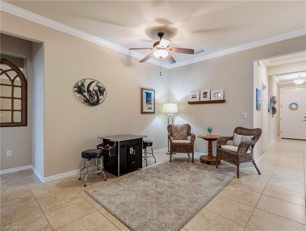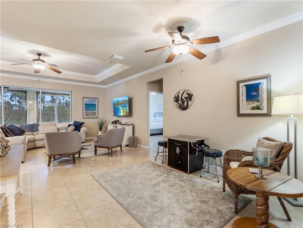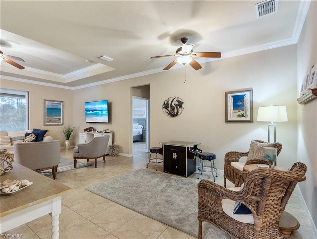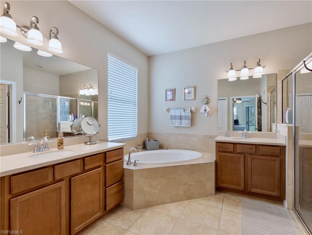 Excellent value for immaculate single family home in Estero. If you're looking for the perfect winter retreat, stop looking! This Bonita model offers a wide open great room floor plan, large backyard with privacy and Southwest facing preserve views. Offering 3 bedrooms, 2 baths, over 1800 sq. ft. of living area and a layout that is sure to impress for entertaining. Many features include upgraded flooring throughout including porcelain plank tiles in all of the bedrooms (no carpet!) Enjoy peace of mind through hurricane season with ROLL DOWN AND ACCORDION SHUTTERS and NO FLOOD ZONE! Also a Newer AC system, Plantation shutters and more!! You'll be impressed with the width of the great room area, complimented by 4 wide sliding glass doors and into a wide open lanai area with ample yard space to for a pool if you prefer. Or else take advantage of the gorgeous resort style pool that Bella Terra offers without the hassles of maintenance. Bella Terra is nestled on 999 acres with half the community dedicated to lakes/preserves and home to a variety of native Florida wildlife. Features a Resort-style Clubhouse, 24 hour fitness center, activities for all ages, resort-style pool and spa, shaded children's play area, tennis courts, pickle ball, bocce ball, sand volleyball, multi-use sports fields, tranquil butterfly garden, excercise trails and more. Call Today!