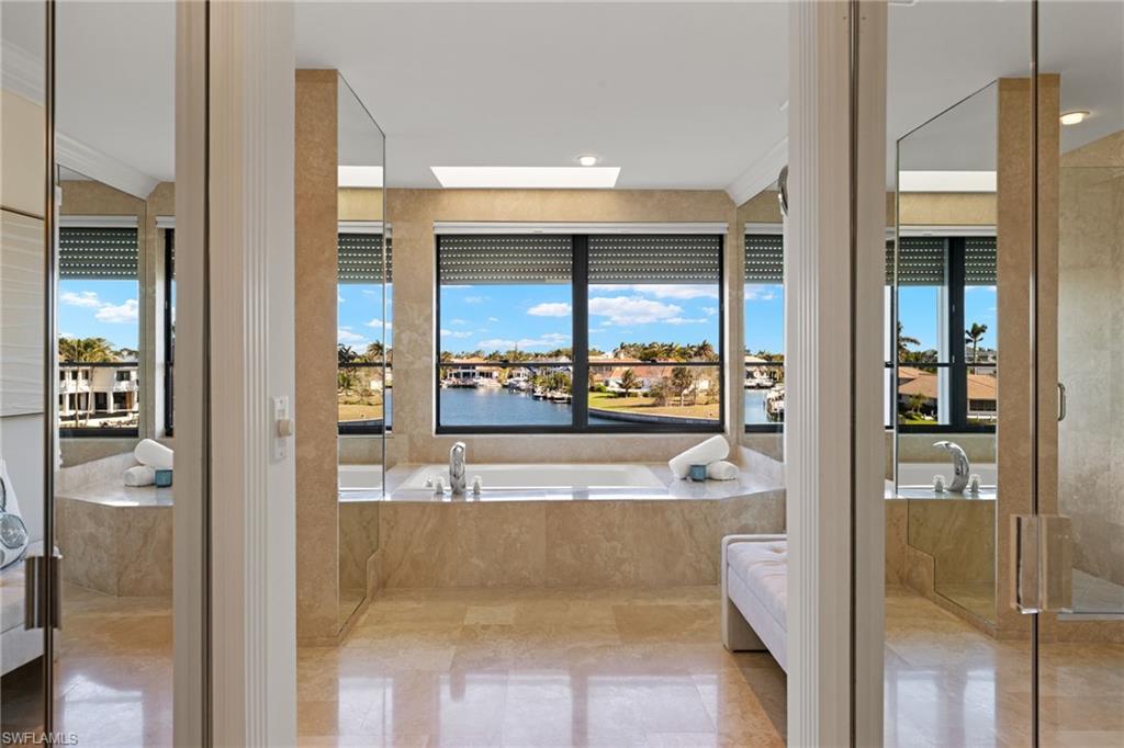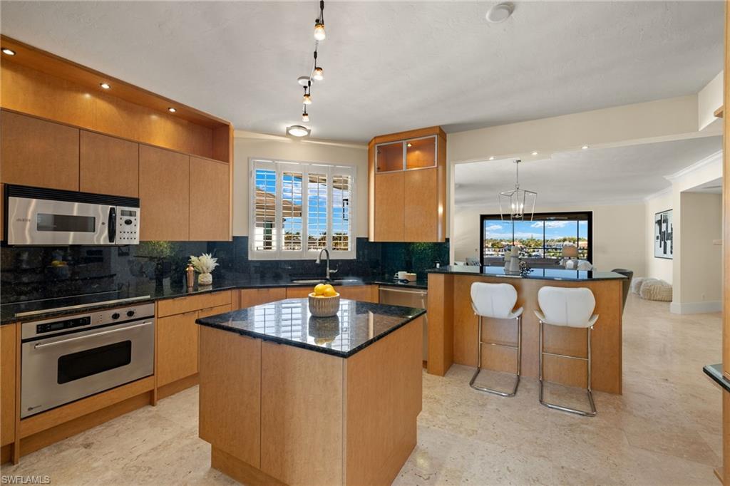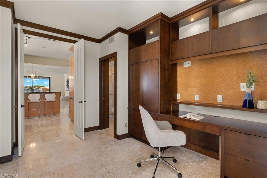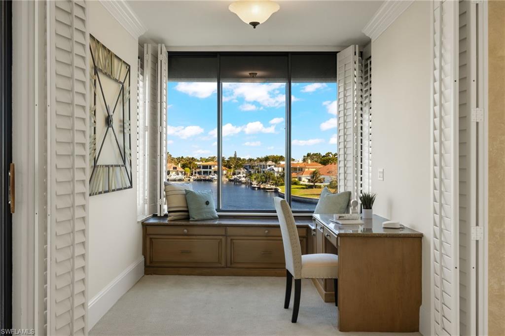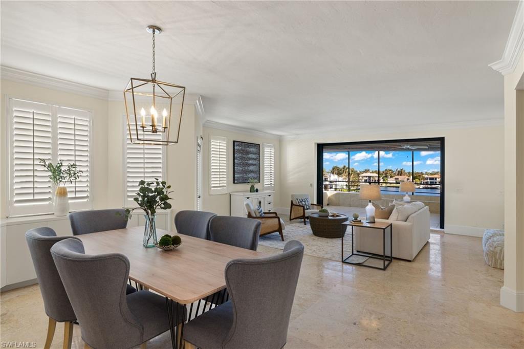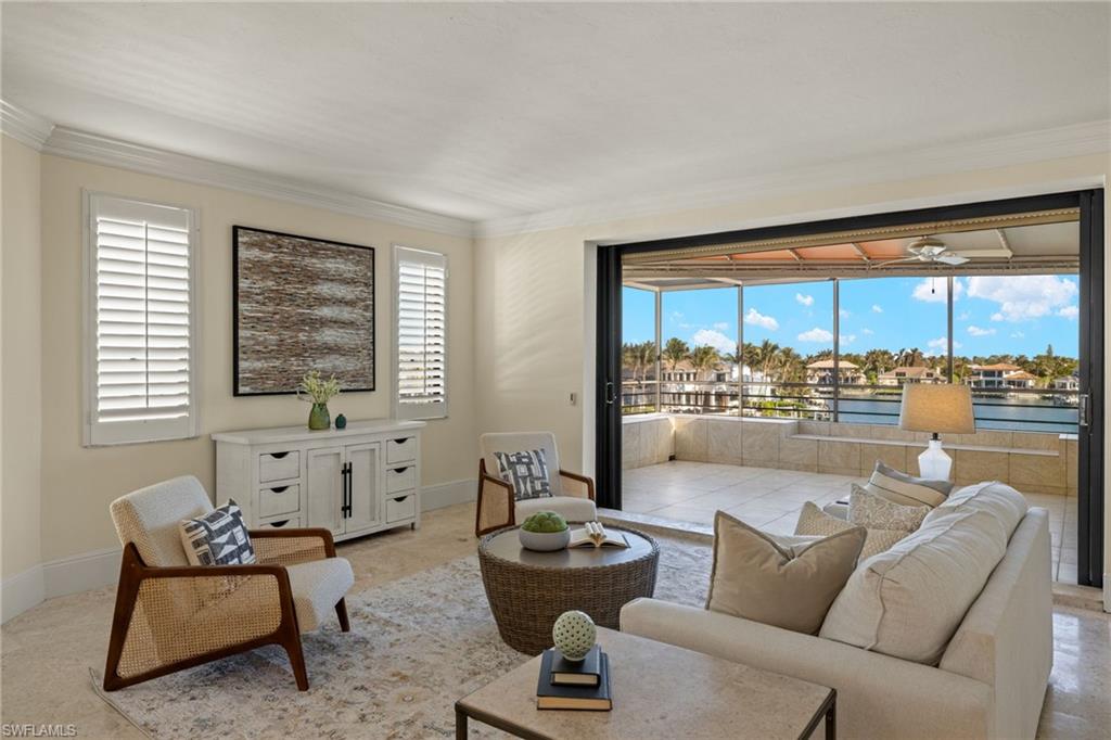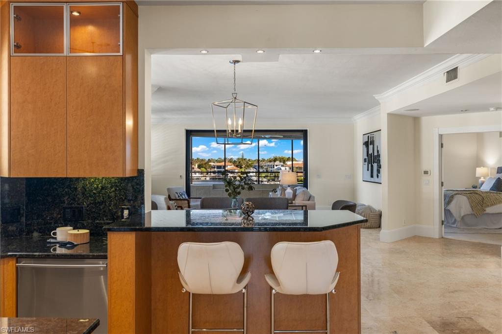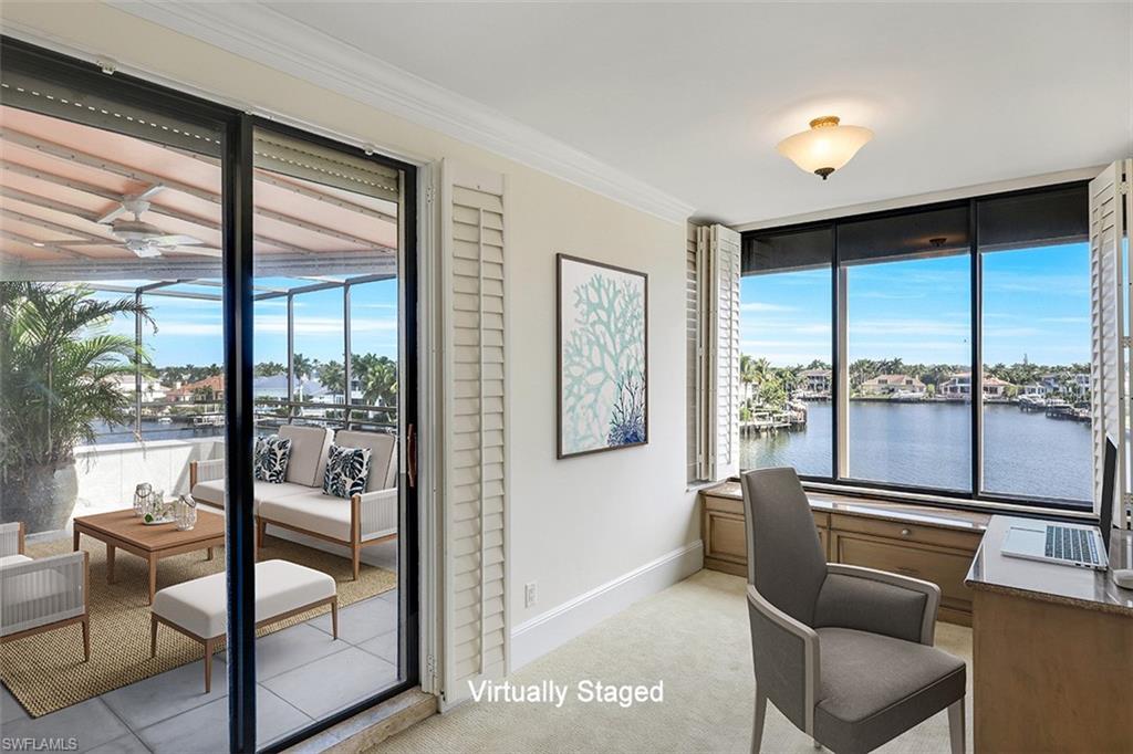 Be in the heart of all that Park Shore, Venetian Village, Gulf Shore Blvd. N. & the nearby gulf front beach have to offer you as a resident. The Ardissone community, positioned in the waters of Venetian Bay, provide enviable, direct bay water views from your condo as well as access to some of the most fabulous sunsets across the street w/paved pathway to the beach. Truly a sought-after location & lifestyle. A private elevator takes you to your unit where a walk-through foyer allows the spacious floor plan to unfold before you. Living room, dining room, kitchen, family room, 2 bedrooms +den (possible 3rd bedroom) & 3 full bathrooms, all with an abundance of natural light during the day keeping things bright & airy, while the evening & nighttime ambiance, bring a lush & enticing new meaning to the surroundings. A spacious screened-in lanai overlooking the shimmering bay water is 1 of 3 balconies. Entertaining in such an environment with these views becomes a must. The restaurants & shops of Venetian Village are just a few steps away, as is the Naples Marina where rental boats are available. You may even find a boat slip to lease. It’s all at your fingertips.