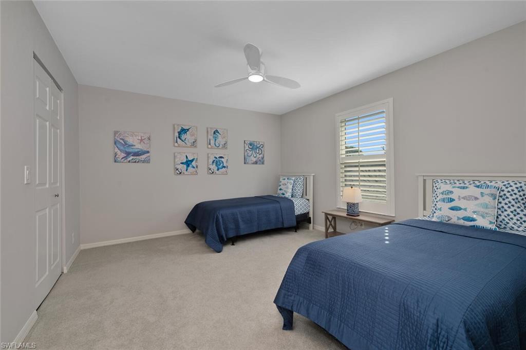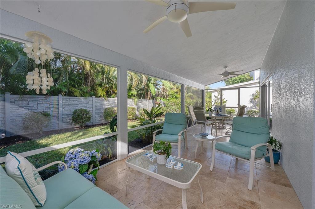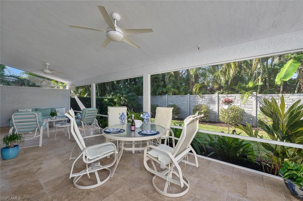 Nestled in the highly desirable Carriage Circle, this move-in-ready single-family home offers the perfect combination of comfort, style, and privacy with a liberal pet & rental policy. Located just moments from downtown shopping, dining, and the white sands of the Gulf, this home is ideally positioned for both relaxation and adventure. Boasting 3 spacious bedrooms and 2.5 bathrooms, this home features a fantastic layout that enhances both convenience and flow. The primary suite is conveniently located on the first floor, offering a private retreat, while the two guest suites upstairs provide ample space for family or visitors. Cathedral ceilings throughout the home lend an airy, open feel, complementing the well-designed floor plan. Step outside to your ideal backyard, complete with a screened lanai, perfect for enjoying Florida’s year-round pleasant weather. The property is incredibly private, creating an ideal setting for peaceful outdoor living. Additional features include new metal roof in 2017, storm protection with impact windows and doors, ensuring peace of mind during inclement weather. Residents of Carriage Circle enjoy access to a sparkling pool, relaxing spa, and clubhouse, making this the ultimate place to call home. This pristine, move-in-ready gem offers both luxury and convenience in a prime location