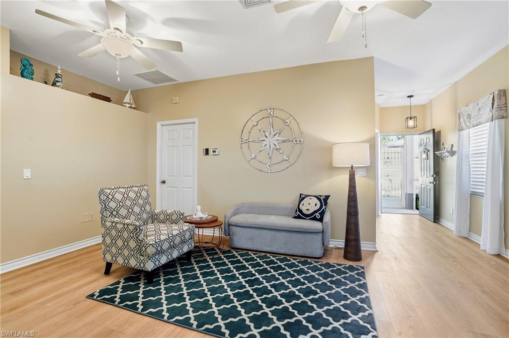 Back on the Market!!! Welcome to your slice of paradise in beautiful Estero, where comfort, style, and location come together perfectly. Step inside and feel instantly at home—sunlight pours through every room, highlighting the open-concept living area designed for both relaxation and entertaining. The custom kitchen island invites friends to gather around for morning coffee or evening cocktails, while the built-in desk nook makes working from home effortless. A bonus 240-square-foot sunroom added in 2022 extends your living space, offering the perfect spot to unwind, host guests, or enjoy dinner with a view of the Florida sunset. With insulated walls and its own portable AC unit, this bright and breezy room is enjoyable year-round. The primary suite is its own retreat, featuring a king bed, spacious walk-in closet, and a beautifully updated bath with a double vanity and rainfall shower. Custom penny flooring adds whimsical touch to this coastal home. Outside, a charming paver patio sets the stage for weekend barbecues or quiet mornings surrounded by tropical landscaping. The two-car garage even includes laundry and a golf cart—ready for neighborhood rides. With a brand-new AC (2025), newer roof (2020), and updated plumbing, every detail has been cared for so you can simply move in and enjoy. Beautifully furnished and decorated, this home has been immaculately maintained with every detail. Conveniently located west of I-75, you’ll be minutes from FGCU, Miromar Outlets, Coconut Point, and some of Southwest Florida’s best dining, shopping, and beaches. Whether you’re a first-time buyer, a snowbird looking for a seasonal retreat, or anyone dreaming of the Florida lifestyle—this home makes it effortless to start living it. The Island Club is an all ages gated community of 250 single family homes with a 23-acre lake. Affordable HOA fees of only $790 per quarter, include Water, Sewer, Lawn Maintenance and cable! Lakefront clubhouse with community pool, spa and fitness room, Tennis, Pickleball, and Shuffleboard! Easy access to RSW airport, close to I75, FGCU, and shopping! Tennis and Pickleball courts were just refinished!
