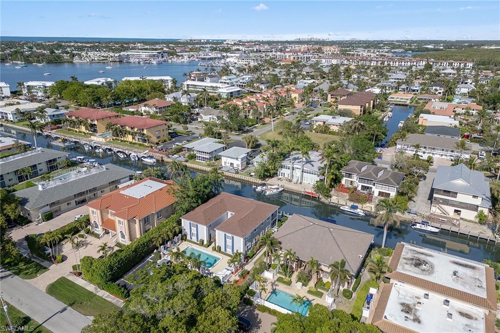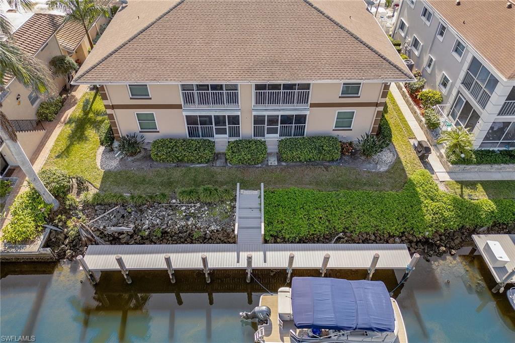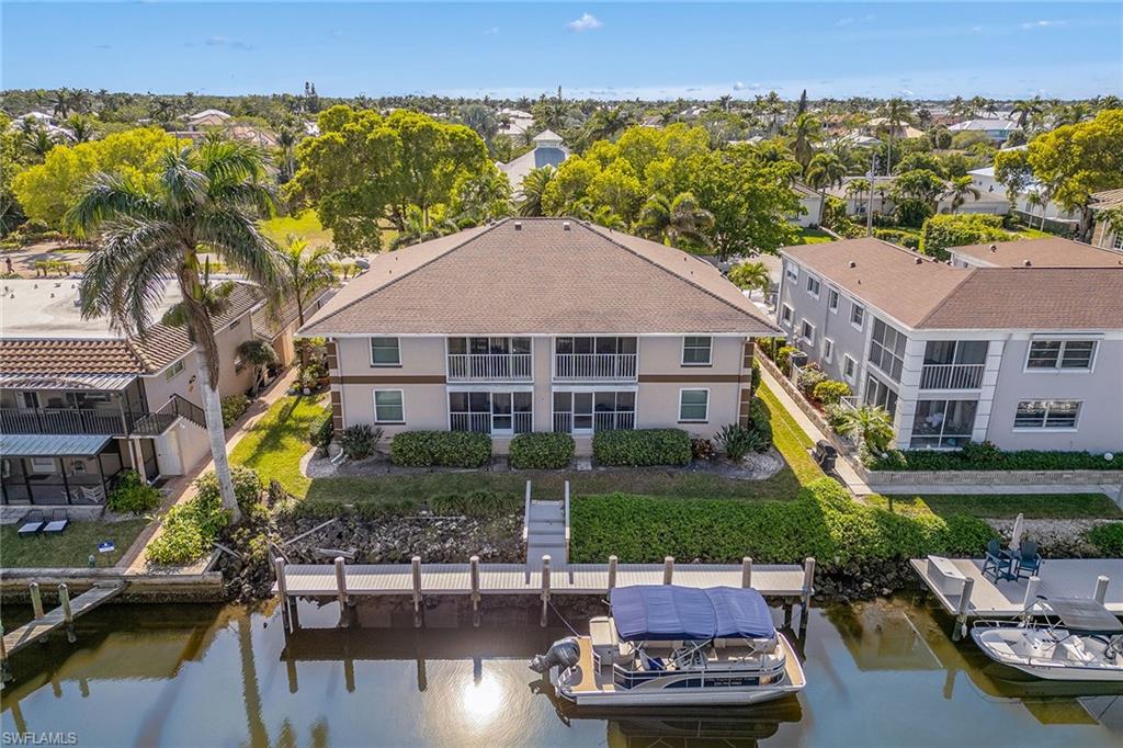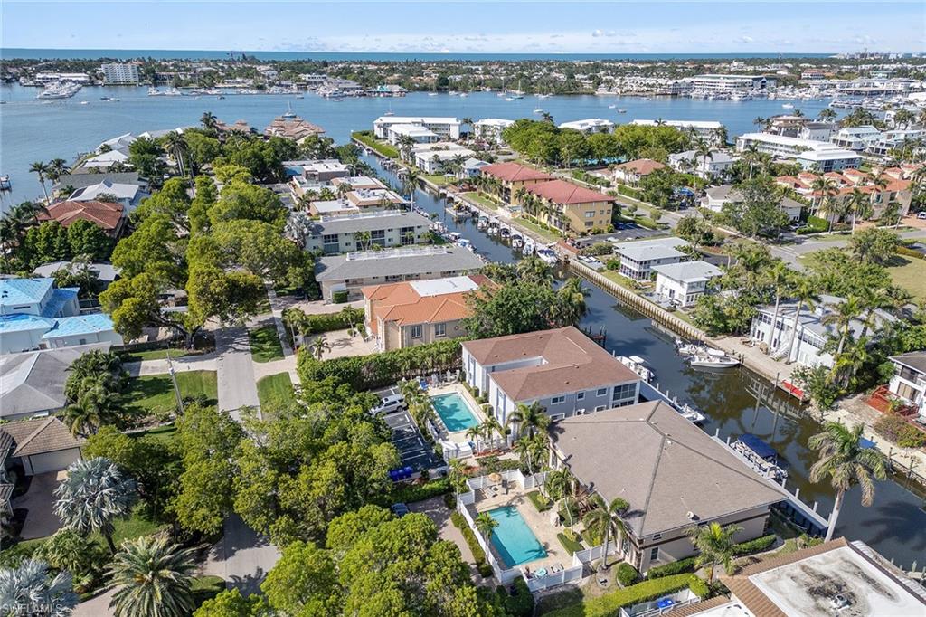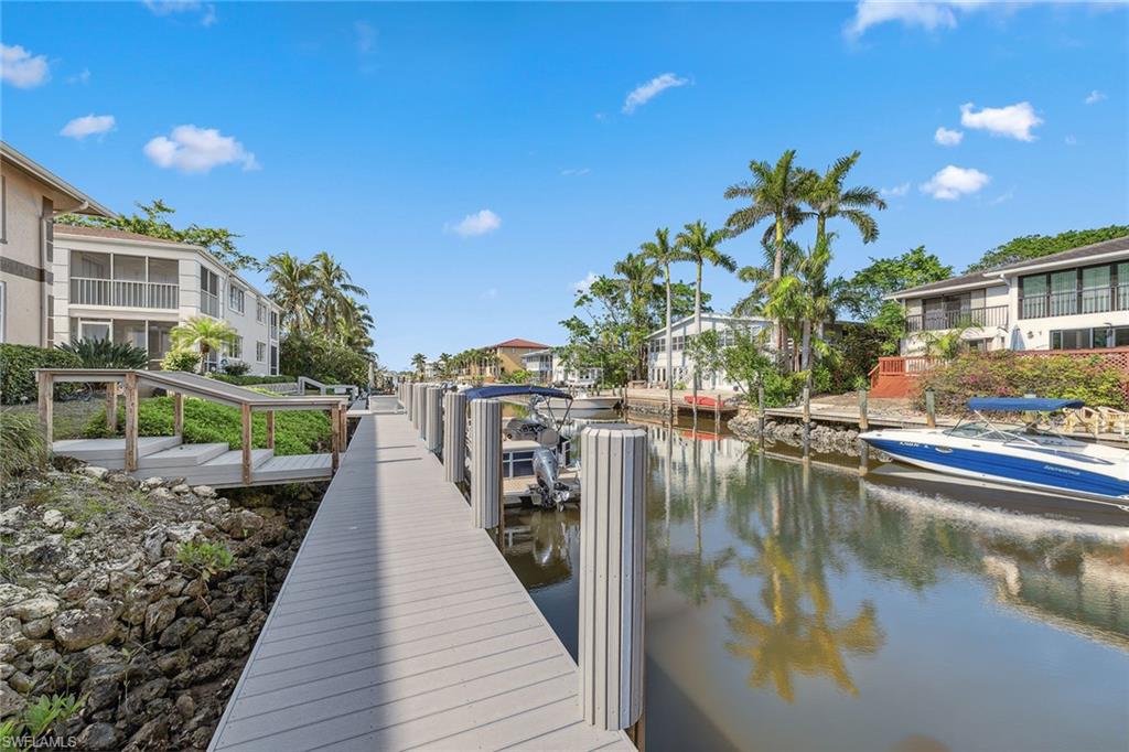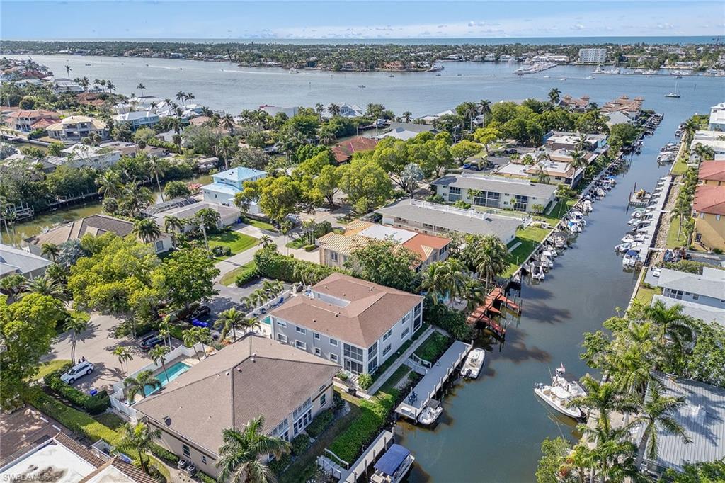 Investors - endless potential - prime investment opportunity on the water in Naples and close to downtown 5th Avenue, Naples. This well-maintained, solid concrete block construction quadruplex on the water offers four units with excellent income potential. Six ample parking spaces, a large shared heated pool, with a 6-foot privacy fence give the occupants a perfect getaway retreat. Each furnished unit has two full baths and two full bedrooms, a fully equipped kitchen with granite countertops, laundry room, dining room, open-concept living room (second-floor units have vaulted ceilings in living area) and a lanai overlooking the water. Each unit has wood/tile flooring, plantation shutters, custom glass shower doors and new ceiling fans. First-floor units offer a conjoining door that allows for the entire first floor to be shared as one unit. (Perfect for a large family.) Each unit can be rented individually. Boaters enjoy a brand new 60-foot boat dock with composite decking, boat slip equipped with bumpers to protect your vessel and quick, no-bridge access to Naples Bay and the Gulf. Your vision, your opportunity!