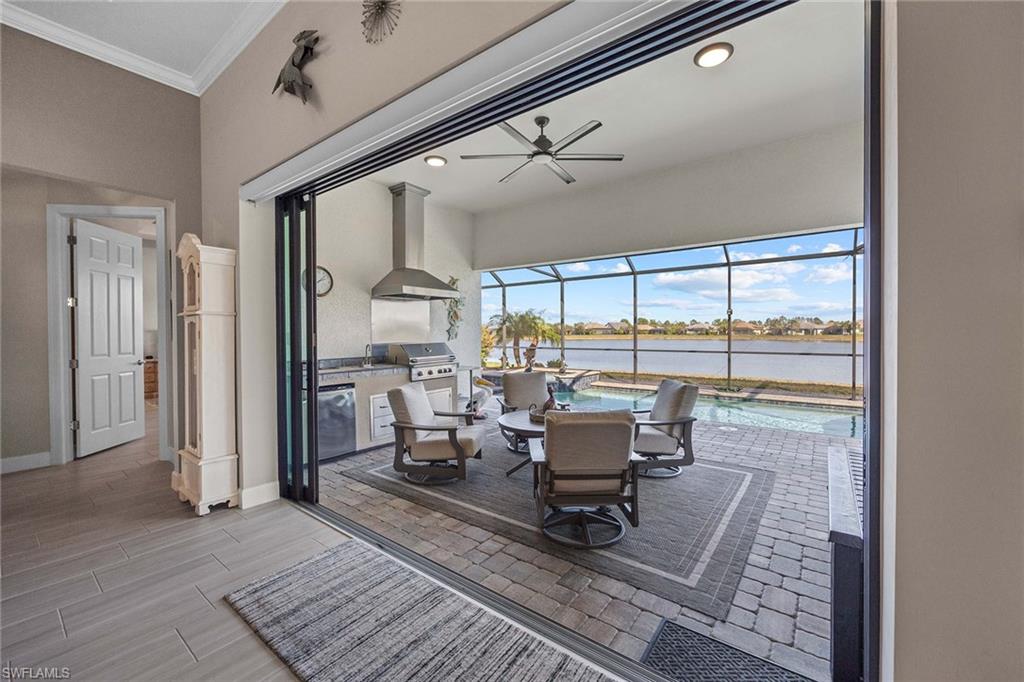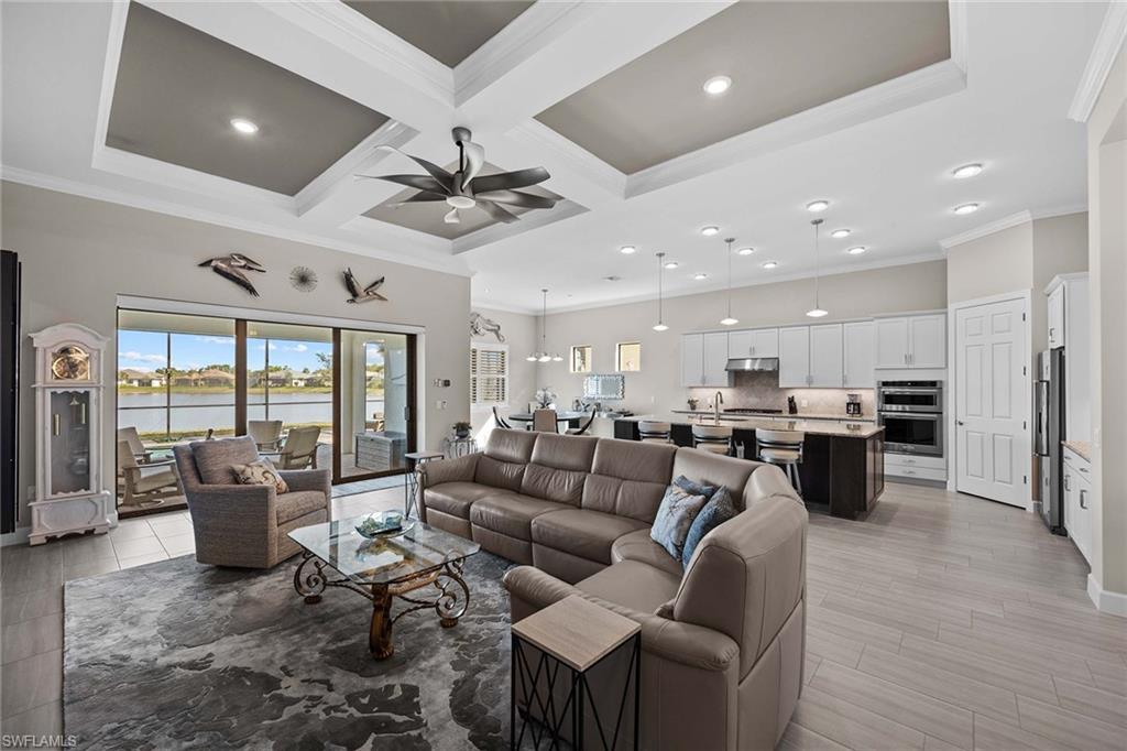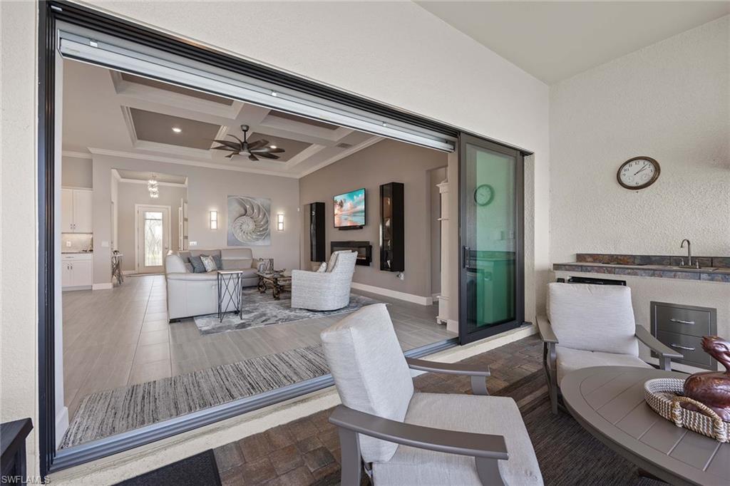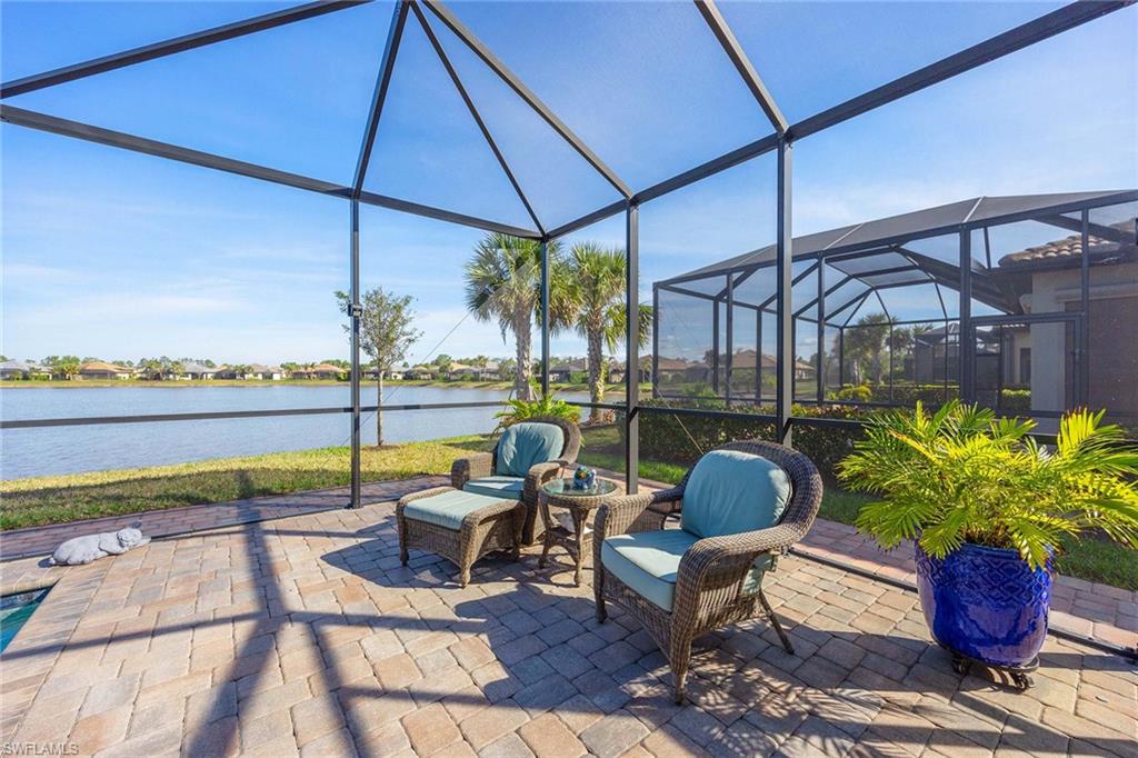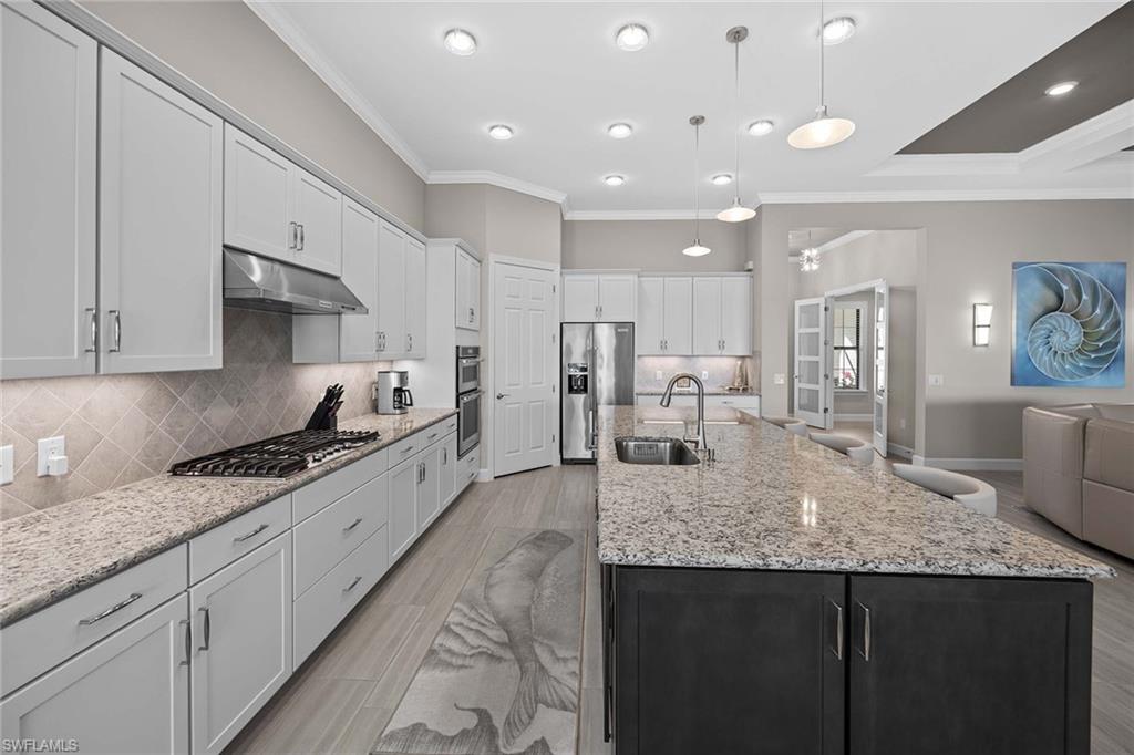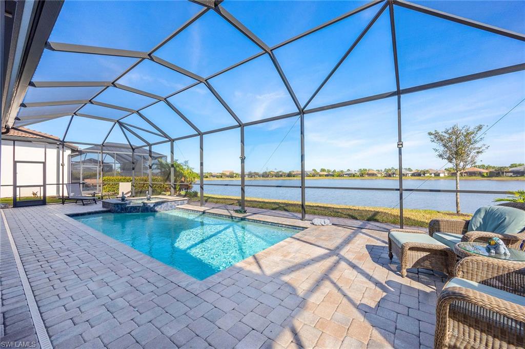 Discover luxury living in this breathtaking Pinnacle estate home, situated on one of the most coveted lakefront sites in the south Naples resort community of Winding Cypress. Step inside to an open and spacious floor plan, enhanced by soaring tray ceilings, architecturally stunning alcoves and graceful arches. The home’s designer kitchen serves as the centerpiece, featuring every upgrade possible — soft-close cabinetry, quartz countertops, a fully vented natural gas range and hood and an all-premium KitchenAid appliance package with pull-outs in all lower cabinets. Adjacent is a large pantry complete with a water filter system for added convenience. The primary suite is a private oasis with towering ceilings and full walk-in shower and massive walk-in closet, while guest quarters include an expansive bay window en suite, ensuring comfort and privacy for family and friends. Additional living spaces include a versatile den or hobby room with upgraded French glass doors and foyer layout. Outdoor living is equally impressive. Relax by the saltwater pool and spa while enjoying serene wide-open lake views. Host gatherings with ease, thanks to a fully equipped outdoor kitchen featuring an integrated hood, all set within an expansive lanai with an upgraded oversized pocket slider door. The screened front porch, extended paver paths and custom landscaping further enhance the home’s curb appeal. Practical features include a 4-foot garage extension with custom flooring for three cars, all-impact glass windows, Storm Smart Kevlar shutters and energy-efficient LED lighting throughout. Additional upgrades include raised tray with crown-trimmed ceilings, a heated fireplace with customizable colors and custom state-of-the-art lighting systems that add a touch of sophistication to every room. Located in the resort-style community of Winding Cypress, residents enjoy exclusive access to a wealth of amenities, including a restaurant and bar, state-of-the-art fitness center, resort-style and lap pools, a spa and sports facilities for bocce, pickleball and tennis. The community also boasts a fire pit, bird-watching overlooks, a nature boardwalk and a picnic pavilion. Perfectly positioned between downtown Naples and Marco Island, this home offers the ultimate in luxurious Florida living. From its high-end finishes to its extraordinary location, it’s a property that truly has it all.