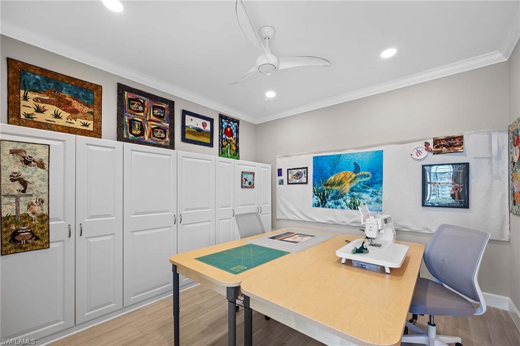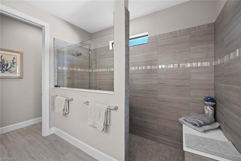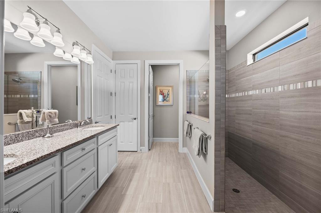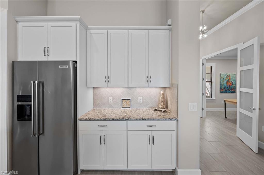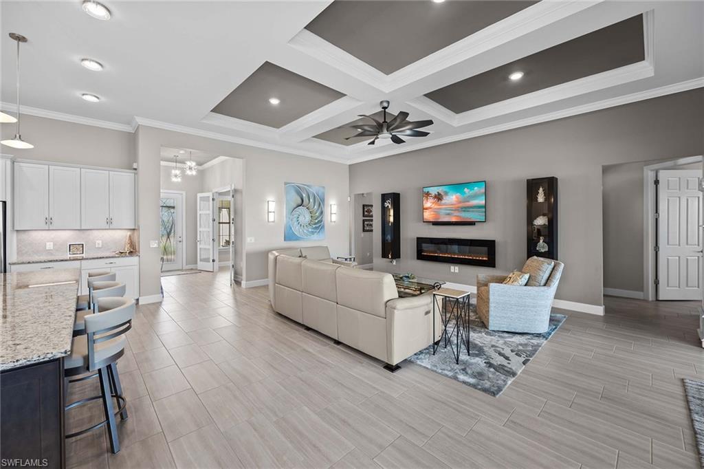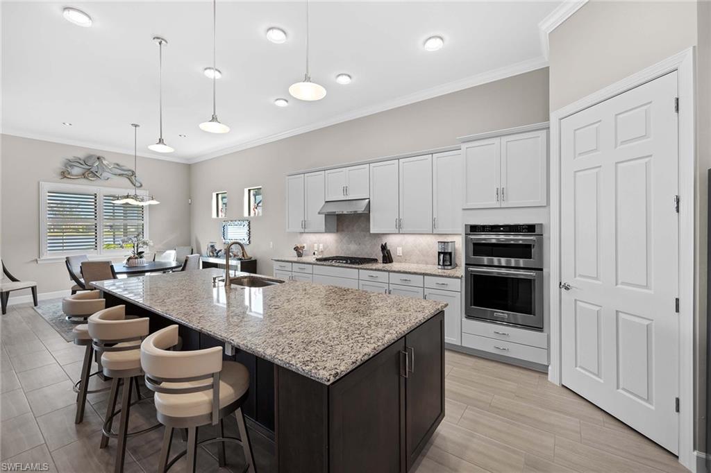 Discover luxury living in this breathtaking Pinnacle estate home, situated on one of the most coveted lakefront sites in the south Naples resort community of Winding Cypress. Step inside to an open and spacious floor plan, enhanced by soaring tray ceilings, architecturally stunning alcoves and graceful arches. The home’s designer kitchen serves as the centerpiece, featuring every upgrade possible — soft-close cabinetry, quartz countertops, a fully vented natural gas range and hood and an all-premium KitchenAid appliance package with pull-outs in all lower cabinets. Adjacent is a large pantry complete with a water filter system for added convenience. The primary suite is a private oasis with towering ceilings and full walk-in shower and massive walk-in closet, while guest quarters include an expansive bay window en suite, ensuring comfort and privacy for family and friends. Additional living spaces include a versatile den or hobby room with upgraded French glass doors and foyer layout. Outdoor living is equally impressive. Relax by the saltwater pool and spa while enjoying serene wide-open lake views. Host gatherings with ease, thanks to a fully equipped outdoor kitchen featuring an integrated hood, all set within an expansive lanai with an upgraded oversized pocket slider door. The screened front porch, extended paver paths and custom landscaping further enhance the home’s curb appeal. Practical features include a 4-foot garage extension with custom flooring for three cars, all-impact glass windows, Storm Smart Kevlar shutters and energy-efficient LED lighting throughout. Additional upgrades include raised tray with crown-trimmed ceilings, a heated fireplace with customizable colors and custom state-of-the-art lighting systems that add a touch of sophistication to every room. Located in the resort-style community of Winding Cypress, residents enjoy exclusive access to a wealth of amenities, including a restaurant and bar, state-of-the-art fitness center, resort-style and lap pools, a spa and sports facilities for bocce, pickleball and tennis. The community also boasts a fire pit, bird-watching overlooks, a nature boardwalk and a picnic pavilion. Perfectly positioned between downtown Naples and Marco Island, this home offers the ultimate in luxurious Florida living. From its high-end finishes to its extraordinary location, it’s a property that truly has it all.