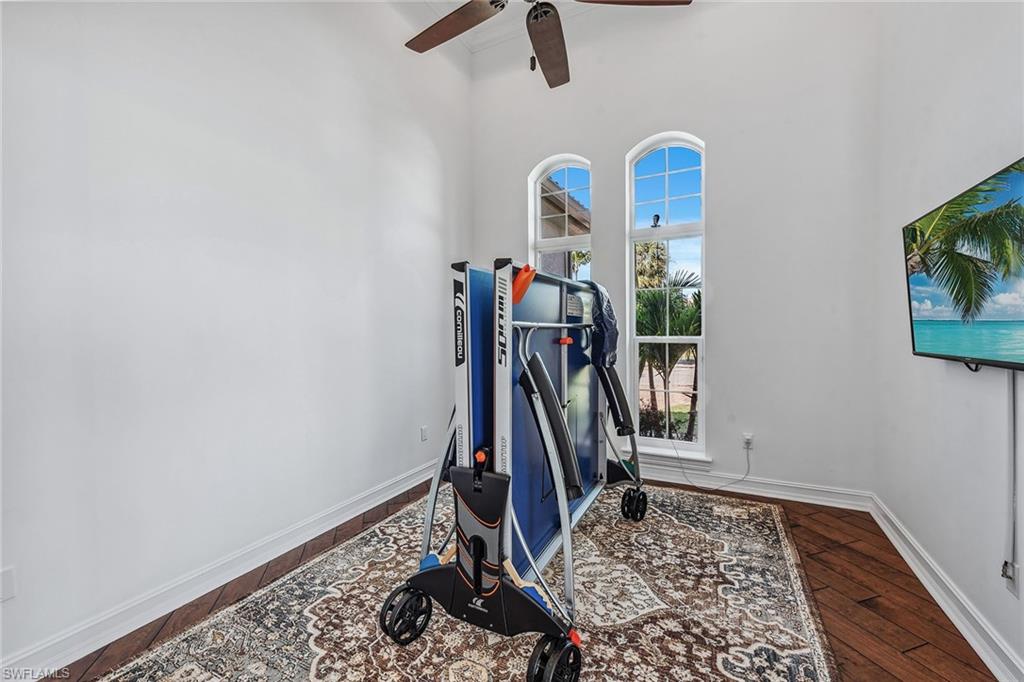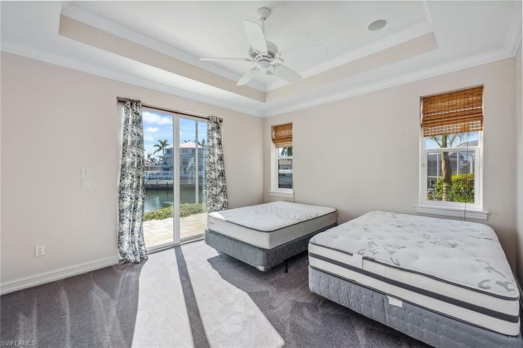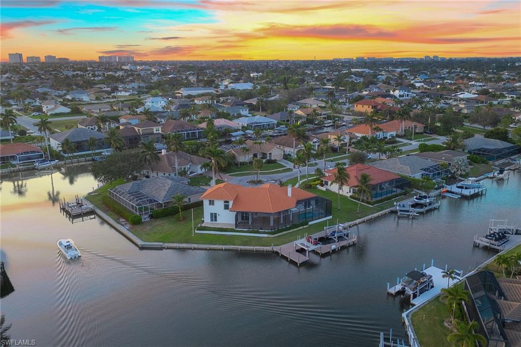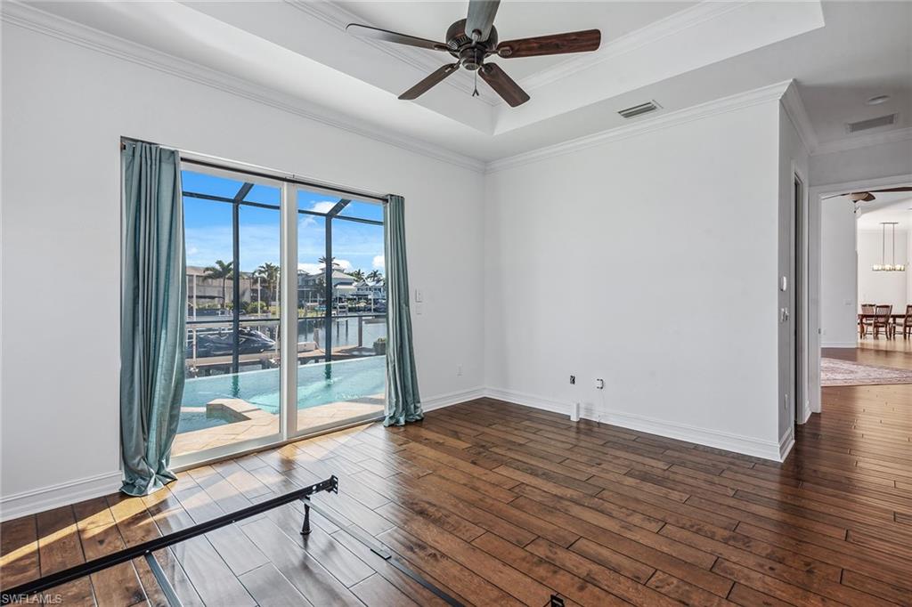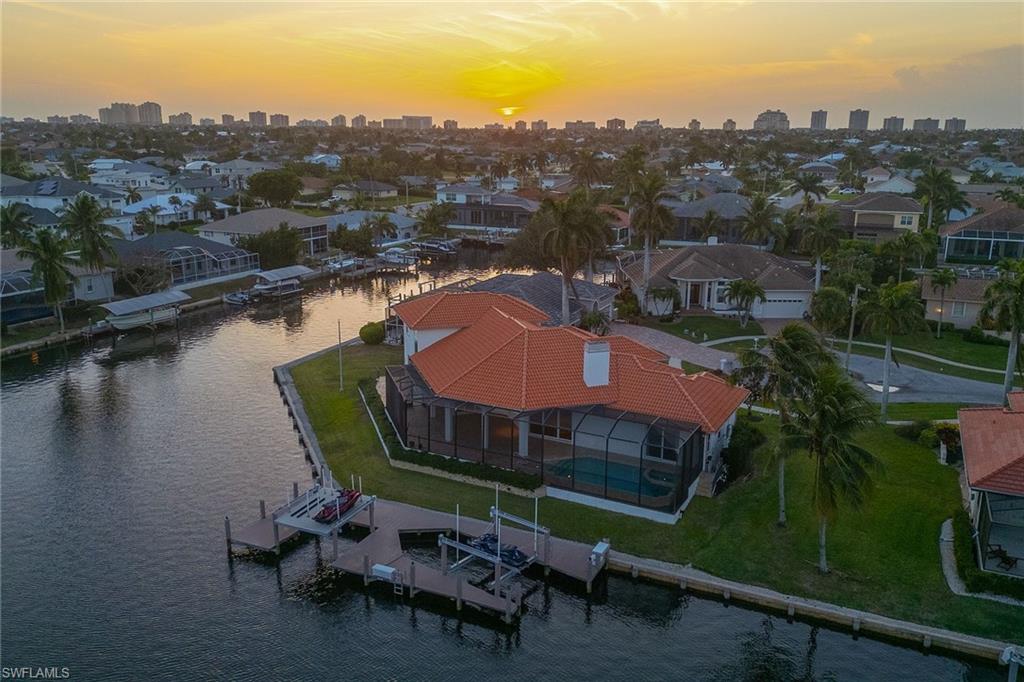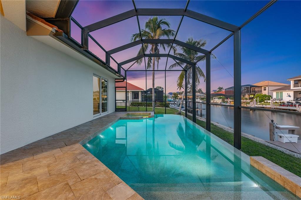 Beautiful southeastern tip-lot location with over 160 feet of indirect waterfront frontage with panoramic, converging waterway views. This 2014-built residence features over 3,100 square feet of open living space on two levels with four bedrooms plus a den, four full baths and two half baths with an additional workout/hobby room, great room with fireplace, impact glass throughout and more. Enjoy the hot Florida sun and salty air from your spacious screened-in lanai with a heated negative-edge pool/spa or the open patio overlooking your large dock with multiple lifts for your boat and wave runners. Recent updates: new refrigerator, hot water heater (2024), exterior/first-floor painting (2024), pool pump (2024), second-floor A/C (2021). This home is centrally located on the island and is within walking distance to the YMCA, schools, area parks and 2 miles to Residents' Beach.