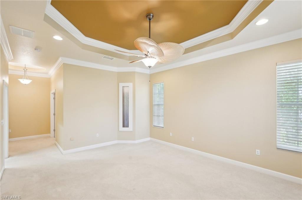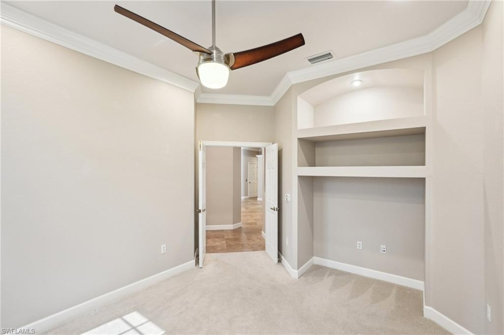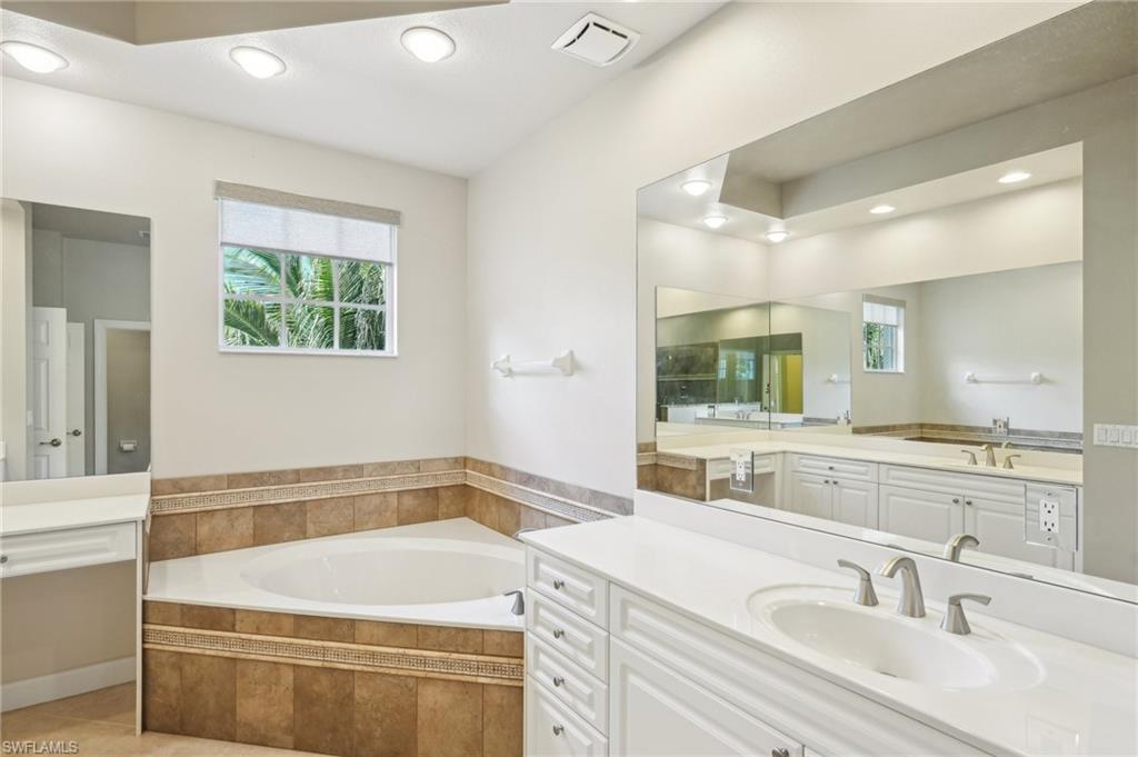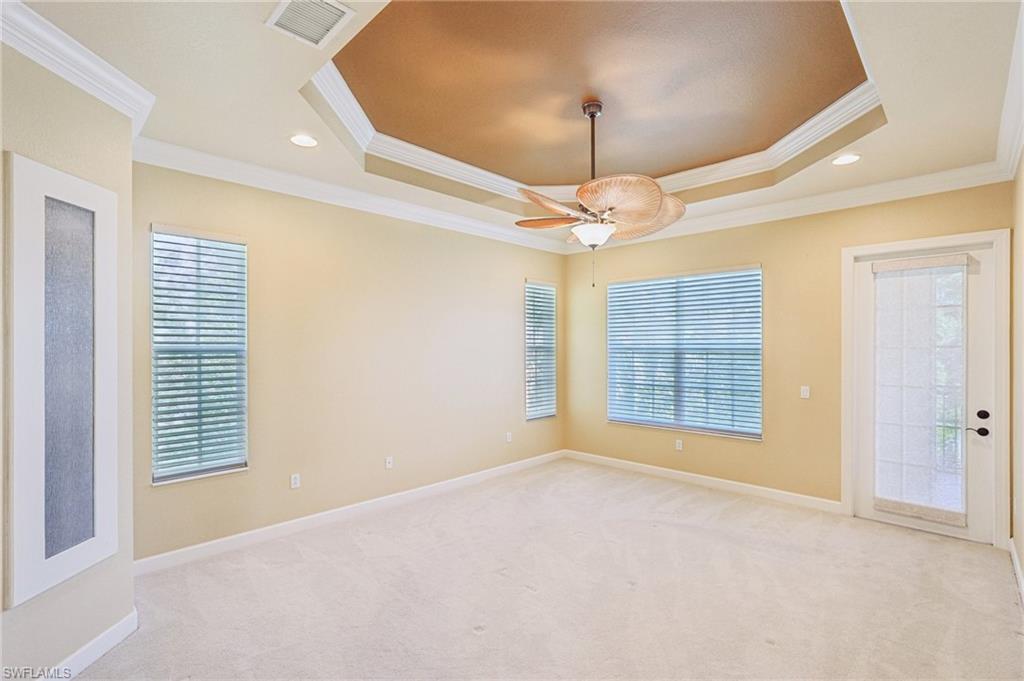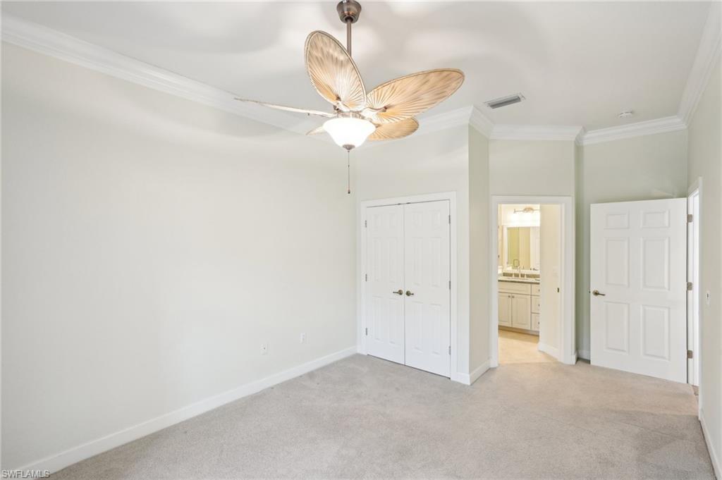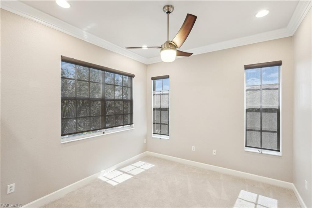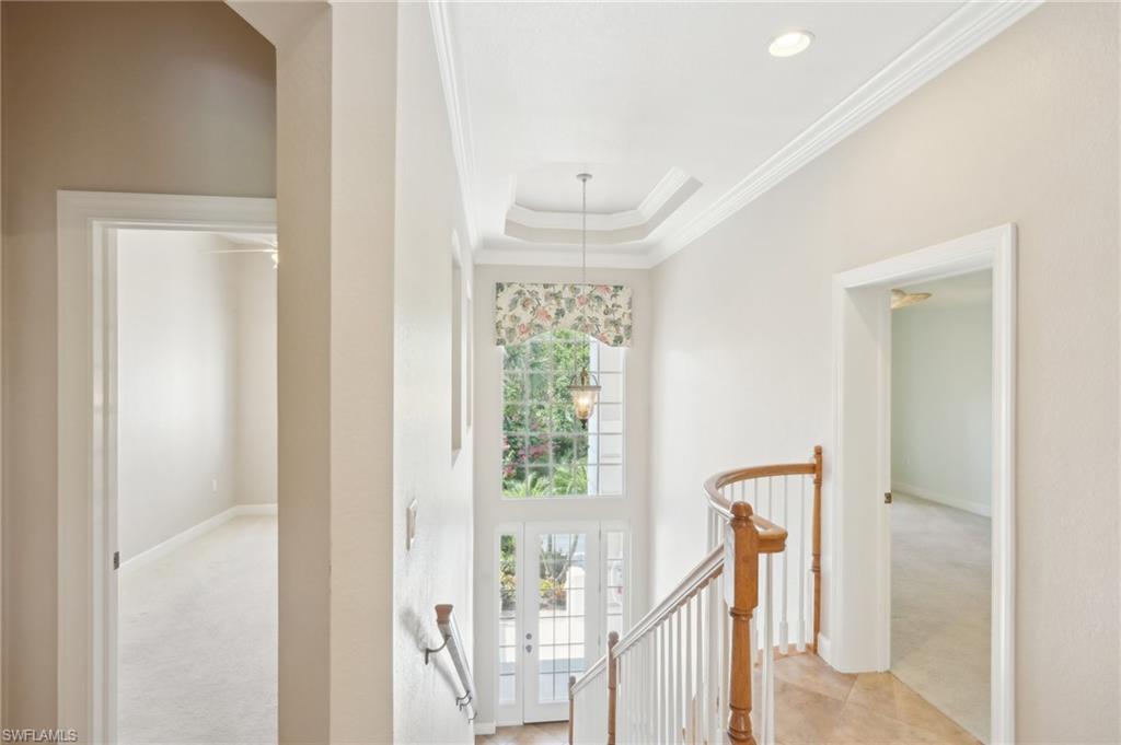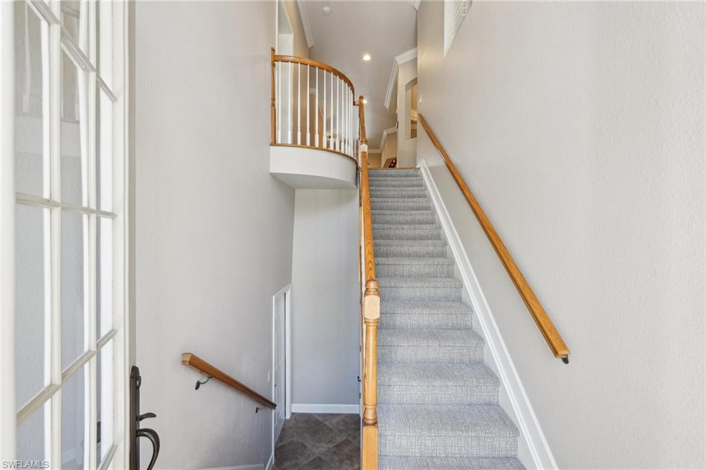 An Exceptional PRICE ENHANCEMENT! STUNNING carriage home in Bonita Bay with desirable 2-unit building. Enter the front door to the dramatic 2 story foyer and over 3000 total sq. ft. in this fabulous condo with private elevator for convenience. A captivating great room floor plan offers 3 bedrooms, media room, office, 3 full baths, a neutral palette, custom window treatments and an abundance of natural light. Large tile floors on diagonal throughout the main living areas and lanai, carpet in bedrooms, media room and office with plantation shutters. Custom designed "Cornerstone" kitchen and bathrooms. The well-equipped kitchen flows into an eat-in morning room or dine in the formal dining area. Your spacious primary suite is surrounded by lush foliage, providing a true private oasis and ensuite with primary bathroom boasting dual vanities, soaking tub and walk-in shower. Peace of mind with Lenox 2 stage A/C system and dehumidifier and new hot water heater. Enjoy morning coffee or a relaxing evening on your spacious screened in tiled lanai, with electric storm shutters, providing a view of the lovely community pool and cabana area. Bonita Bay amenities include private beach park on the Gulf of Mexico, 3 Community Parks, Tennis, Pickleball, Bocce Ball, 12 miles of nature trails & full-service marina & restaurant. Membership available to Bonita Bay Club offering 5 golf courses, 18 Har-Tru tennis courts, 5 Pickleball courts, croquet lawn and swim complex with Breezeway Café & open air bar. Community Marina features boat, kayak and canoe launch area. The Lifestyle Center features a state-of-the-art fitness center & Full-Service Spa. Conveniently located between Naples and Fort Myers with Shopping, Dining, Airport, FGCU, and I-75 minutes away!