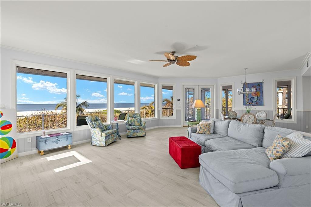 "THERE’S NO CRYING IN BASEBALL!" (Name that movie?!) But there will definitely be tears of joy when you see this once-in-a-lifetime Sanibel Island beachfront gem! Wake up to the soothing sounds of the Gulf waves and enjoy private, panoramic views right from your home. Spend your days on the island’s best stretch of beach, just steps from your door, or unwind by the pool as the sun sets over the water. Inside, the main level boasts an oversized kitchen perfect for entertaining, two guest bedrooms, office that can easily be converted into a 4th bedroom, and an open living/dining area with breathtaking Gulf views. The upper level offers a private home office, wet bar, and a stunning primary suite with a spa-like bath and views that will take your breath away. Need more? A 3-car garage, spacious storage room, and an elevator connecting all three floors. Plus, you're moments from shopping, dining, and nature trails. This is the opportunity of a lifetime—don’t miss out on your dream home!