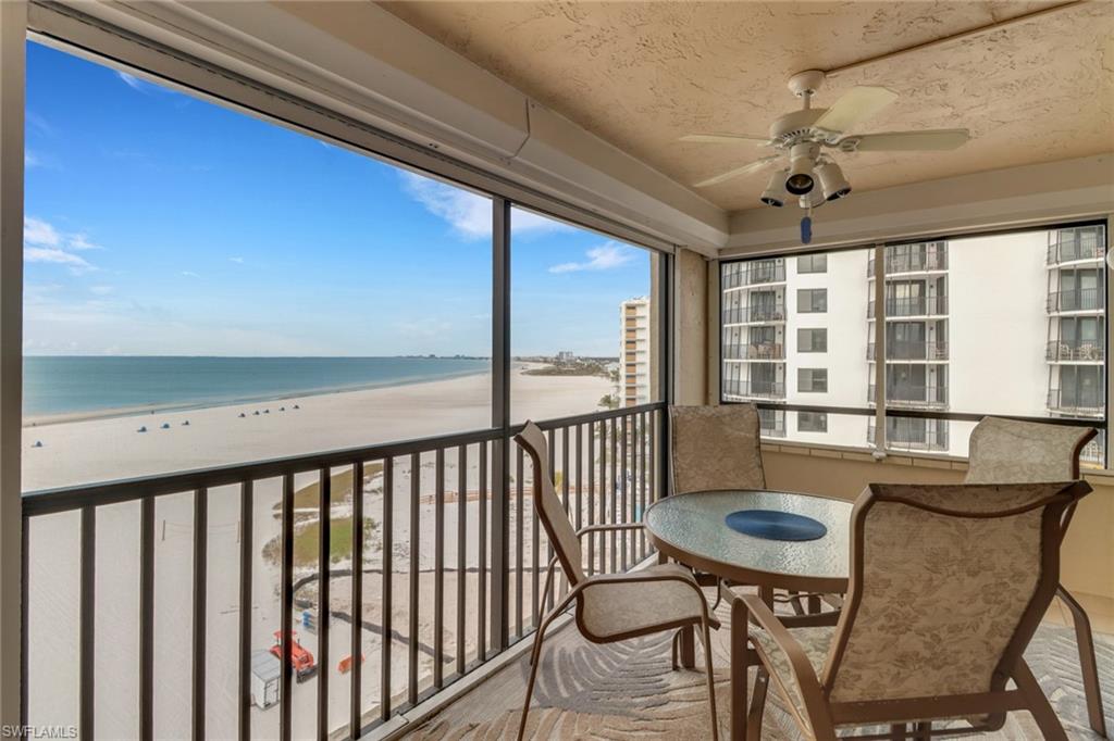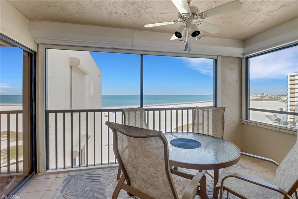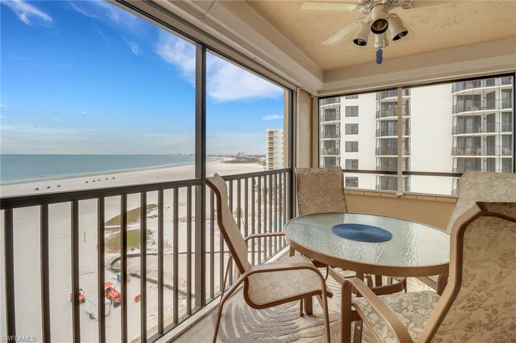 Stunning and rare 3 bed/2bath PENTHOUSE Gulf front condo located in Sandarac on the south end of Fort Myers Beach. Enjoy Panoramic Gulf of Mexico and Estero Bay views! Grab your favorite beverage and soak in the nightly sunsets right from the lanai. As you step inside, you'll immediately notice the attention to detail with white built-in cabinets with quartz counter tops at the front entry. Designer upgrades thought the condo include kitchen with Samsung stainless appliances, quartz countertops, tile backsplash and light wood cabinets. Enjoy the turquoise blue water from the primary bedroom which also has a private entrance to the lanai. Primary bathroom is completely updated with new white cabinets and quartz countertops. Have peace of mind with electric shutters and new AC. This condo also offers covered parking, which is currently being restored. The community pool offers a great option for fun in the sun! Located across from CVS pharmacy and Santini Plaza, you'll have easy access to shopping, dining, and entertainment options. Whether you're looking for a permanent residence or a vacation getaway, this condo offers it all. Don't miss out on this opportunity to own a piece of paradise. Contact your agent today to schedule a showing!