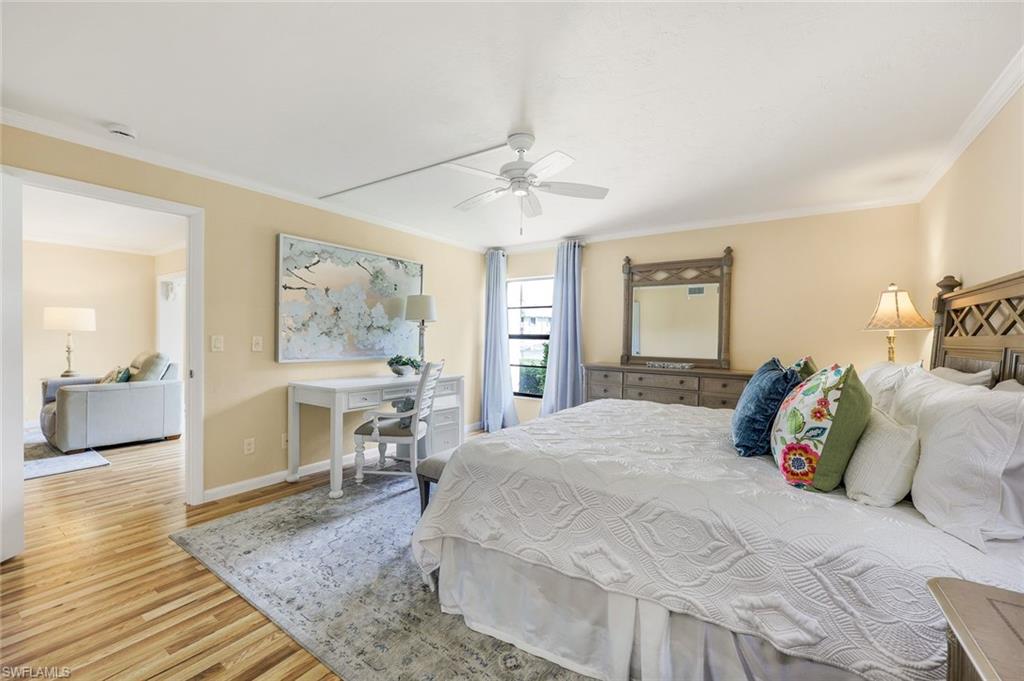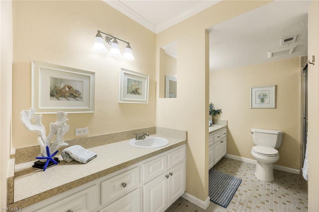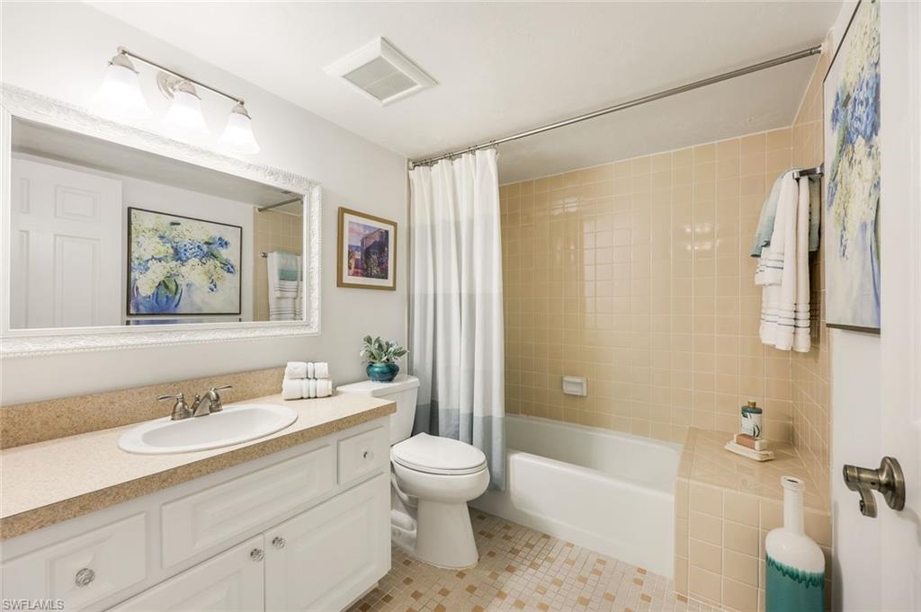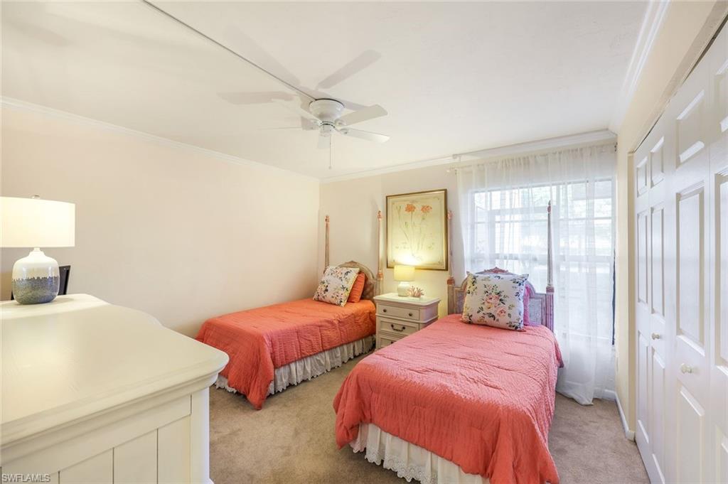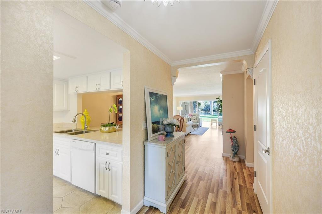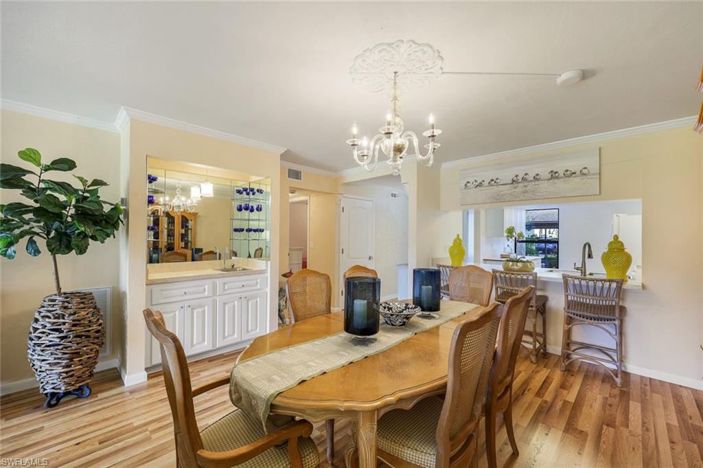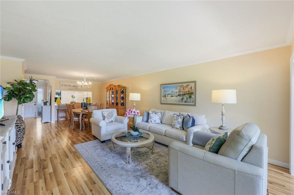 Bright and inviting condo in Palm River, a 55+ North Naples Community! Discover your perfect Florida lifestyle home in this sunny first-floor 2-bedroom + den, 2-bathroom condo that offers a welcoming and spacious layout and is beautifully updated to combine modern comfort with timeless style. Step inside to find luxury vinyl flooring, an expansive kitchen with newer appliances, abundant cabinetry, and a generously sized ensuite primary bedroom featuring a walk-in closet. This spacious condo is move-in ready and includes beautiful, newer designer furniture for a seamless transition into to your new lifestyle. Enjoy hosting or relaxing by the wet bar that extends your living space ending with a sliding glass wall that opens to breathtaking lake and fountain views. With generous indoor and outdoor storage, this home offers convenience at every turn. The active and friendly community is designed for a vibrant lifestyle. Residents enjoy a large community pool, bocce ball, shuffleboard courts, and an outdoor grilling area. New roof in 2024, adding to the value and appeal of this community. Ideally located, Courtwood provides easy access to I-75, Mercato for shopping and dining, Trader Joe’s, Whole Foods, top-rated local hospitals, and is less than 5 miles from the Gulf of Mexico’s beautiful beaches. This property also features a covered carport and is situated in a no-flood zone, ensuring peace of mind.