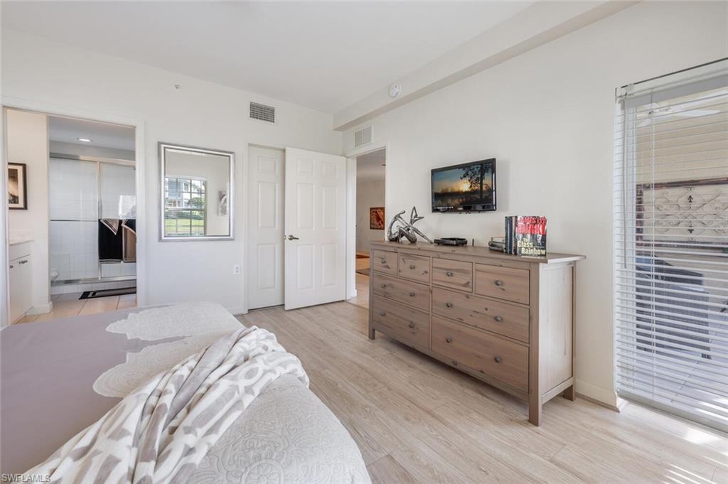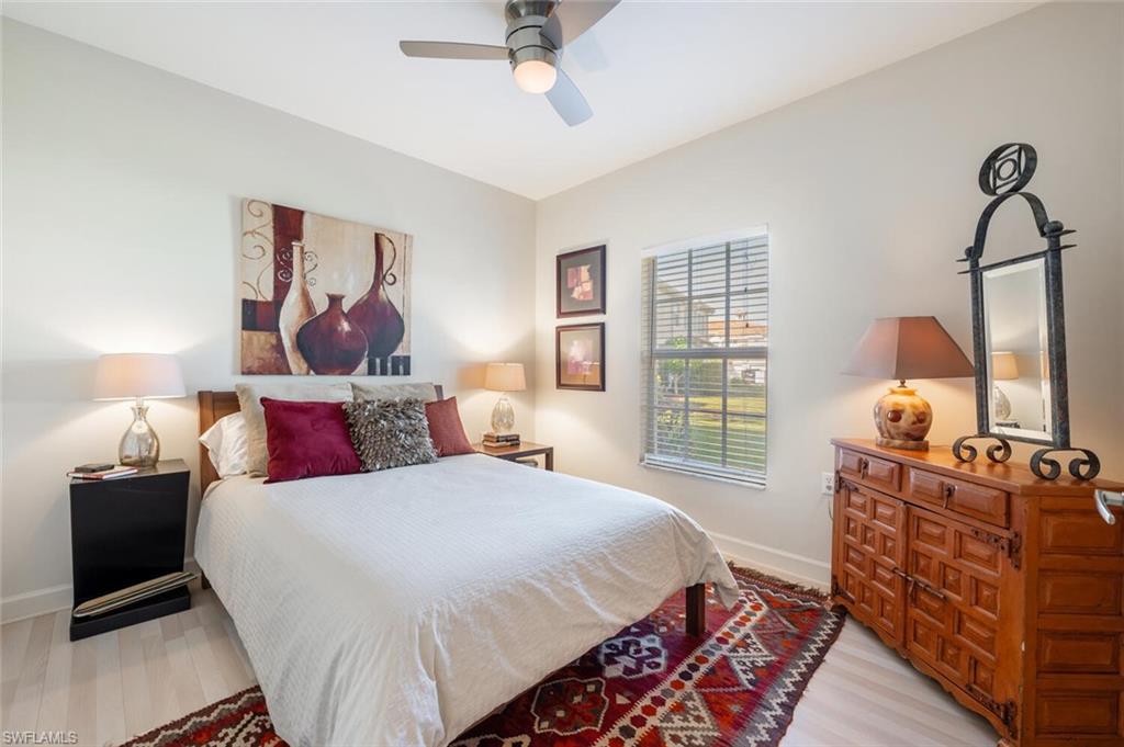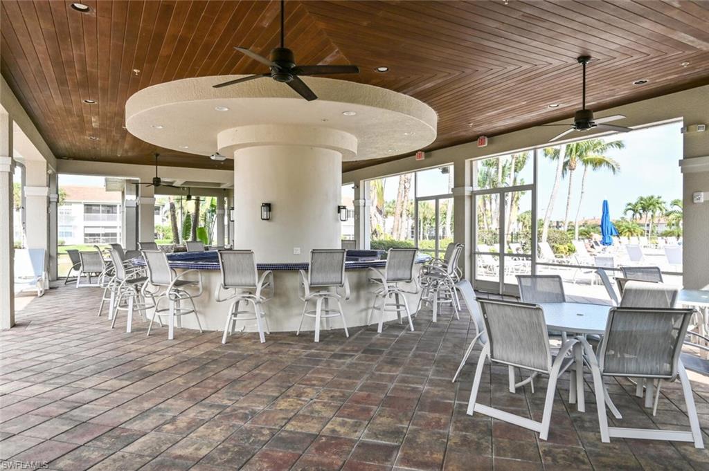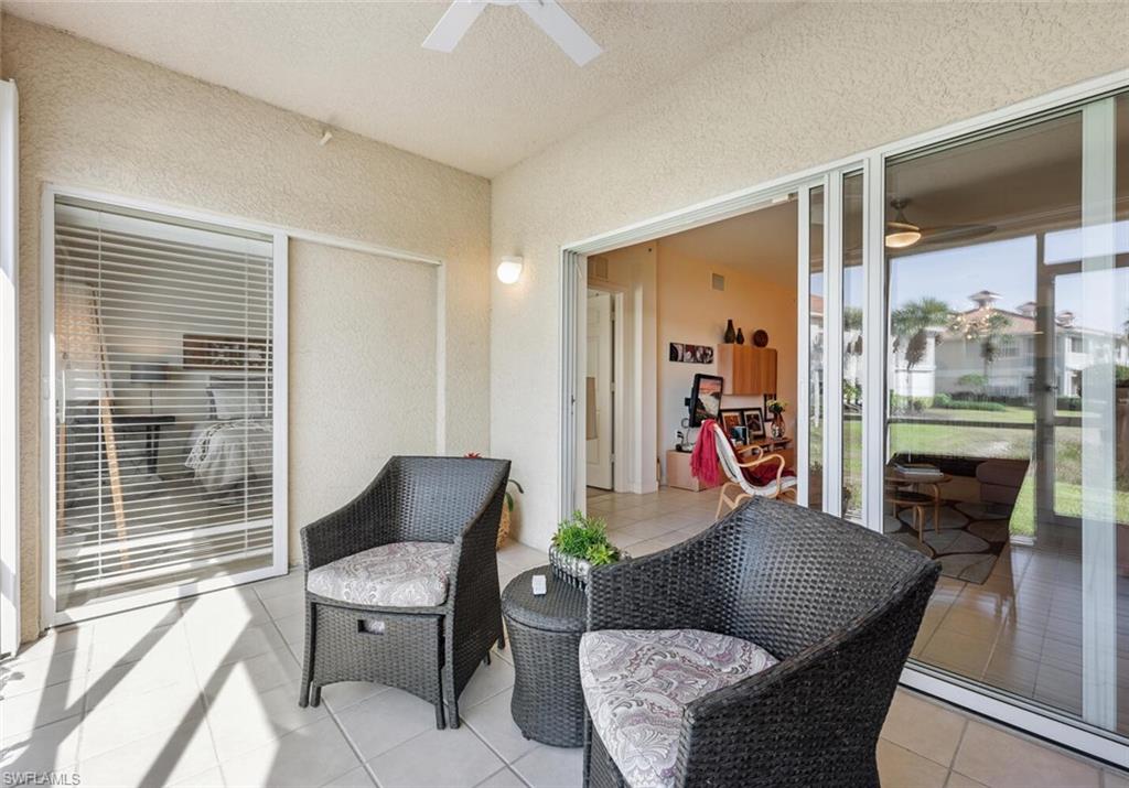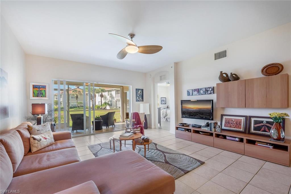 GLISTENING WATER VIEWS from this first floor lake front END residence! Light & bright turnkey furnished 3 bedroom, 2 bath garden condo featuring tile in all main areas, laminate "wood look" flooring in bedrooms, walk in shower in the master bath with separate dual vanities, accordian shutters on the lanai and entry, a detached garage and more! Green space next door and guest parking nearby which is a big plus! Amenities and social opportunities abound in Bridgewater Bay with a resort style pool and spa, screened lap pool, fitness center, pickleball courts, tennis courts, bocce courts, basketball court, billiards, card/reading room and more! The bonus is the availability of an extra large fenced lot for RVs, boats & trailers, etc. for a reasonable annual fee to Owners. Enjoy easy access to both Airport Pulling and Livingston Roads for quick trips to Waterside Shops and Mercato, elegant and casual restaurants, the beautiful beaches of Clam Pass, Vanderbilt Beach and Wiggins Pass State Recreational State Park and world class golf courses, all just minutes away. Come experience the Florida lifestyle!