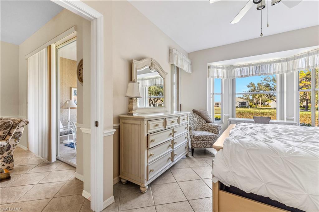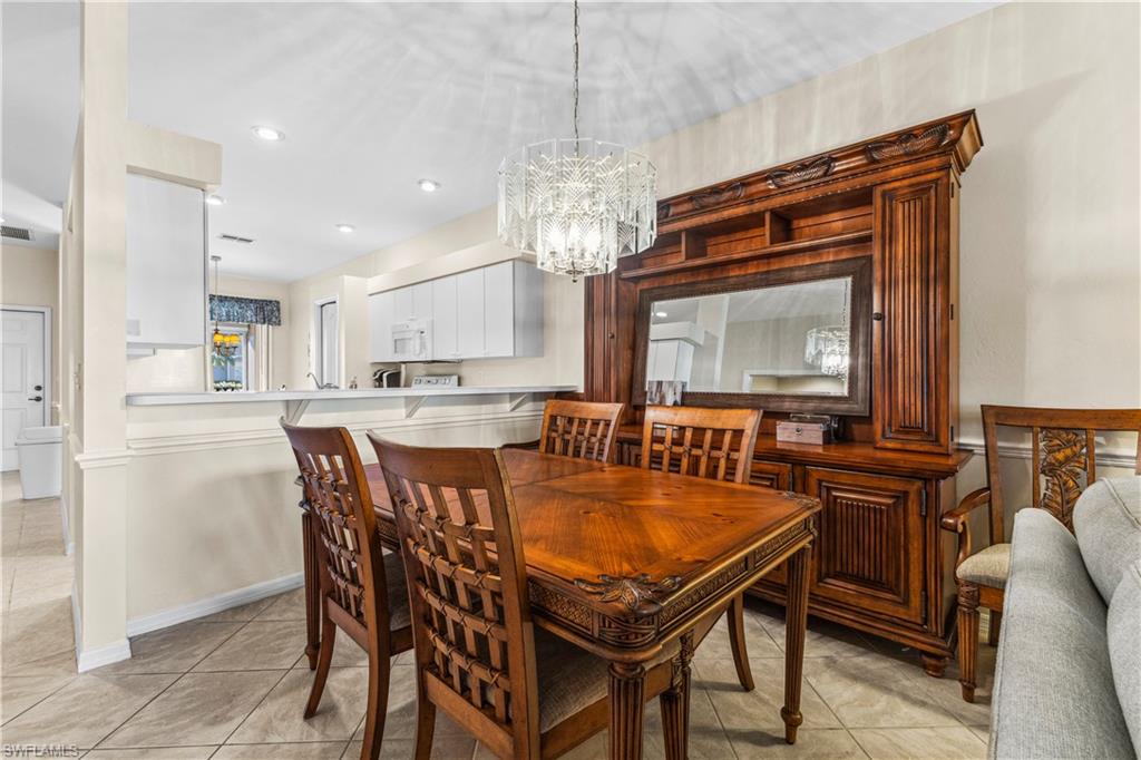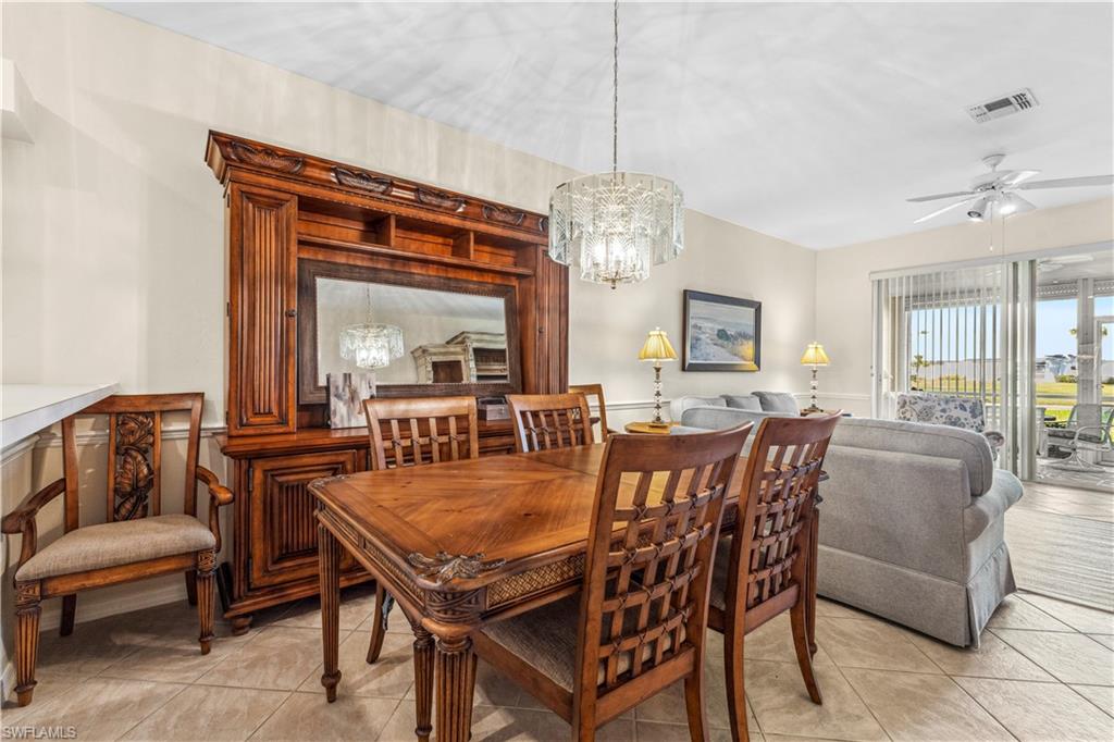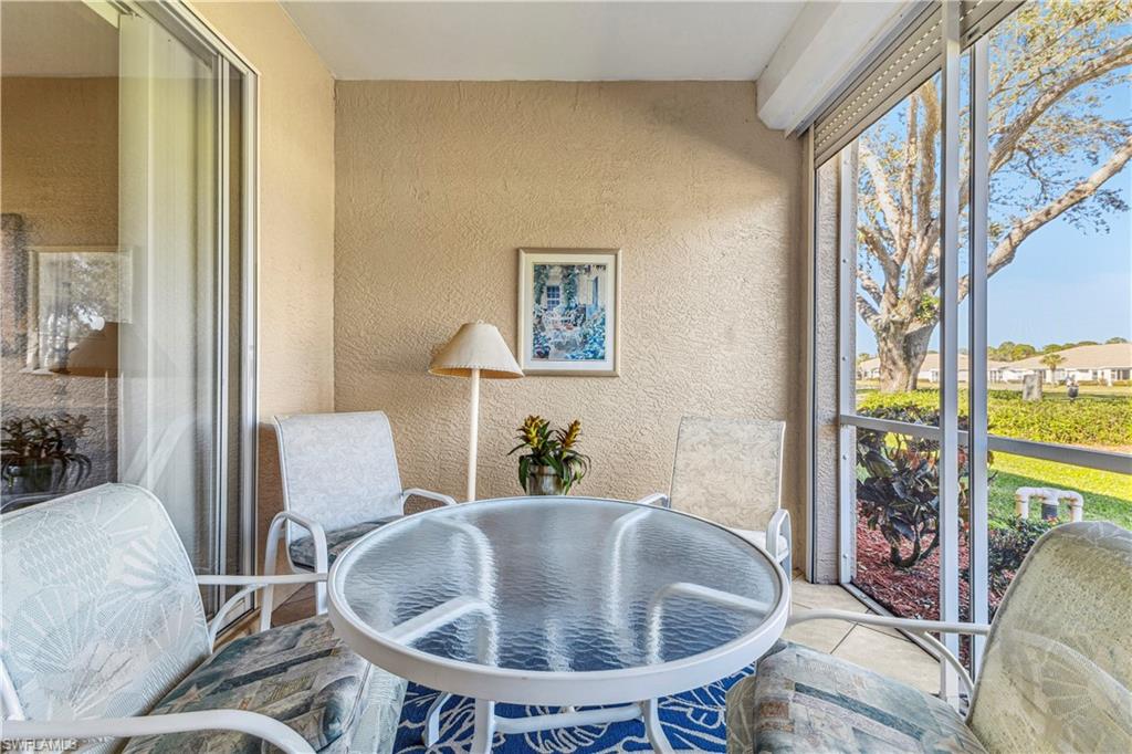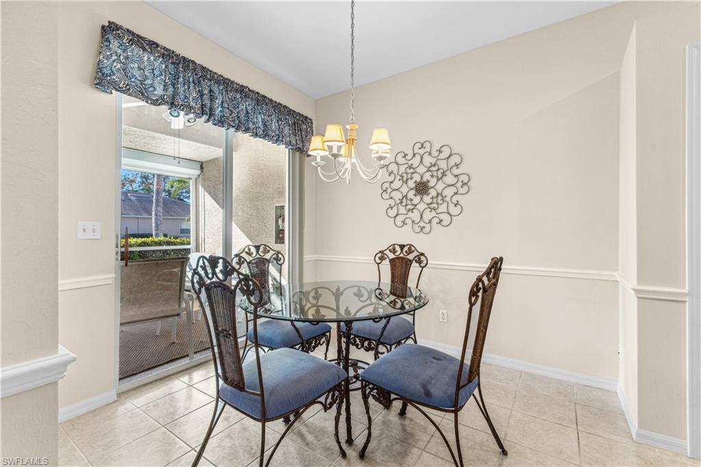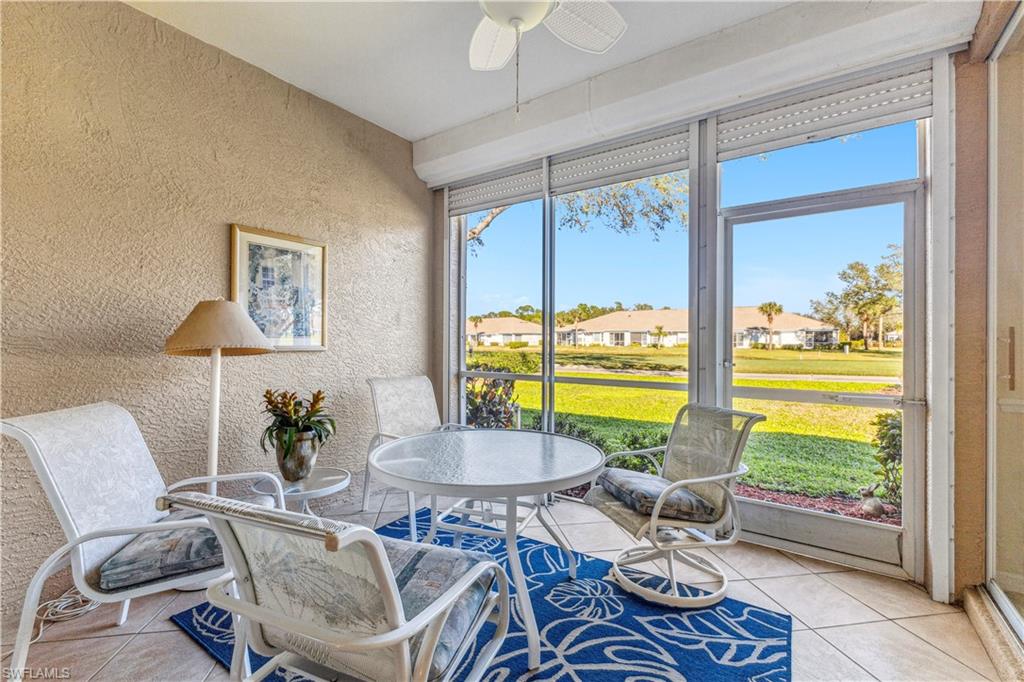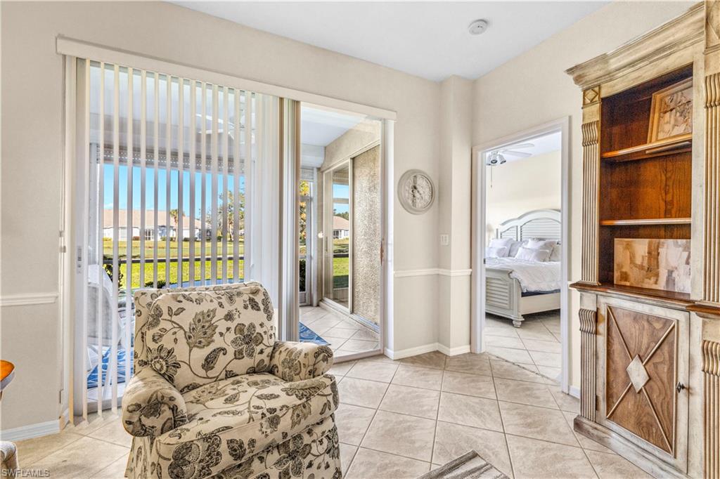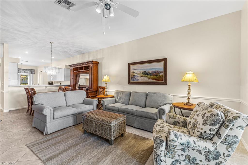 Welcome to your dream villa! This 2-bedroom + den, 2-bath attached villa offers a turnkey opportunity to move right in, as it comes fully furnished. Located in the sought-after Country Creek community, the home features a breathtaking golf course view that can be admired from the back screened-in lanai, providing the perfect space to relax. Designed with an open-concept layout, the kitchen seamlessly flows into the living area, creating a bright and inviting atmosphere ideal for both relaxation and entertaining. On the other side of the kitchen, a cozy breakfast nook overlooks a glass slider that opens onto the front lanai, offering the perfect spot to enjoy your early morning coffee. This thoughtful layout blends comfort and functionality, making it a home you'll love living in. The villa features tile flooring throughout and includes a cozy den with pocket doors, providing a flexible space that can be used as a home office or guest room with added privacy. The split-bedroom layout ensures comfort and convenience, with the guest bedroom featuring a pocket door that creates a private suite with the guest bathroom. Both bedrooms are spacious and well-appointed, offering a peaceful retreat for you and your guests. For added convenience, the home includes an attached garage and has hurricane protection with accordion shutters, ensuring peace of mind during storm season. The villa is also located close to several pools within the community, making it easy to enjoy a refreshing dip on warm days. Country Creek is a vibrant resort-style community offering a range of amenities, including a bundled golf course where residents can play for a low fee, which includes a golf cart. The on-site country club features a restaurant and bar, while additional recreational options include tennis, bocce ball and a work out facility, catering to an active lifestyle. Ideally situated, this home is minutes away from Coconut Point and Miromar Outlets, as well as a library, Florida Gulf Coast University, a community park, and countless dining options. Southwest Florida International Airport is conveniently close, along with other local attractions. This villa offers the perfect combination of comfort, style, and community living. Schedule your private showing today and start enjoying everything Country Creek has to offer!