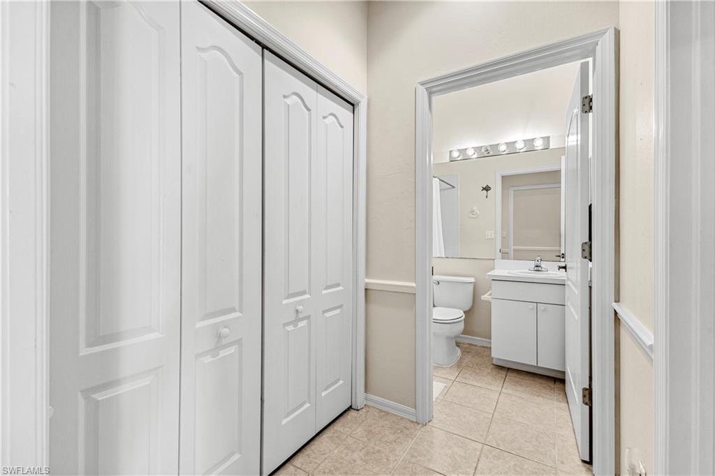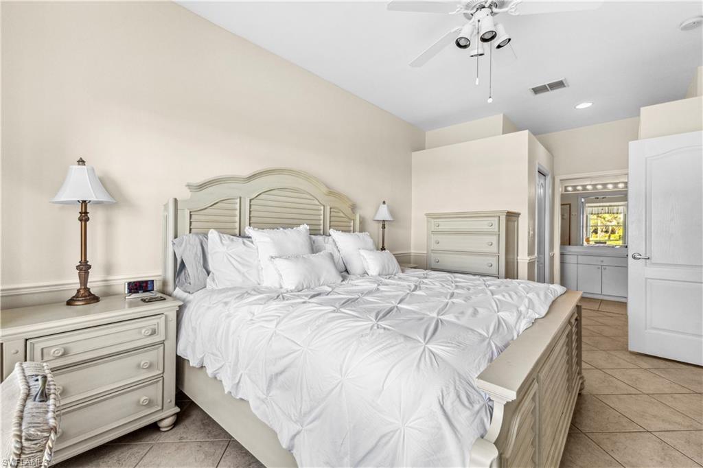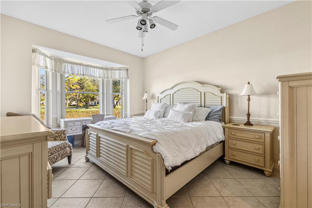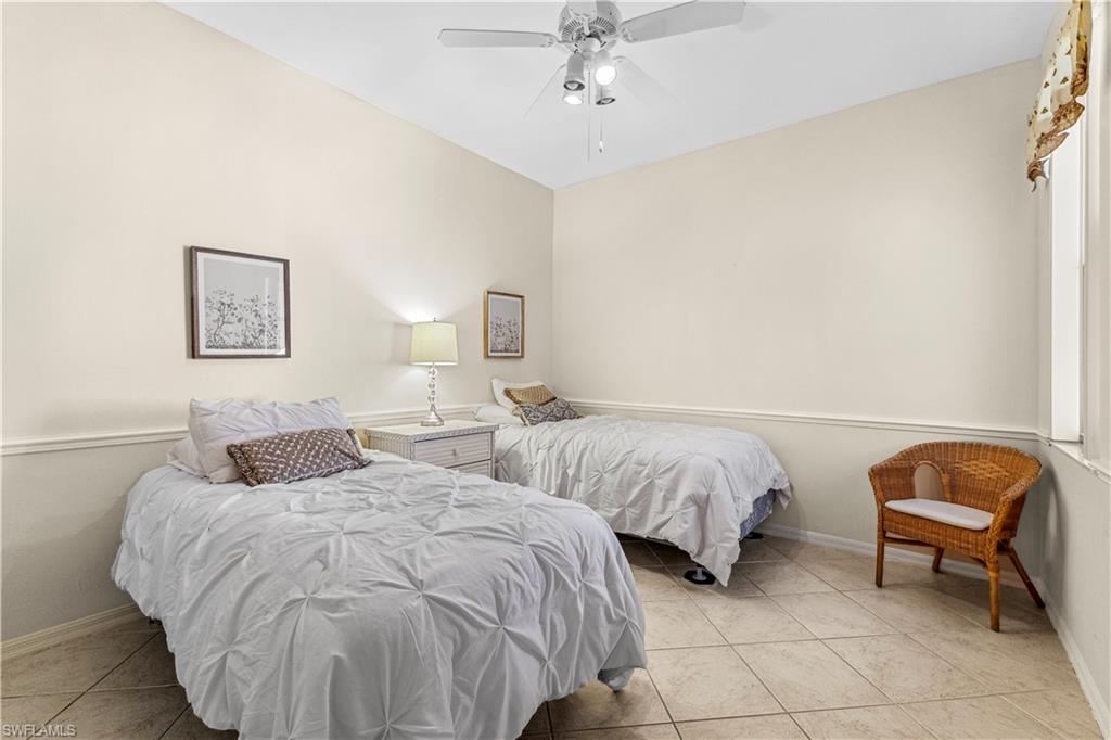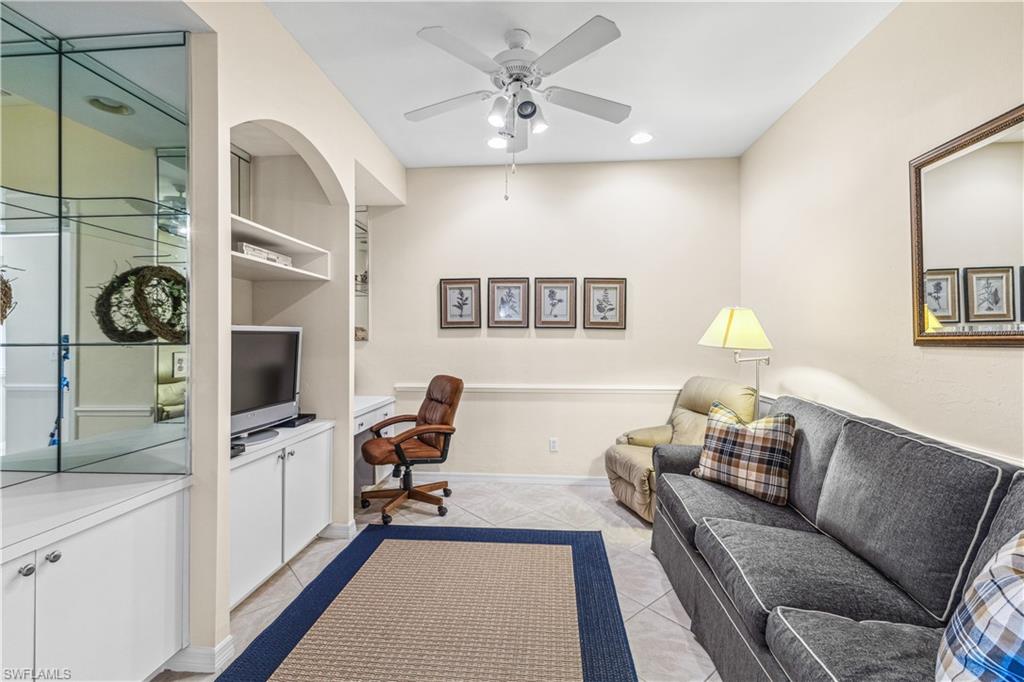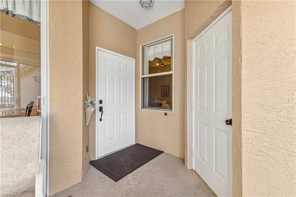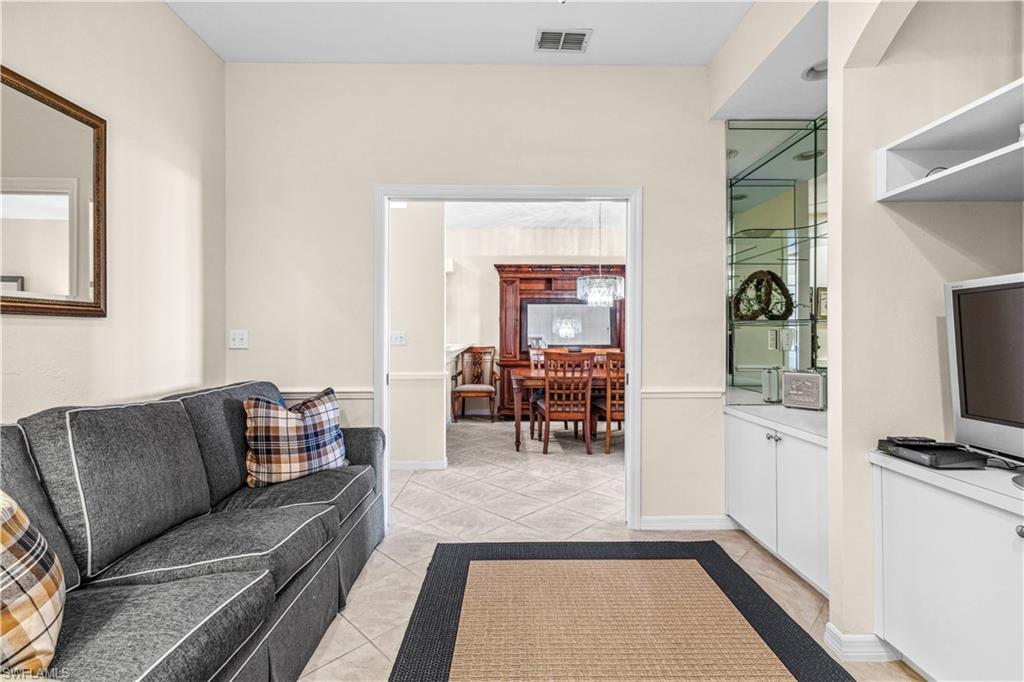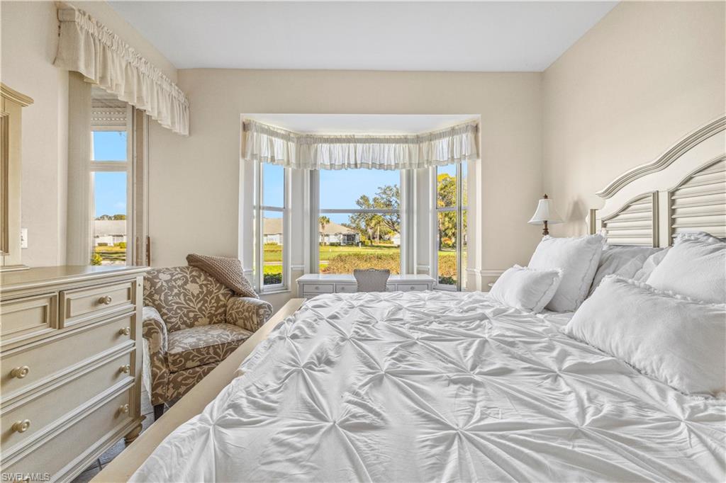 Welcome to your dream villa! This 2-bedroom + den, 2-bath attached villa offers a turnkey opportunity to move right in, as it comes fully furnished. Located in the sought-after Country Creek community, the home features a breathtaking golf course view that can be admired from the back screened-in lanai, providing the perfect space to relax. Designed with an open-concept layout, the kitchen seamlessly flows into the living area, creating a bright and inviting atmosphere ideal for both relaxation and entertaining. On the other side of the kitchen, a cozy breakfast nook overlooks a glass slider that opens onto the front lanai, offering the perfect spot to enjoy your early morning coffee. This thoughtful layout blends comfort and functionality, making it a home you'll love living in. The villa features tile flooring throughout and includes a cozy den with pocket doors, providing a flexible space that can be used as a home office or guest room with added privacy. The split-bedroom layout ensures comfort and convenience, with the guest bedroom featuring a pocket door that creates a private suite with the guest bathroom. Both bedrooms are spacious and well-appointed, offering a peaceful retreat for you and your guests. For added convenience, the home includes an attached garage and has hurricane protection with accordion shutters, ensuring peace of mind during storm season. The villa is also located close to several pools within the community, making it easy to enjoy a refreshing dip on warm days. Country Creek is a vibrant resort-style community offering a range of amenities, including a bundled golf course where residents can play for a low fee, which includes a golf cart. The on-site country club features a restaurant and bar, while additional recreational options include tennis, bocce ball and a work out facility, catering to an active lifestyle. Ideally situated, this home is minutes away from Coconut Point and Miromar Outlets, as well as a library, Florida Gulf Coast University, a community park, and countless dining options. Southwest Florida International Airport is conveniently close, along with other local attractions. This villa offers the perfect combination of comfort, style, and community living. Schedule your private showing today and start enjoying everything Country Creek has to offer!