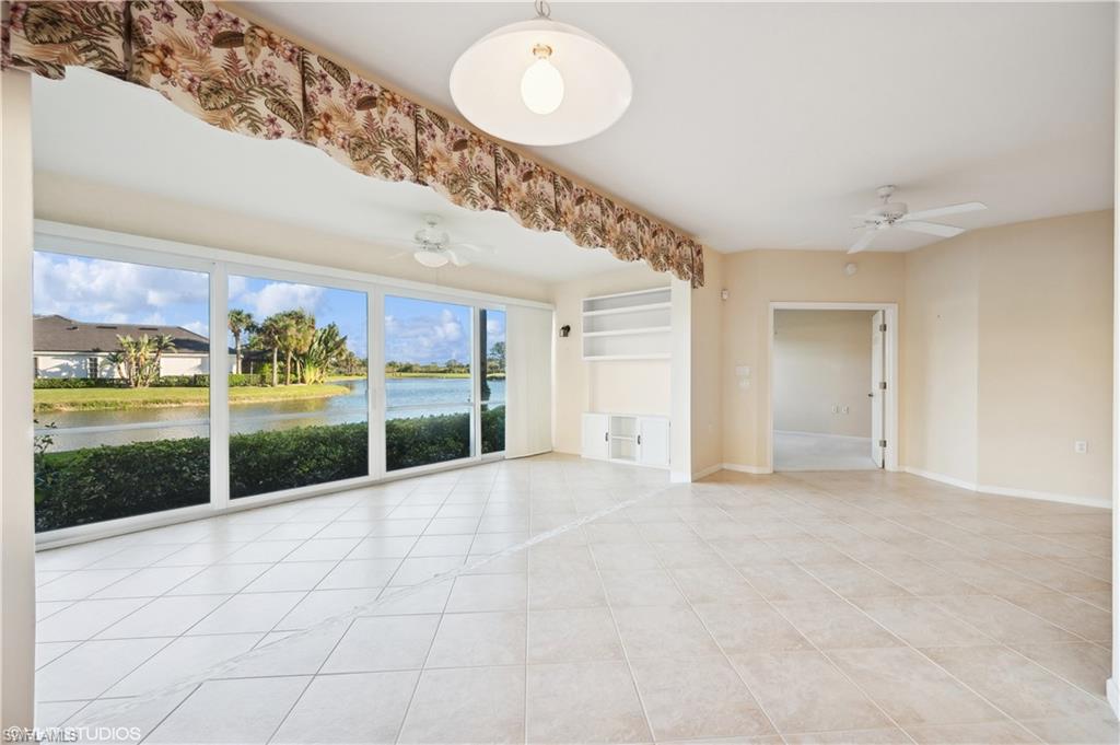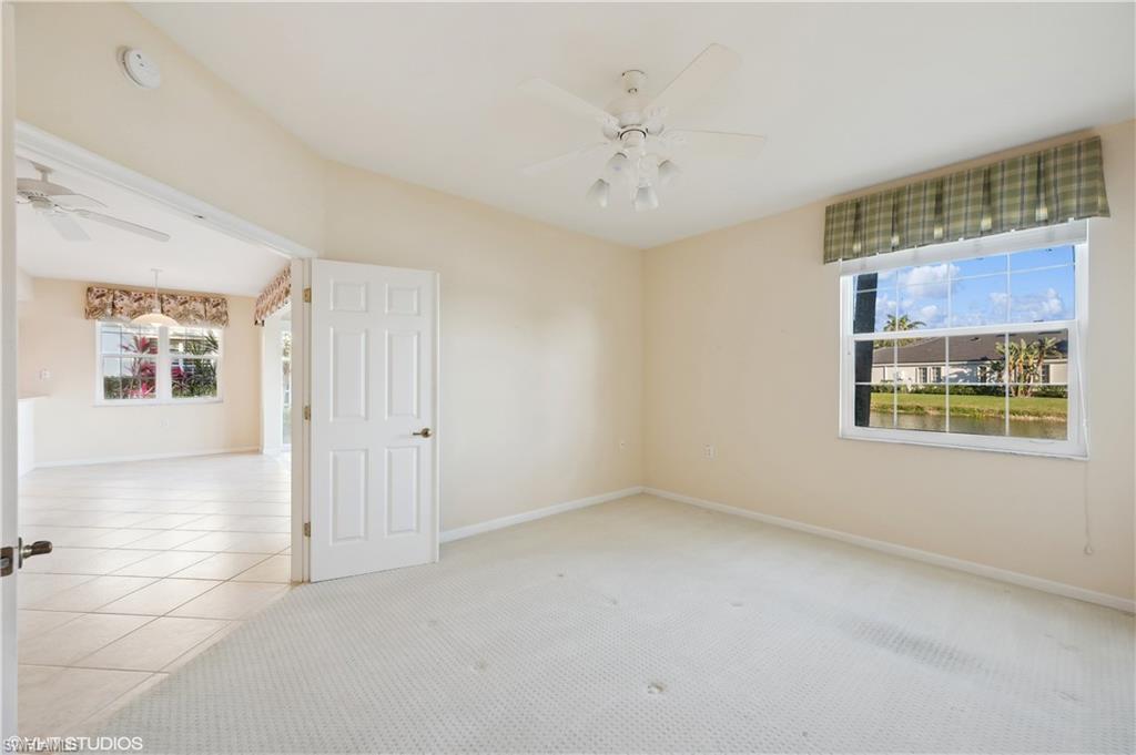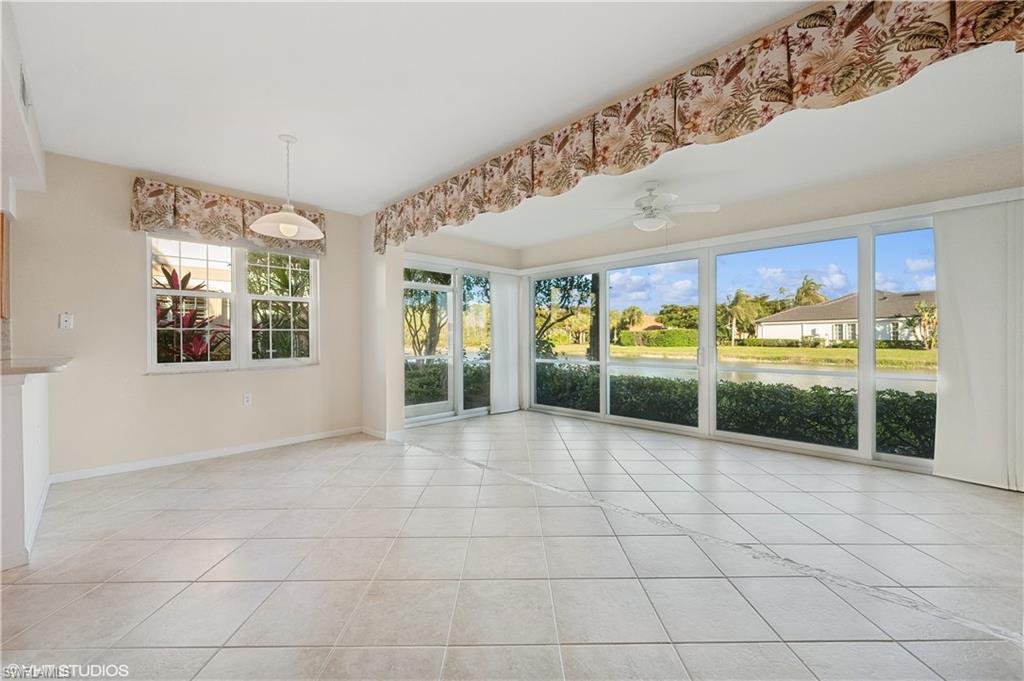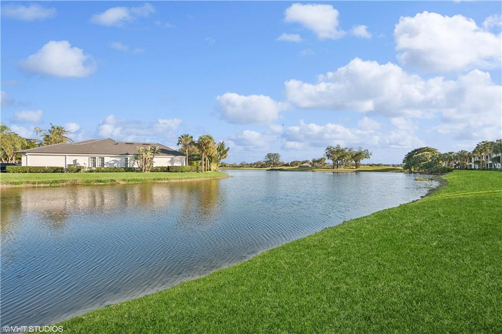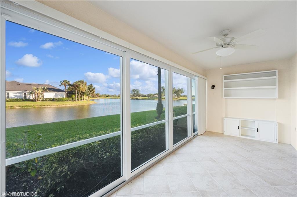 This well appointed first floor condo offers two bedrooms, two baths and a versatile den, providing the perfect space for office, library, or guest room. The lanai has been incorporated into the living area and extends the living area by 180 sq, ft. Total 1712 sq.ft. Living area has been enclosed with impact glass doors creating a seamless and spacious layout where a breathtaking view of lake and golf course can be enjoyed. Appliances, water heater and A/C were replaced in 2021. New roof, 2022 and building is scheduled for repainting in 2025. Attached 2 car garage and impact windows throughout complete the condo enhancements. The Morningside residents have access to a serene pool and spa, plus a well-equipped fitness facility. The Shadow Wood CC is an Award-Winning community for 2024. Membership offers a 54 hole golf course, 9 tennis courts, 2 bocce courts, plus amazing facilities and dining. Also approved to be completed as a club expansion are additional tennis courts, indoor pickleball, resort style pool and bistro. In addition, the Commons Club Gold membership includes a private beach, dining and fitness. Entire community is located within 1 mile of great shopping at Coconut Point. This is an opportunity here to enjoy either a very active or serene lifestyle.