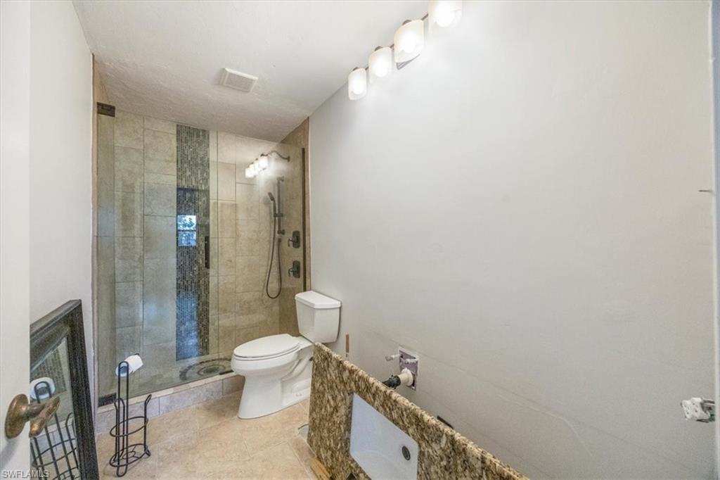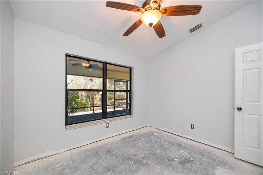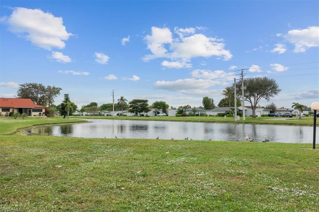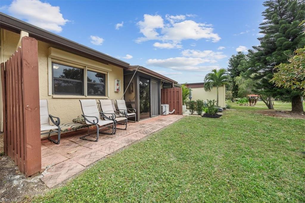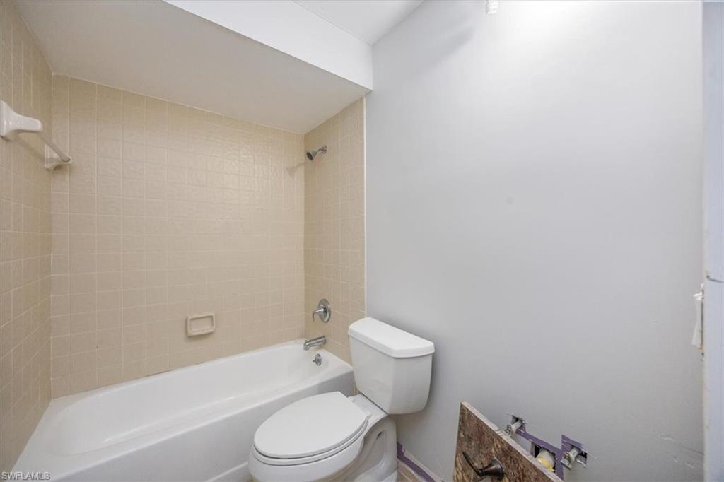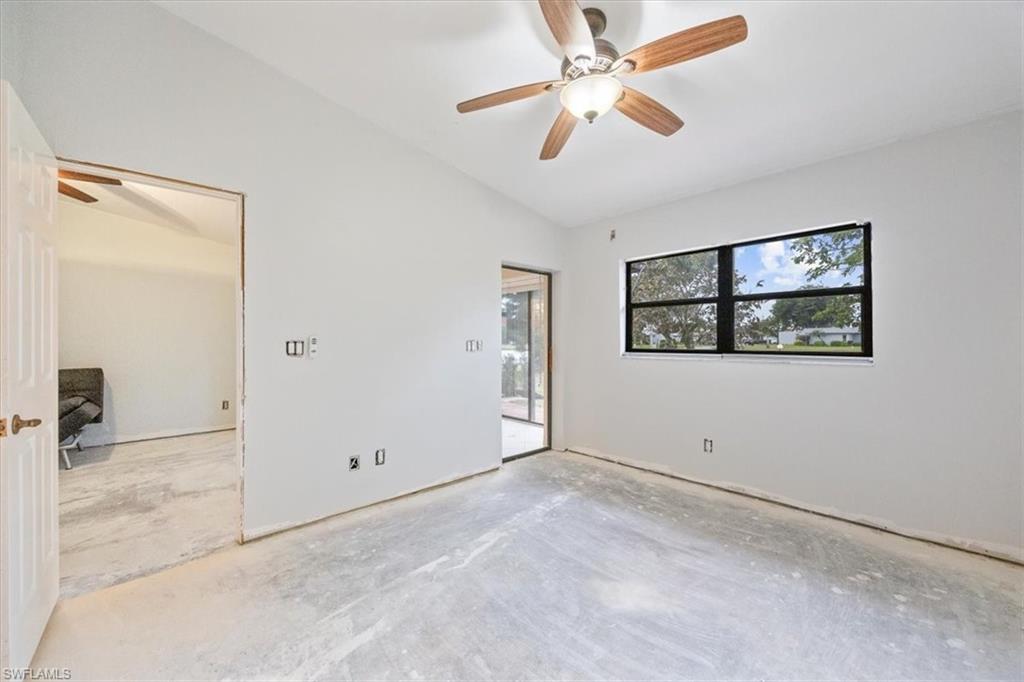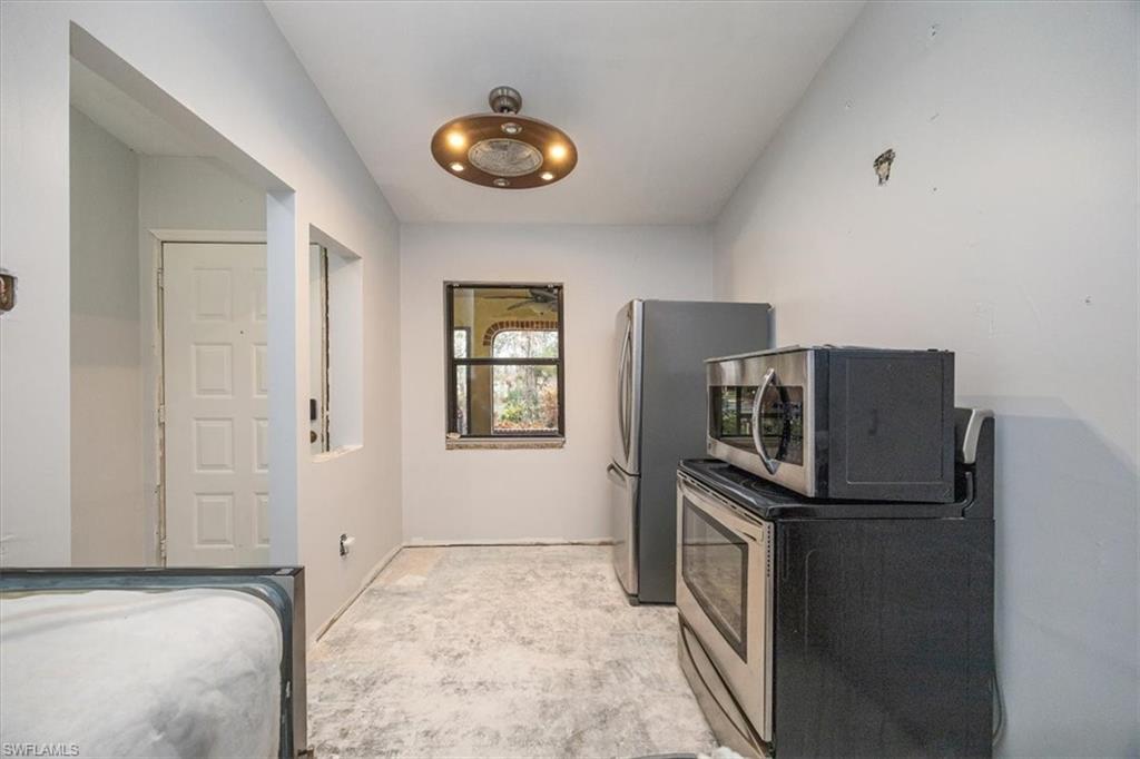 DESIGN YOUR DREAM HOME! This charming 2-bedroom, 2-bath, ground-floor condo presents a unique opportunity to create your ideal living space. Sold in decorator-ready condition, it’s a blank slate waiting for your personal vision! The unit comes with kitchen appliances and a washer and dryer for added convenience. This is an AS-IS sale - needs flooring, cabinetry, door casements, etc. Recent upgrades include new roofs installed in 2022, along with impact windows and roll-down shutters on the lanai for extra peace of mind. Relax on the screened front lanai or unwind on the back patio, which overlooks a serene lake and beautifully maintained grounds. Nestled in the peaceful Boca Ciega Manor community, this low-density neighborhood features tranquil lakes, lush tropical landscaping, and amenities like a community pool and spa. Seize this rare opportunity to customize your home in one of Naples’ most desirable locations!