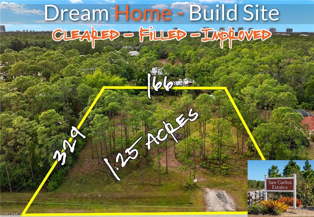 DREAM LOT DEAL!! GREAT LOT ON ONE OF THE BEST STREETS IN SCE!! RARE 1.25 ACRE "ALL UPLAND" GEM IN BONITA SPRINGS READY FOR YOUR DREAM HOME!! IMPROVEMENTS TO THIS PROPERTY INCLUDE.....clearing, fill, city water connection with meter installed, electrical service connection on property, irrigation line on property, 30 types of fruit trees, fencing on rear & sides, DRIVEWAY AND CULVERT already in place, "LEGIT" CHICKEN COOP and Clusia privacy hedge!! This lot is perfectly located on a beautiful street surrounded by HIGH END CUSTOM NEW HOMES!! Opportunity to buy land for your dream build in one of the most desirable neighborhoods in SW Florida!! Acre + properties, Privacy, No HOA, Outbuildings Allowed, Sports Courts Allowed, Playfields, Personal Parks, Outdoor Gyms, Space for your toys, the options here are limitless and NO BOARD OR FUN POLICE TO TELL YOU WHAT TO DO!! Homes in the Caliber of 2-4 MILLION are being built throughout the neighborhood!! Centrally located close to 41; the beaches, shopping, dining, Coconut Point, Downtown Bonita and more!! Privately owned streets and gated on one end of the community to prevent through traffic keeps this "one of a kind" neighborhood quiet, safe and peaceful for wooded bike rides, golf cart rides, jogging, long walks and more! Call today!!